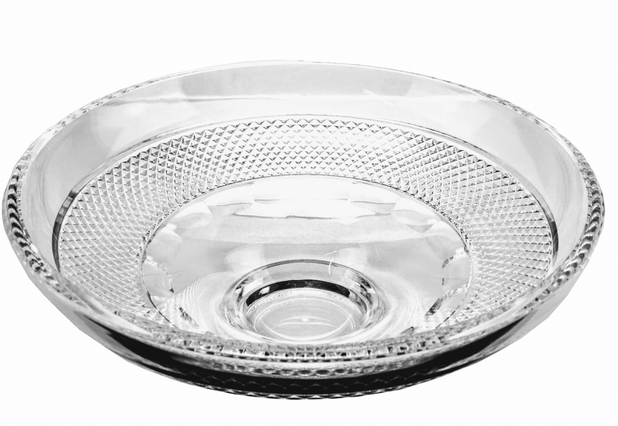 Kryształowa misa z nowoczesnym wzorem. Produkt wykonany jest od początku ręcznie z najwyższej jakości szkła kryształowego, zawierającego 24% tlenek ołowiu, który jest całkowicie bezpieczny dla Państwa zdrowia.