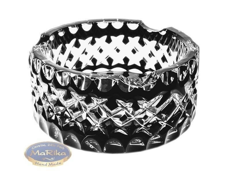 Kryształowa bogato zdobiona popielnica. Idealna na prezent dla mężczyzny. Wspaniale sprawdzi się jako element ozdobny do biura i gabinetu. Już sam kształt popielnicy wydmuchiwany jest przez hutnika, następnie każdy element poddawany jest ręcznej obróbce przez naszych Mistrzów Zdobienia. Popielnica wykonana jest z dwuwarstwowego kryształu. Szkło powlekane daje Państwu dożywotnią gwarancję koloru. Pomiędzy dwie warstwy białego szkła wprowadzono warstwę czarnego koloru. Następnie produkt ten, jest głęboko szlifowany, aby uzyskać białe sznyty dające blask. Biorąc pod uwagę sposób wykonania tej popielnicy, mają Państwo pewność, że jest odporna na zarysowanie koloru i jego trwałość.