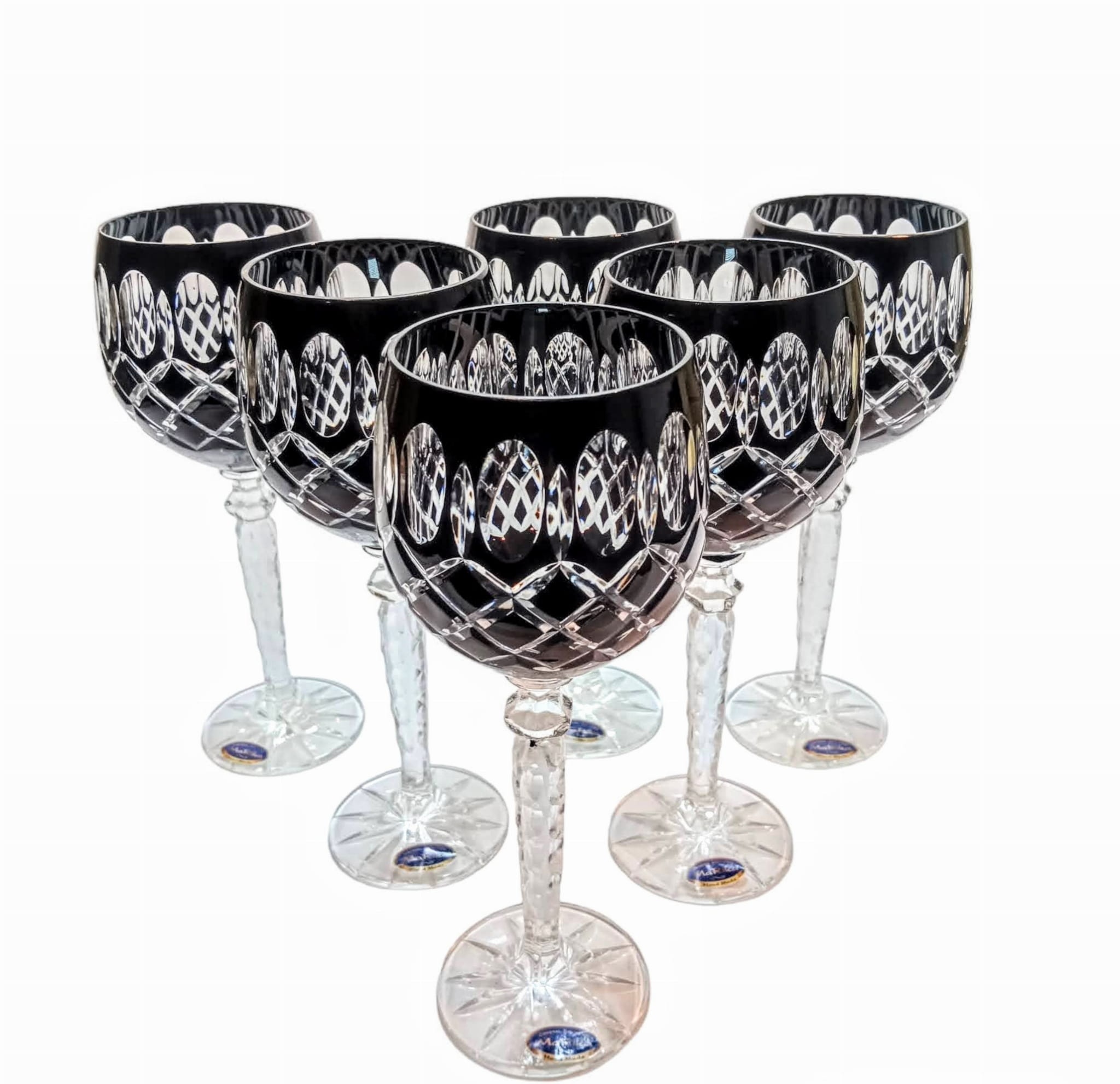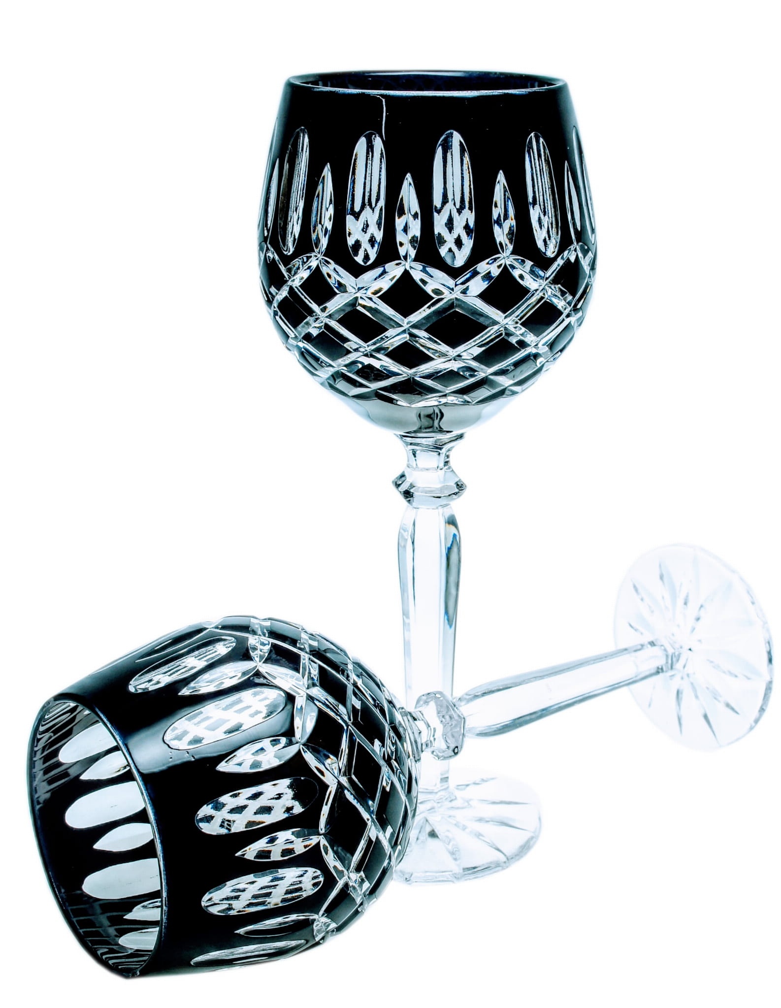 Ekskluzywne ręcznie malowane i zdobione kryształowe Rymery, które idealnie nadadzą się do wina czerwonego oraz wody.