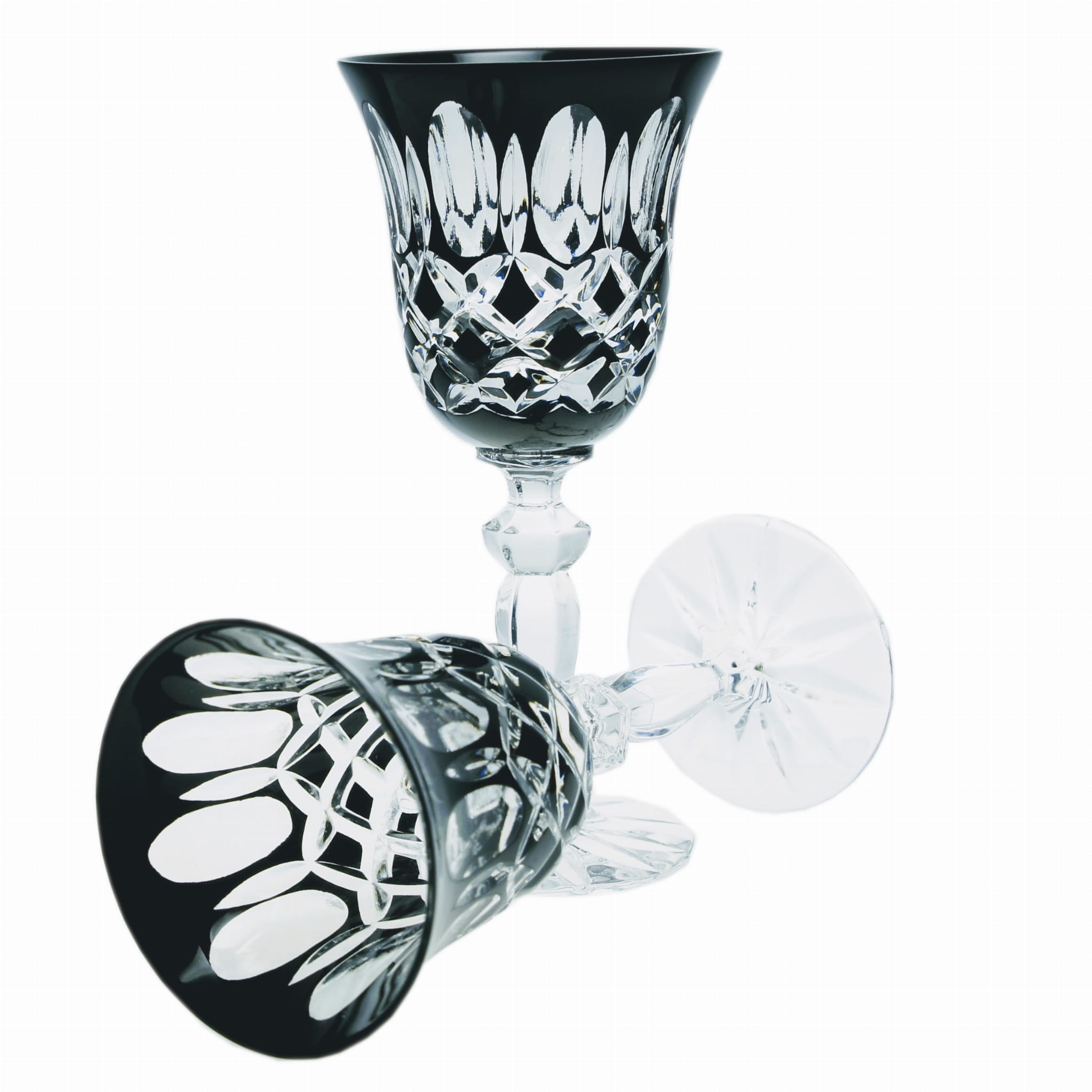 Eleganckie ręcznie malowane i zdobione kryształowe kieliszki, które idealnie nadają się do wina czerwonego i białego.