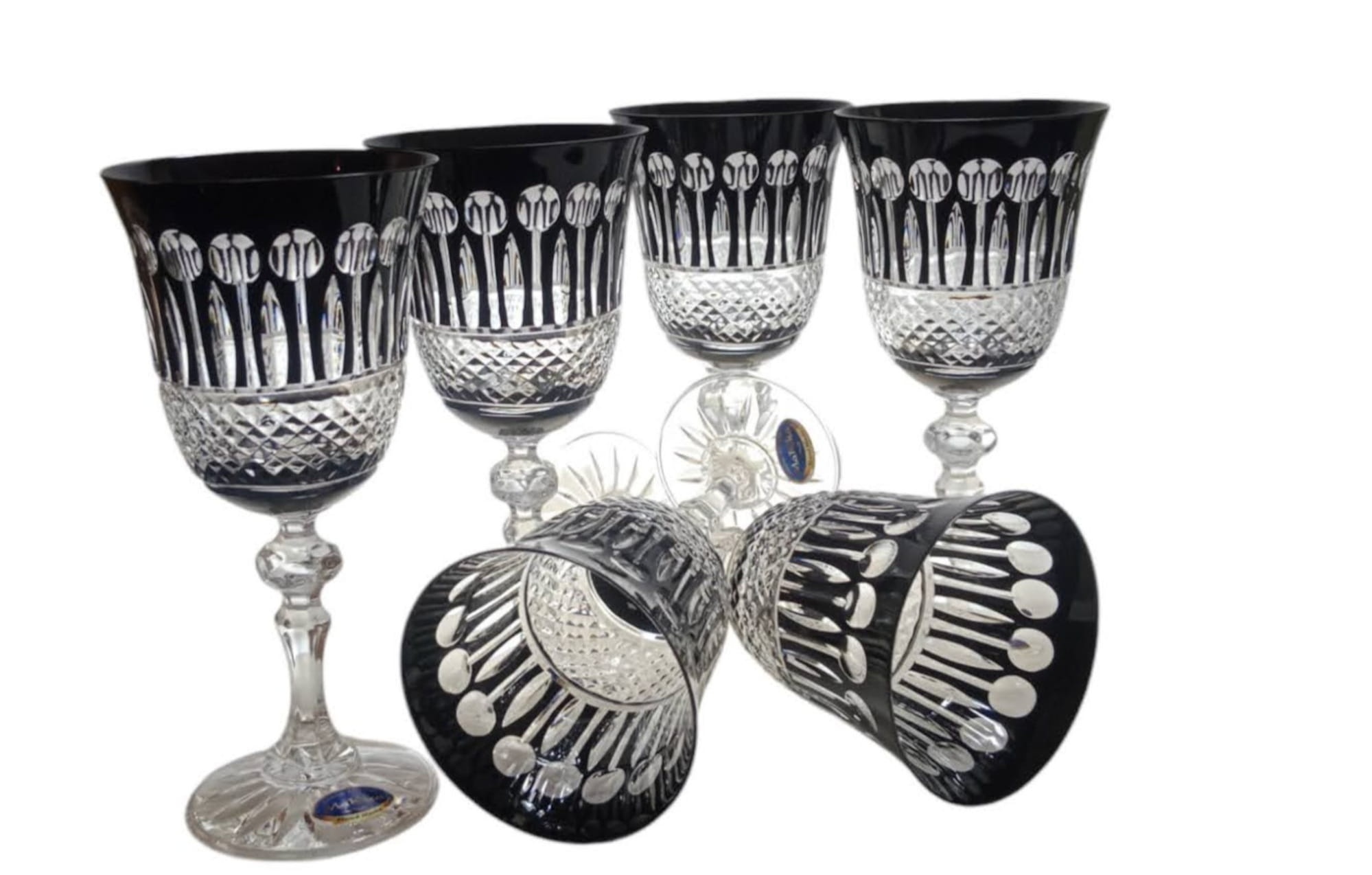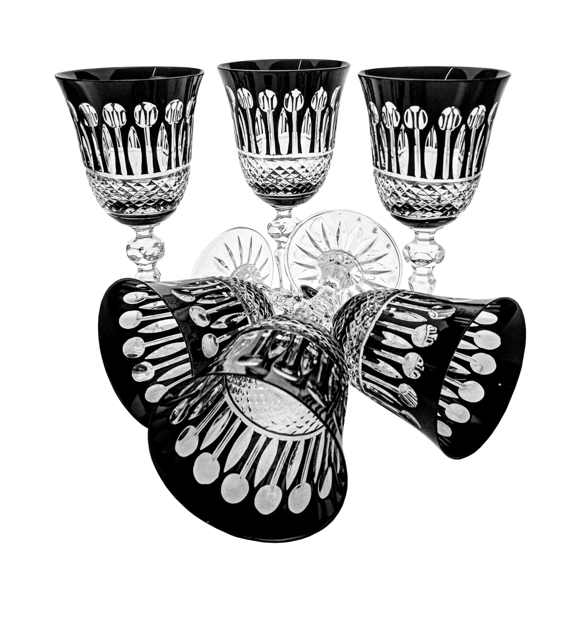 Czarne kryształowe kieliszki do wina 220ml Paris 6 sztuk