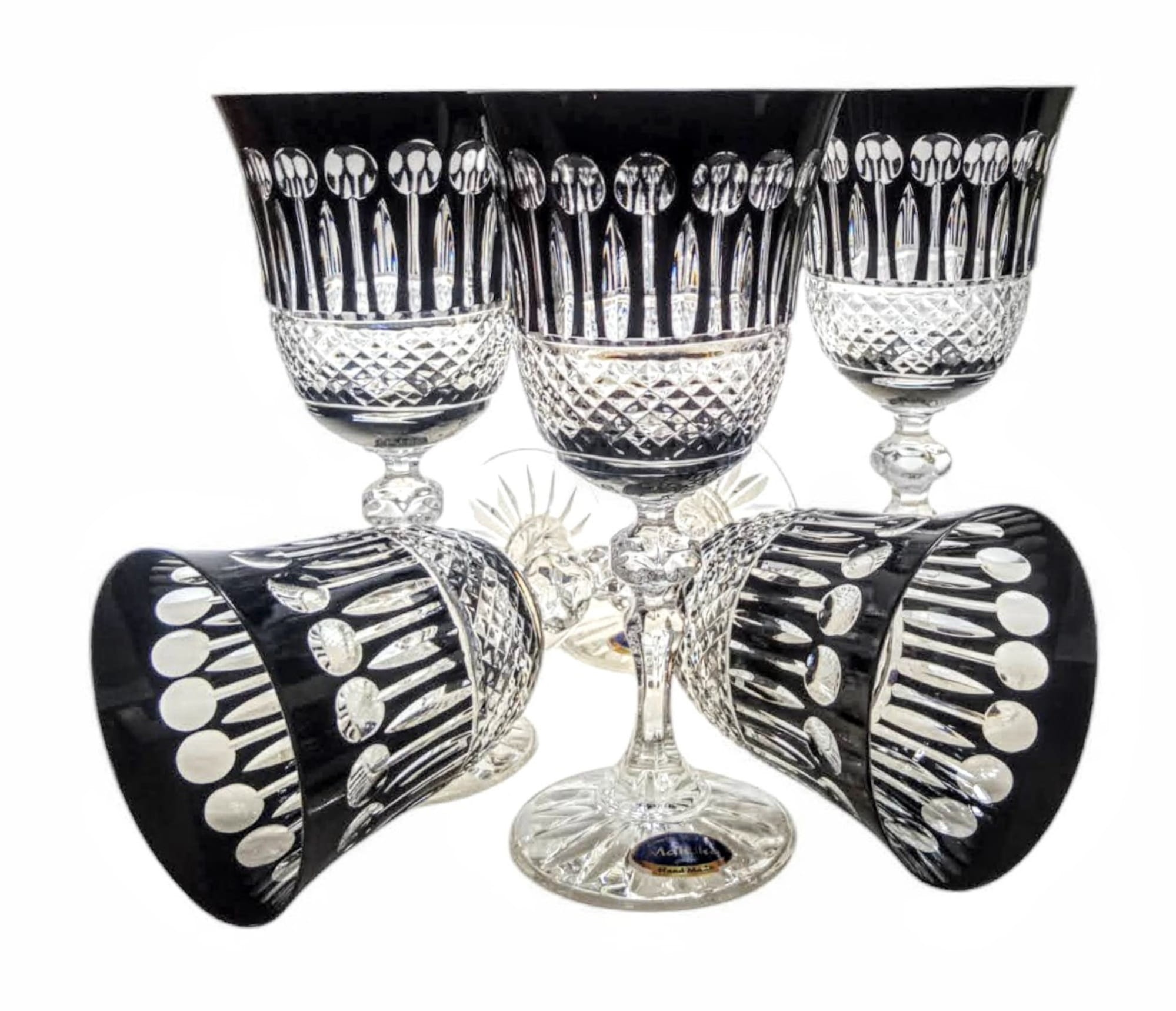 Eleganckie ręcznie malowane i zdobione kryształowe kieliszki, które idealnie nadają się do wina czerwonego i białego.