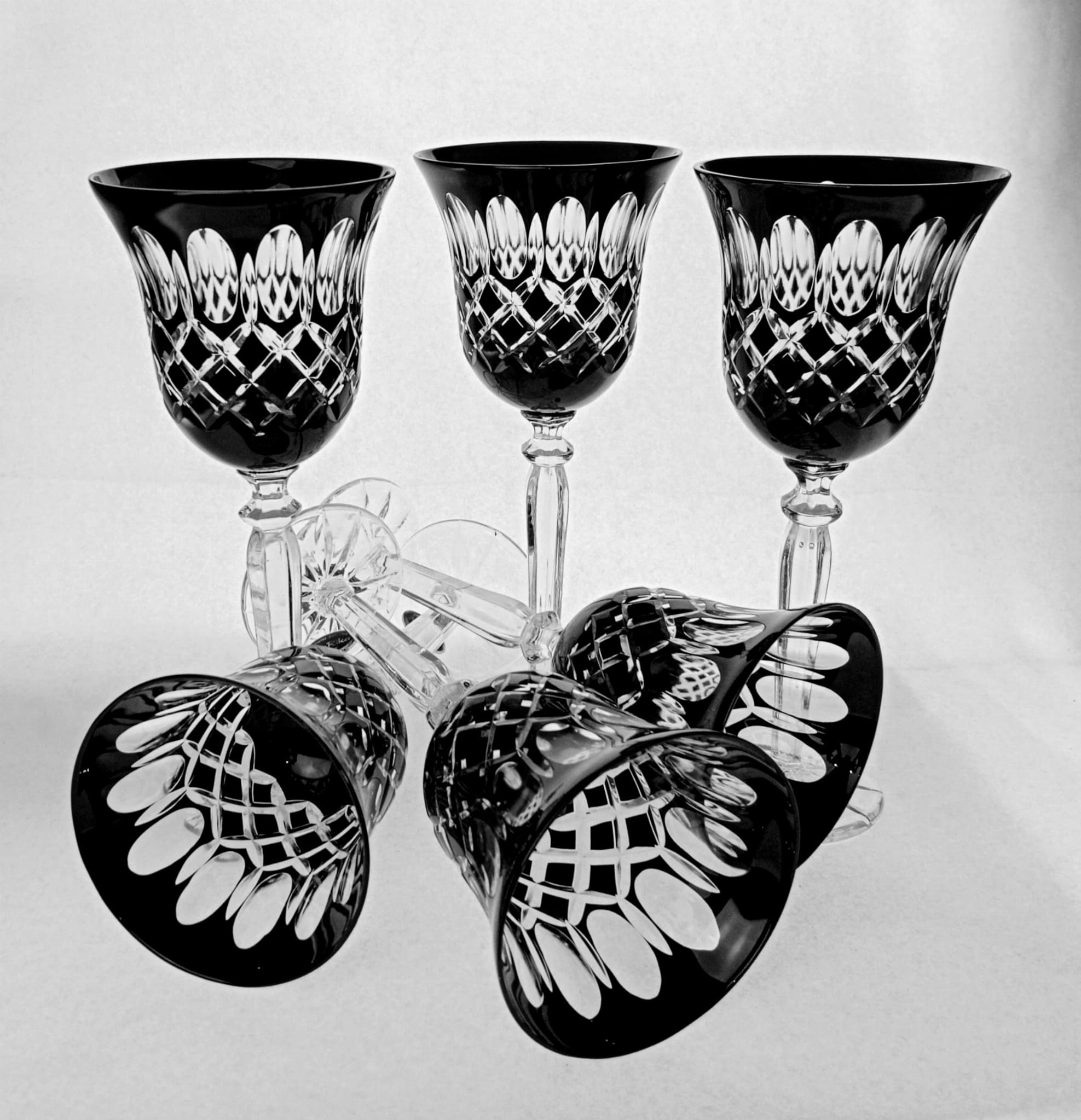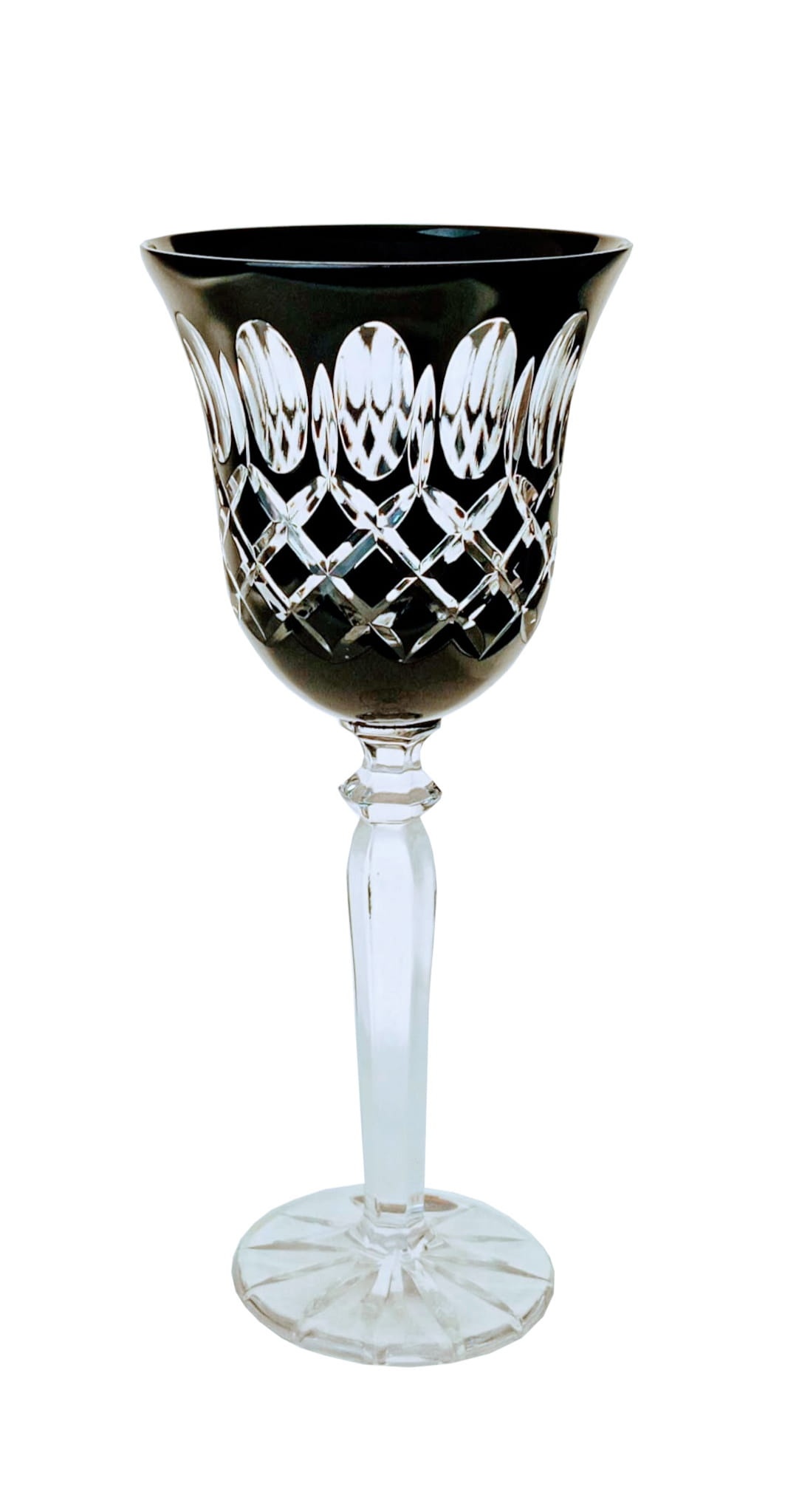 Czarne kryształowe kieliszki do wina i wody 280ml Krata Oliwka 6 sztuk