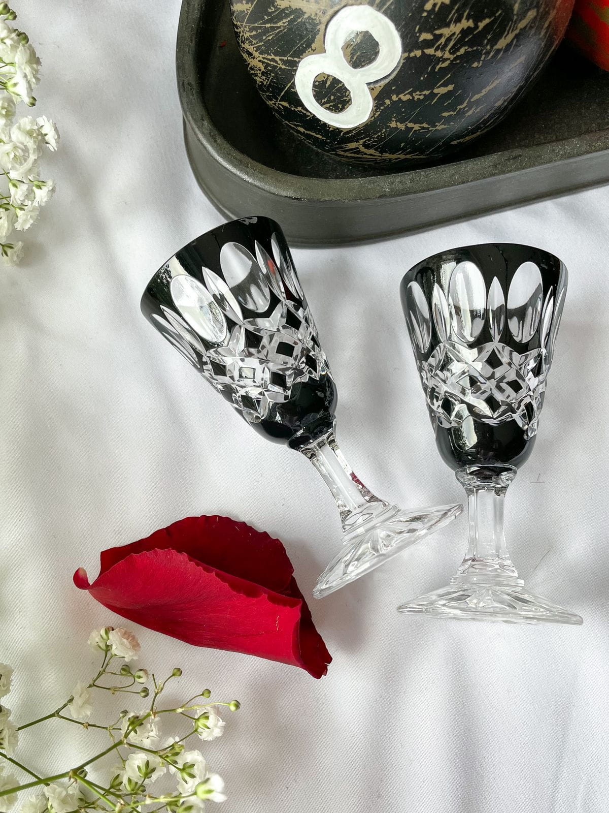 Czarne kryształowe kieliszki do wódki 30 ml Krata Oliwka 6 sztuk