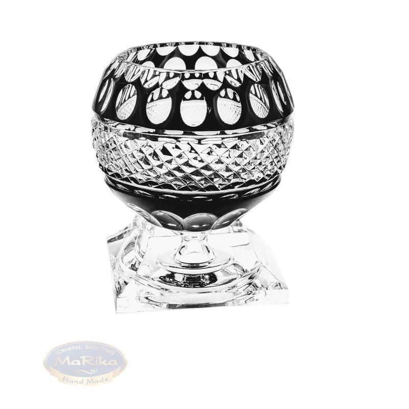 Czarny kryształowy świecznik 15 cm Krata Oliwka