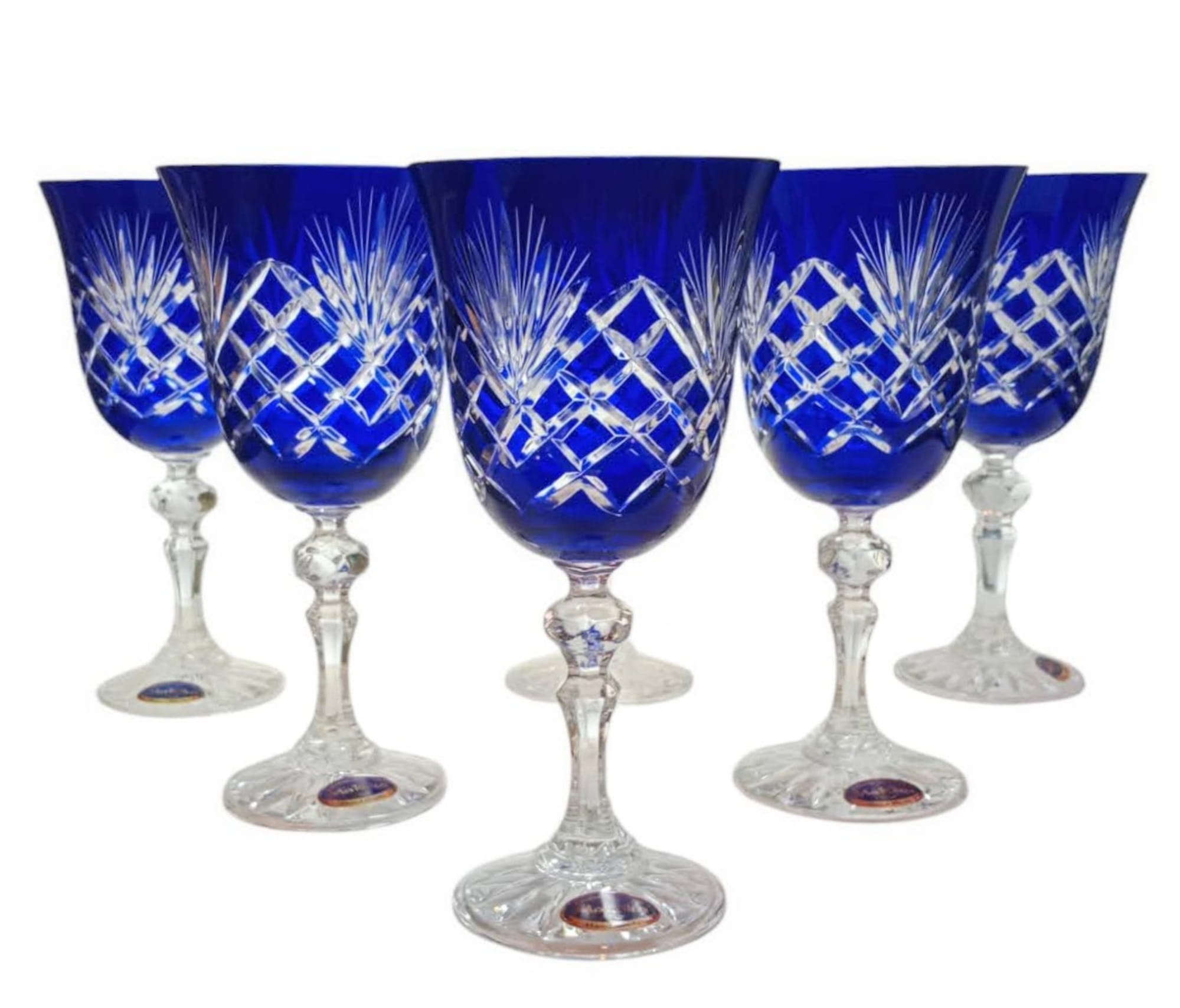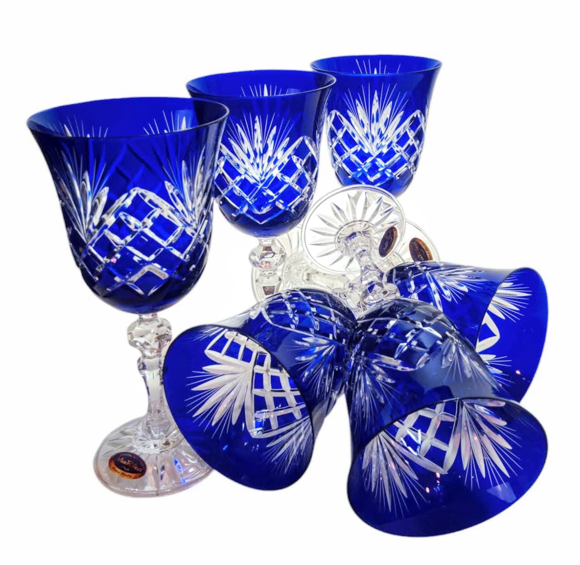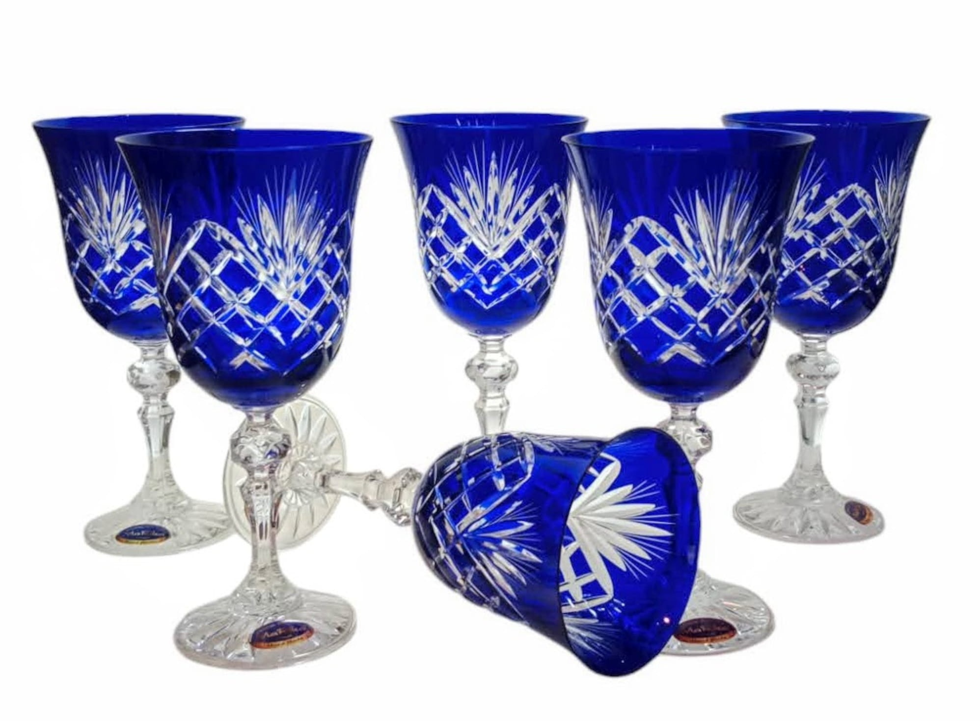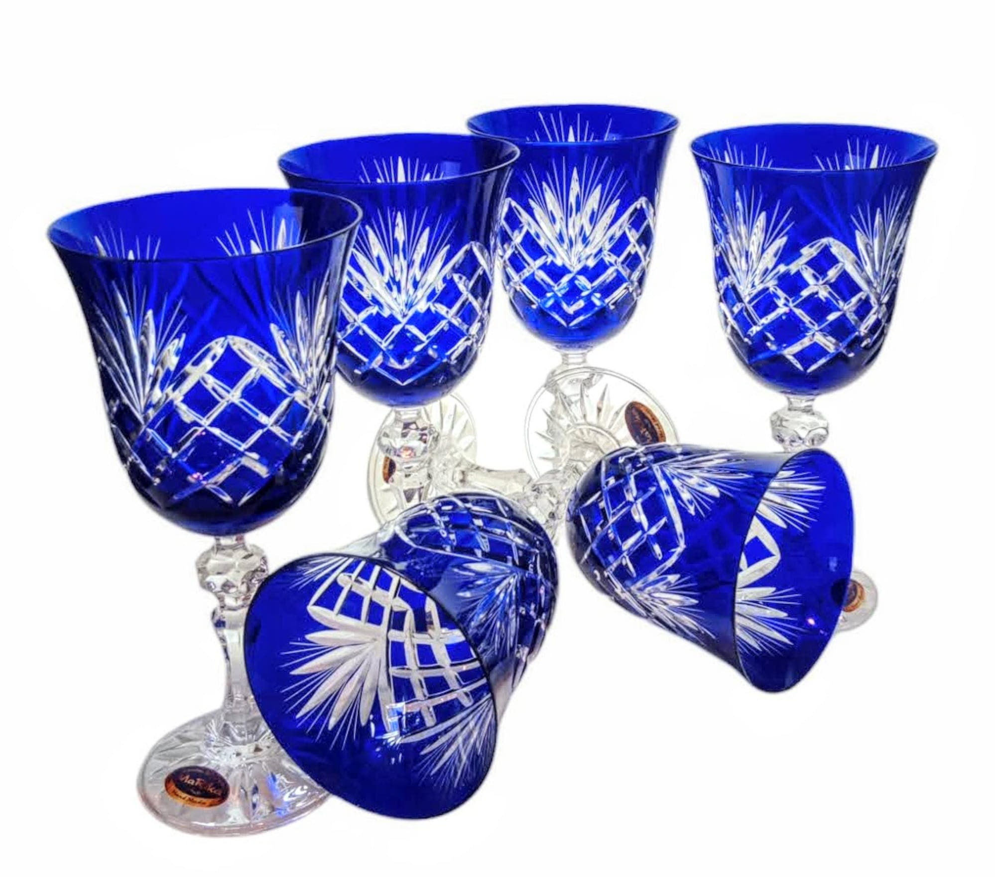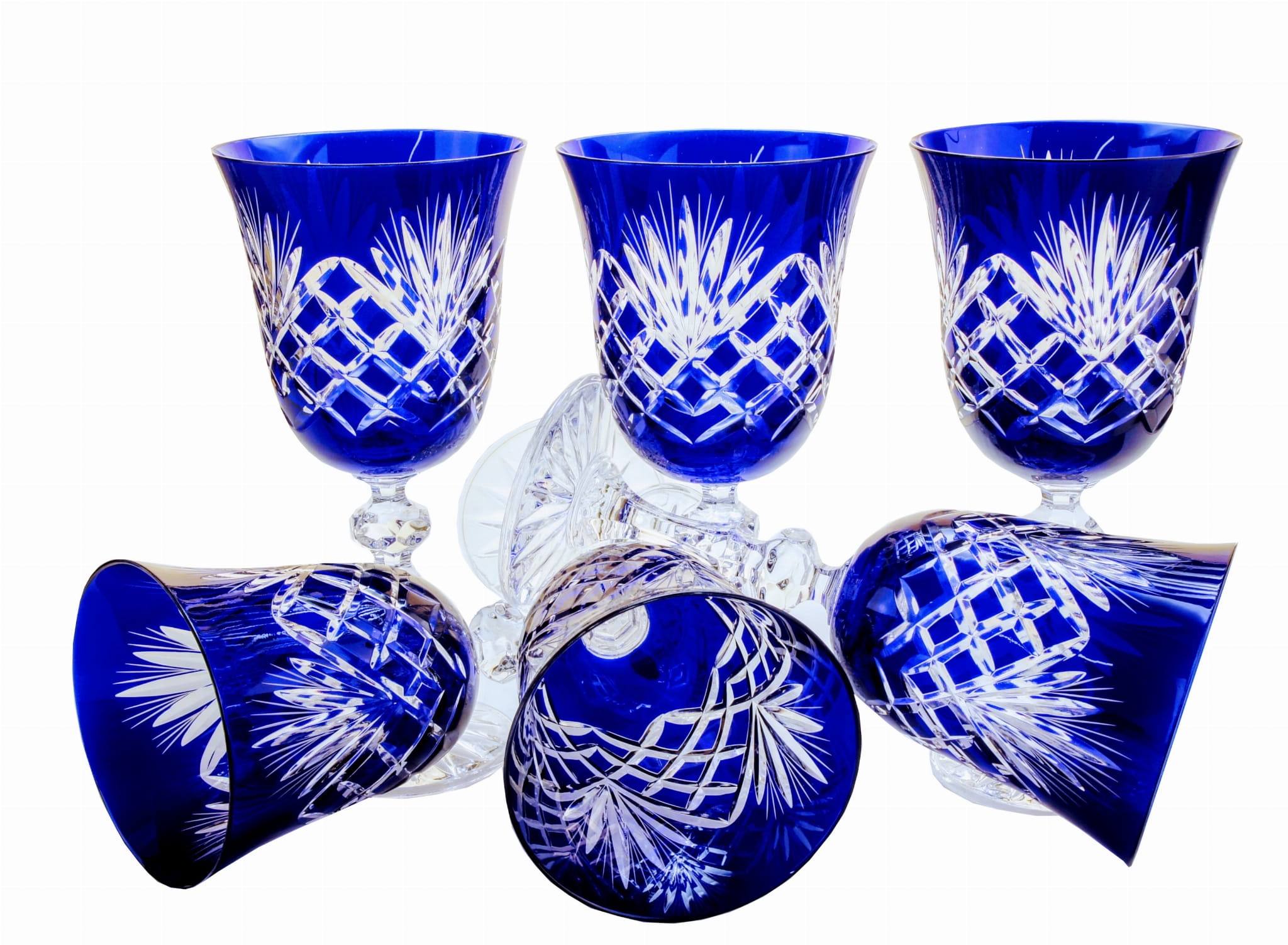 Kobaltowe Kryształowe kieliszki do wina Ananas 6 sztuk