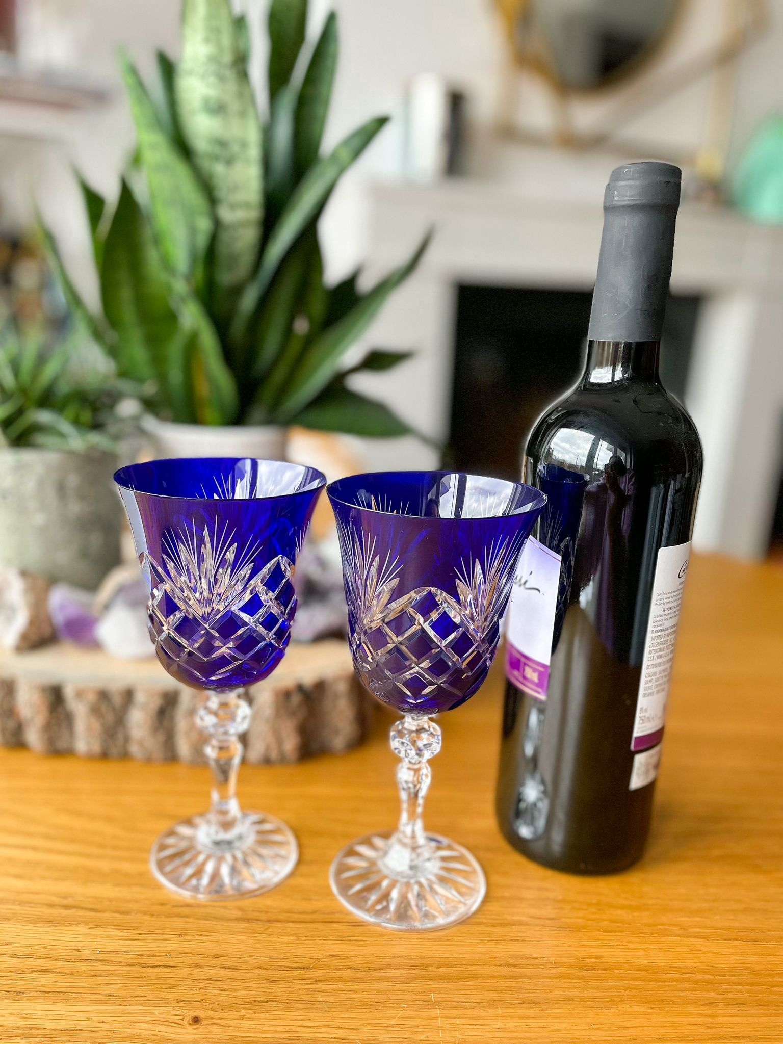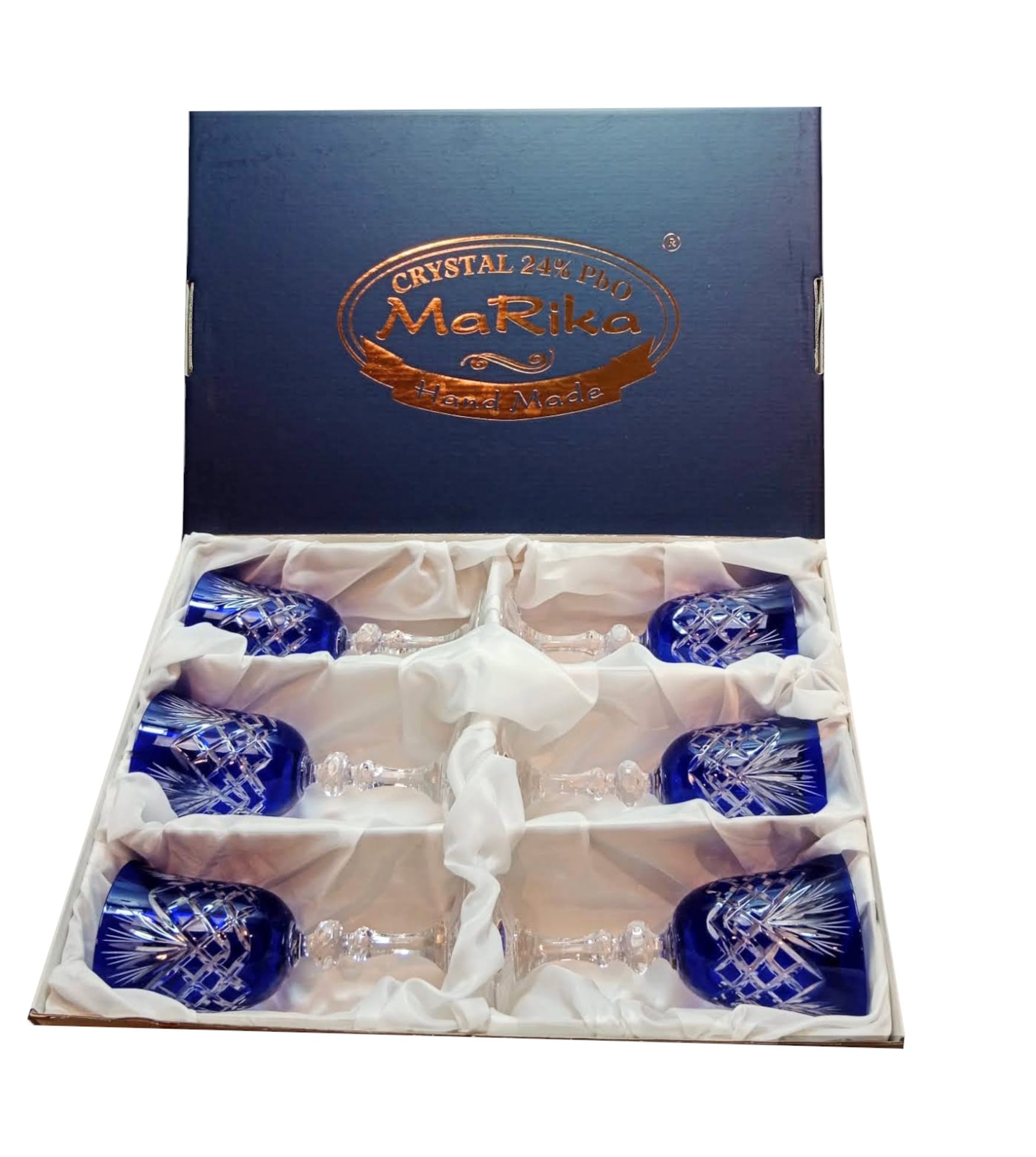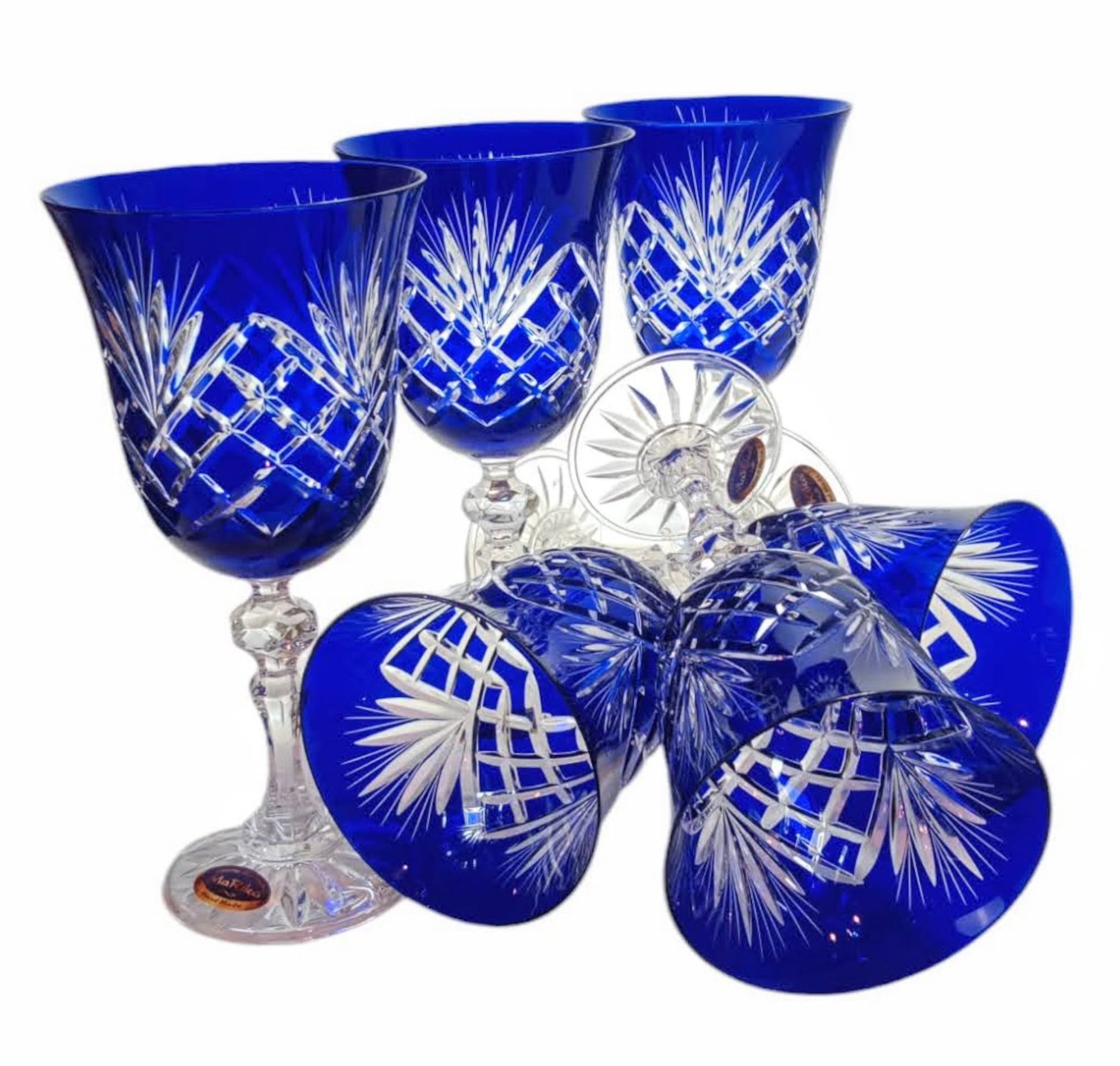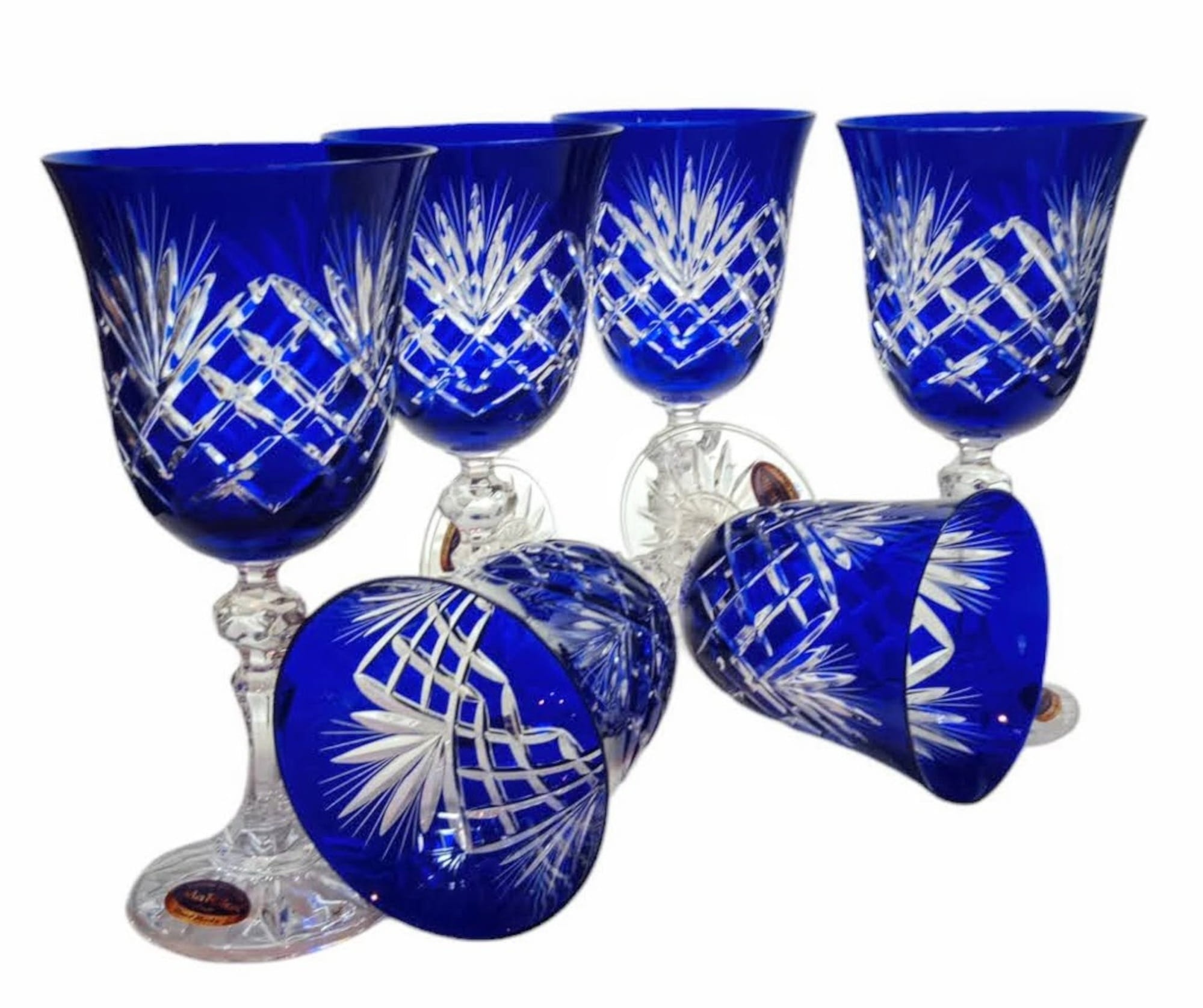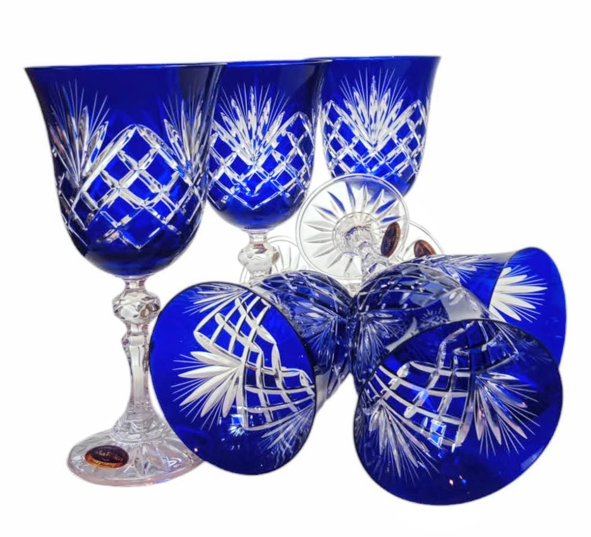 Kobaltowe Kryształowe kieliszki do wina Ananas 6 sztuk