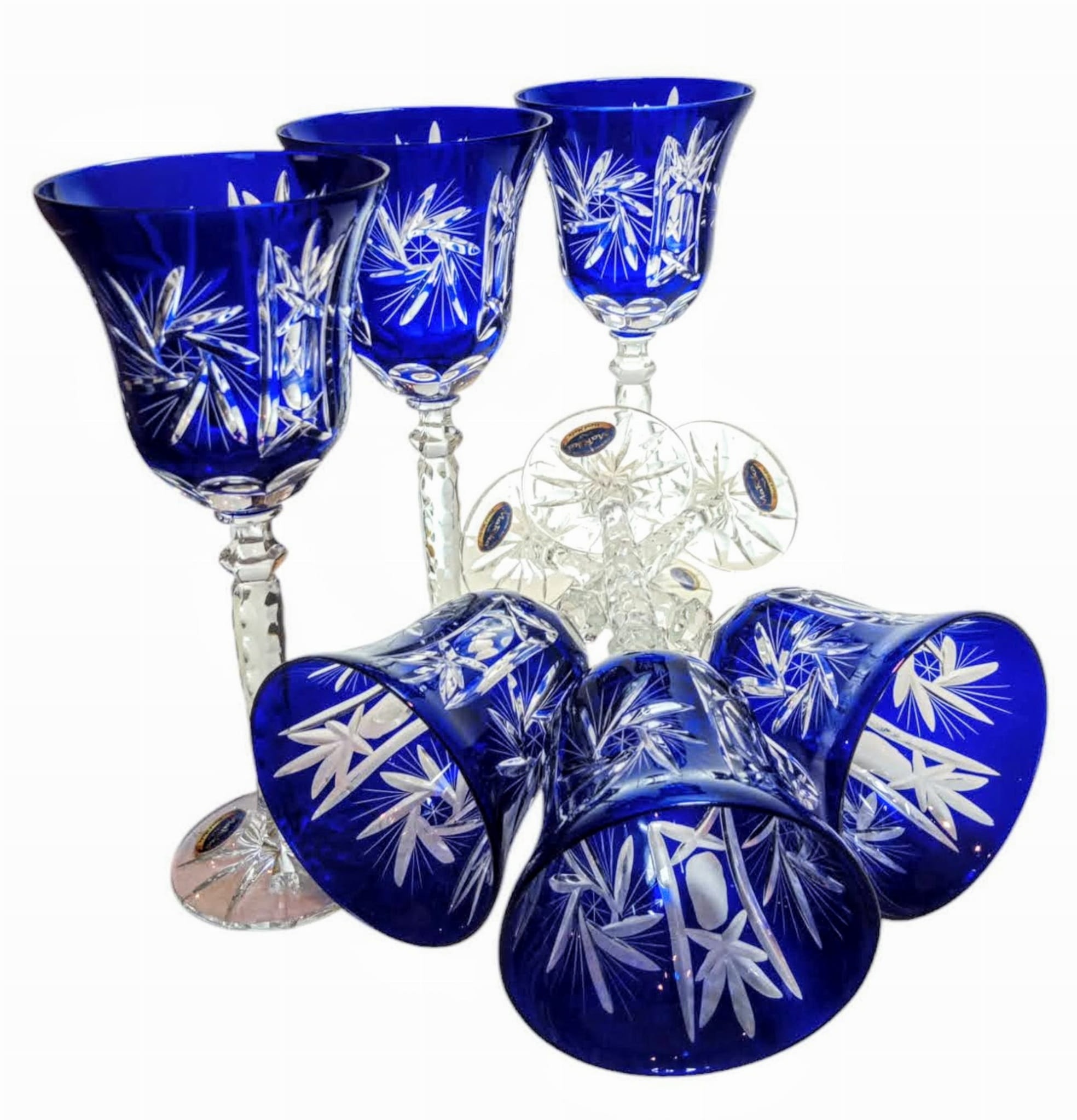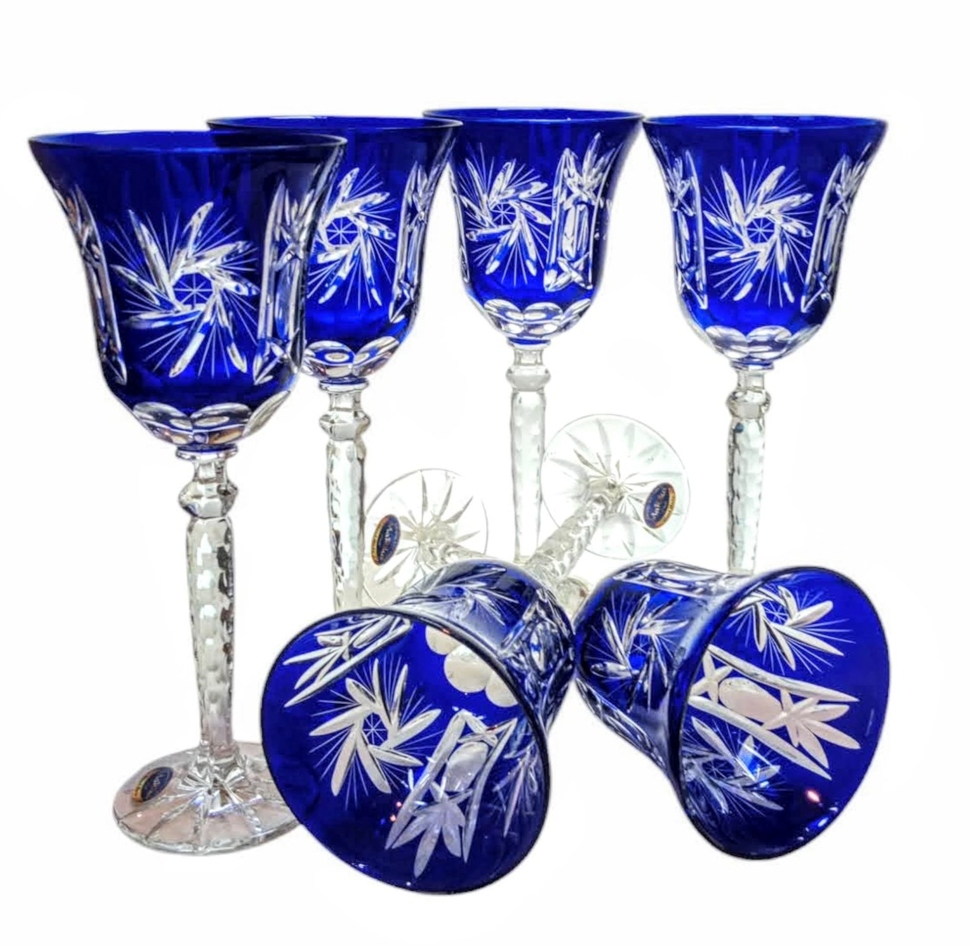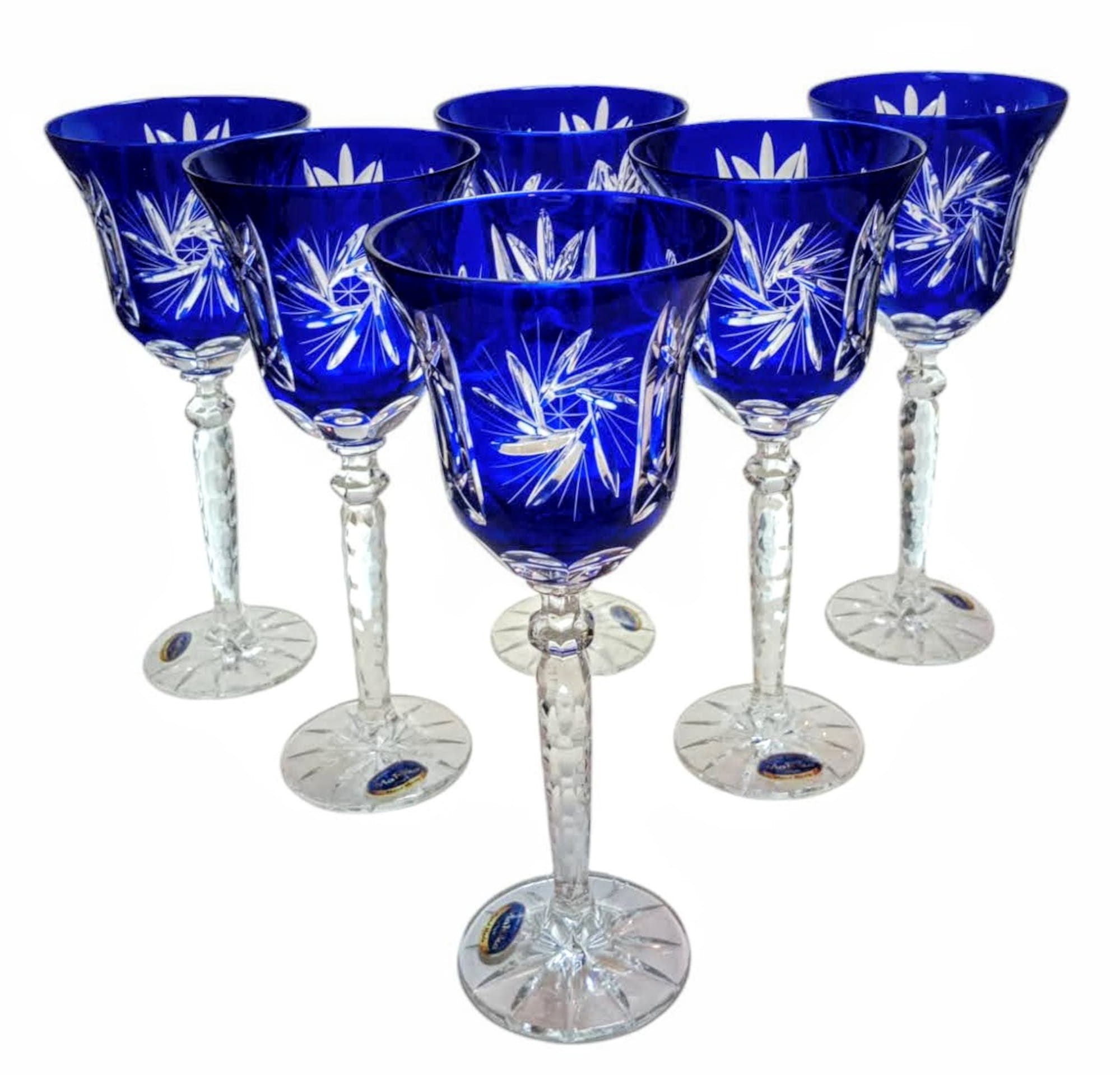 Kobaltowe kryształowe Rymery 280ml Młynek Oliwka 6 szt