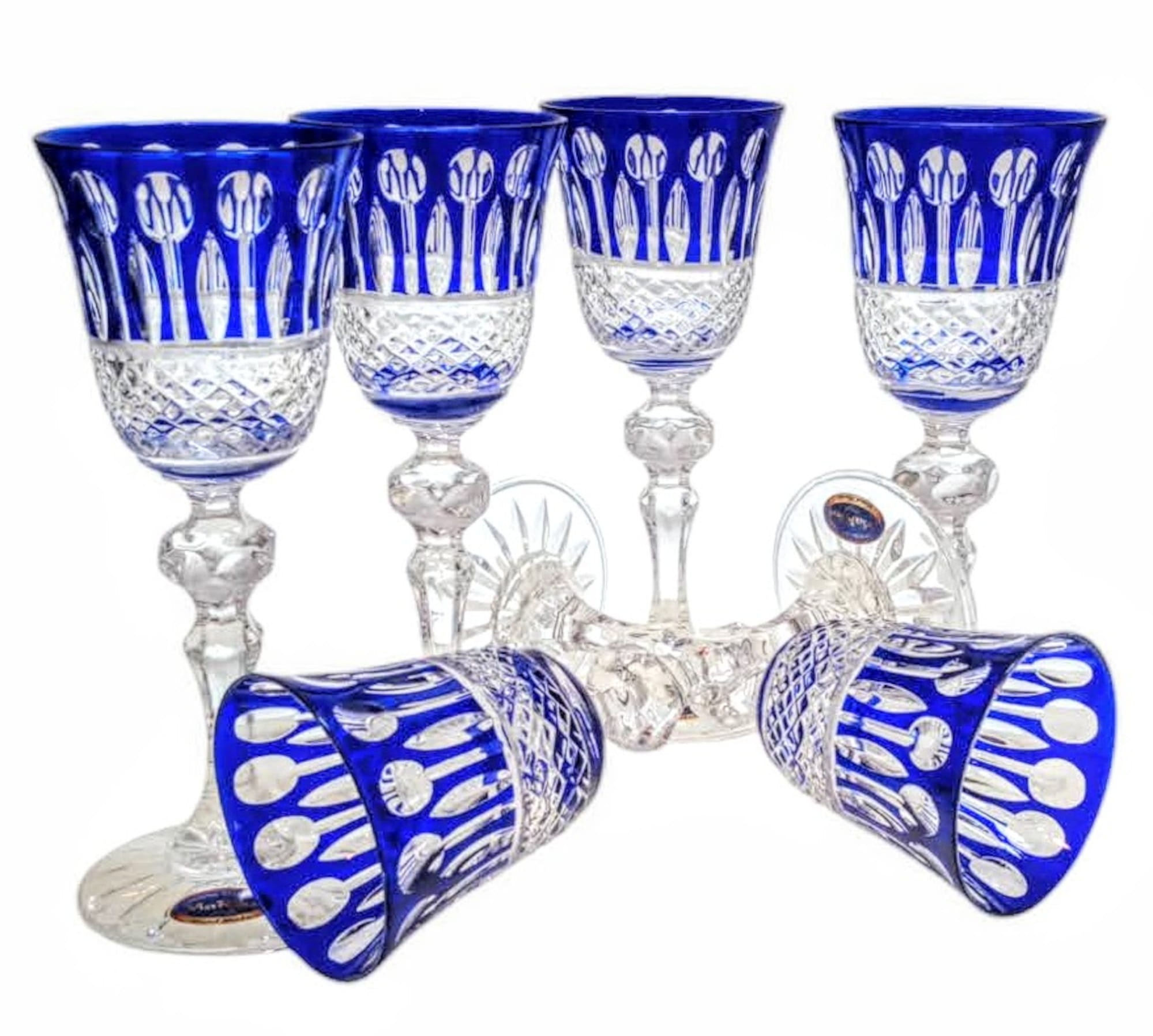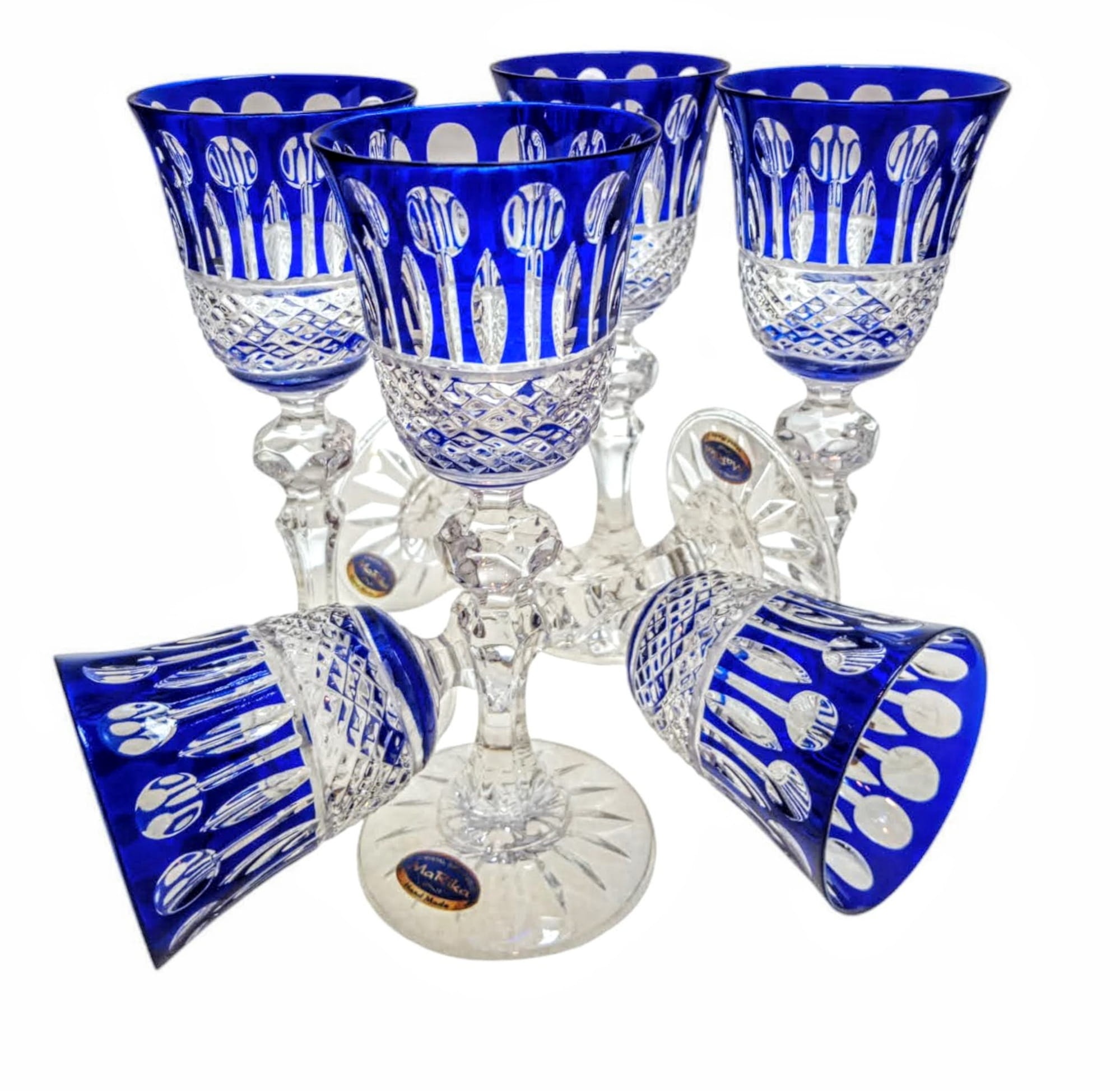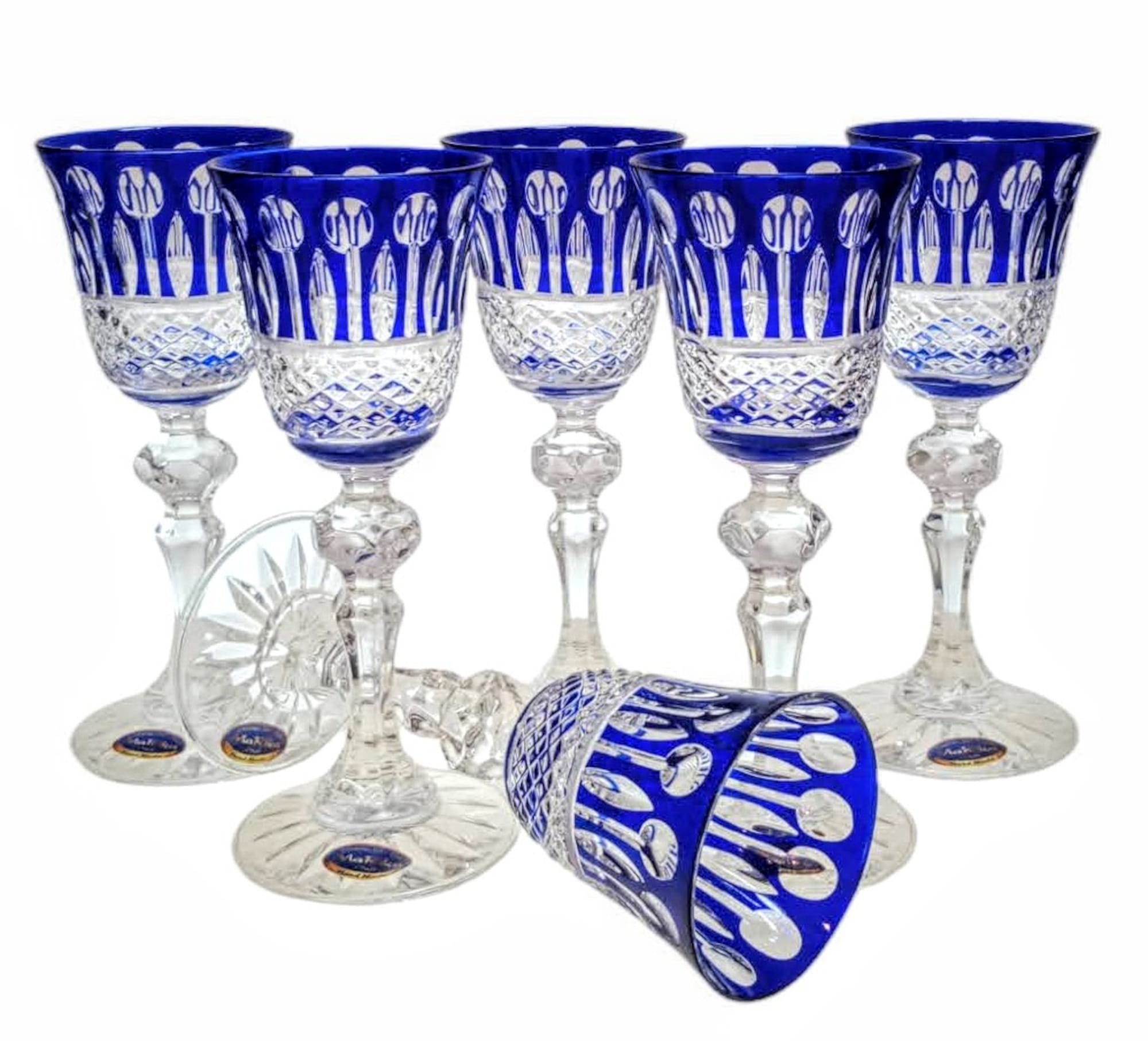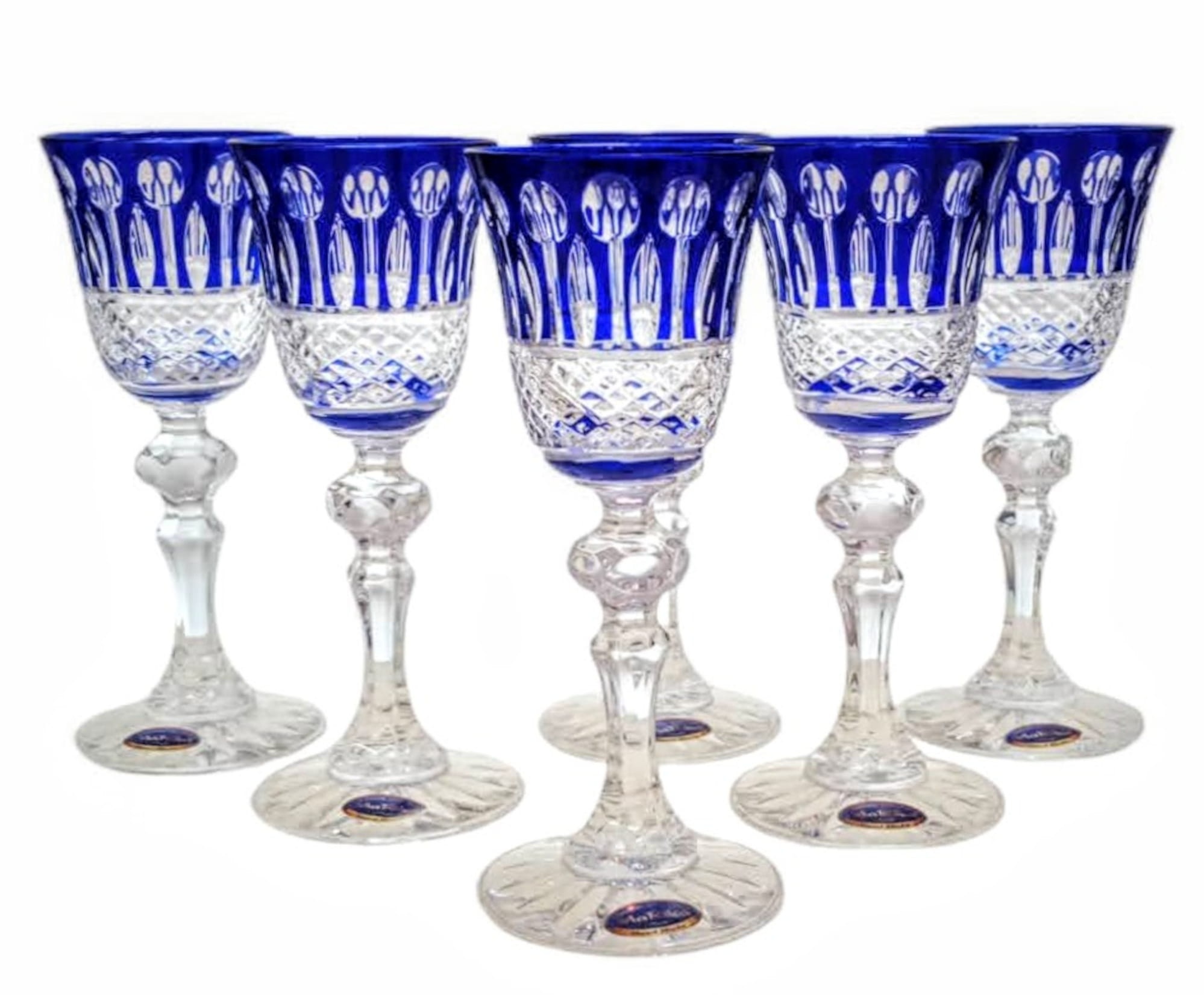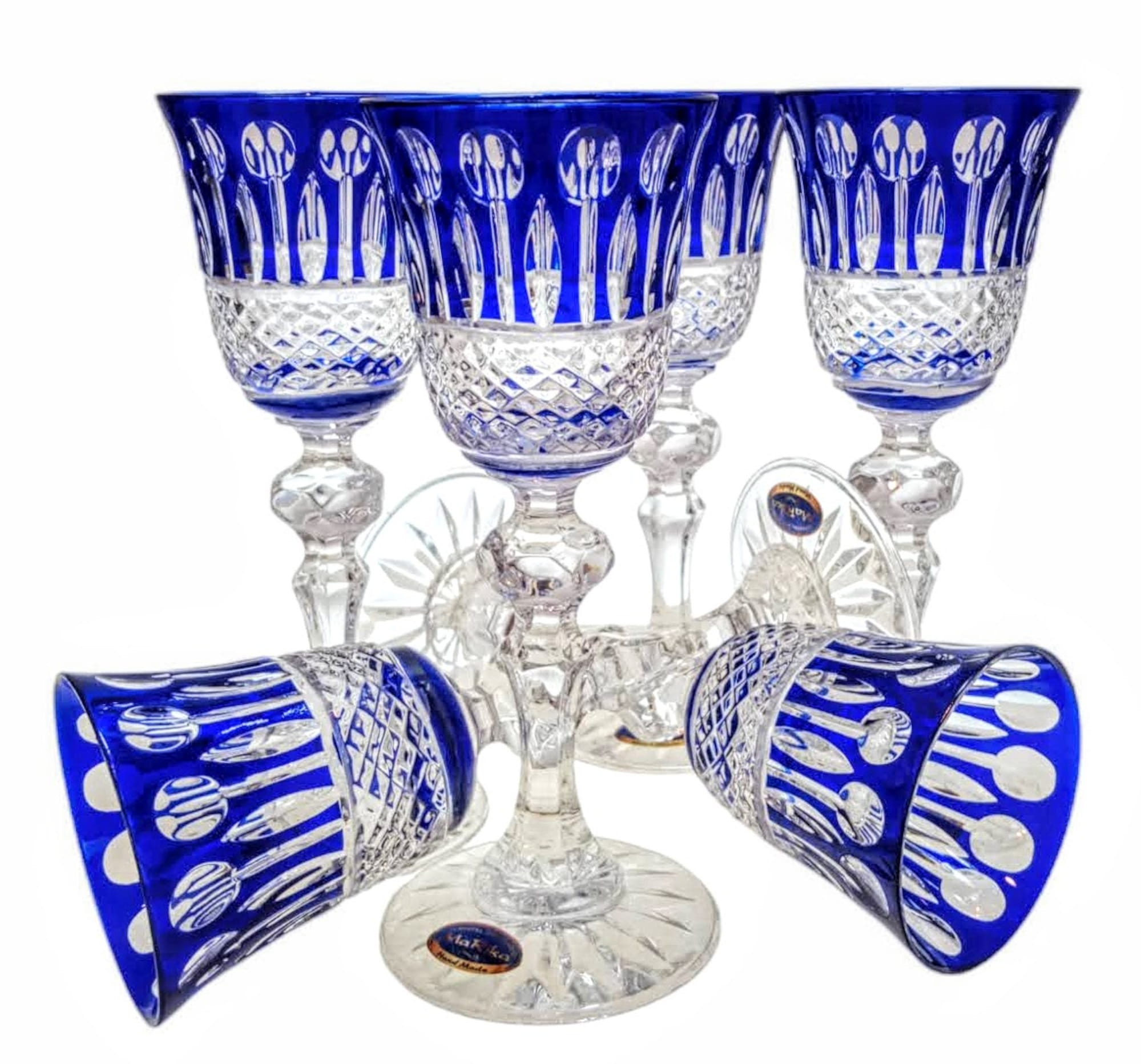 Oferujemy Państwu eleganckie, ręcznie malowane kieliszki do likieru o pojemności 60 ml, idealne do serwowania sherry i nalewek. Każdy kieliszek jest unikatowym dziełem, wykonanym z najwyższej jakości szkła kryształowego z 24% tlenku ołowiu, co zapewnia nie tylko niezwykłą klarowność, ale także wyjątkową trwałość. Nasze kieliszki są zdobione przez wykwalifikowanych Mistrzów, co sprawia, że każdy egzemplarz ma swój niepowtarzalny charakter. Nowoczesny, francuski wzór w intensywnym kobaltowym kolorze nadaje całości klasy i elegancji, czyniąc je doskonałym uzupełnieniem każdej wyjątkowej okazji. W komplecie znajduje się 6 kieliszków, starannie zapakowanych w eleganckie opakowanie z białym wykończeniem, co czyni je idealnym pomysłem na prezent. Wysokość kieliszka wynosi 15 cm. Te wyjątkowe kieliszki z pewnością staną się ozdobą każdego stołu.