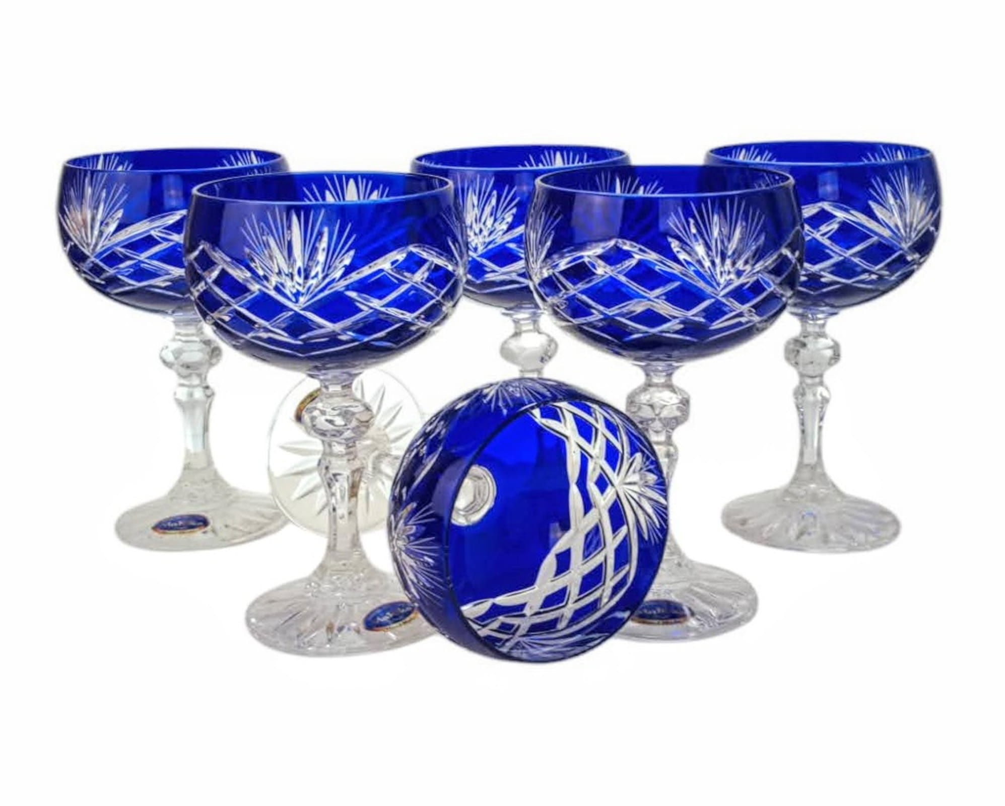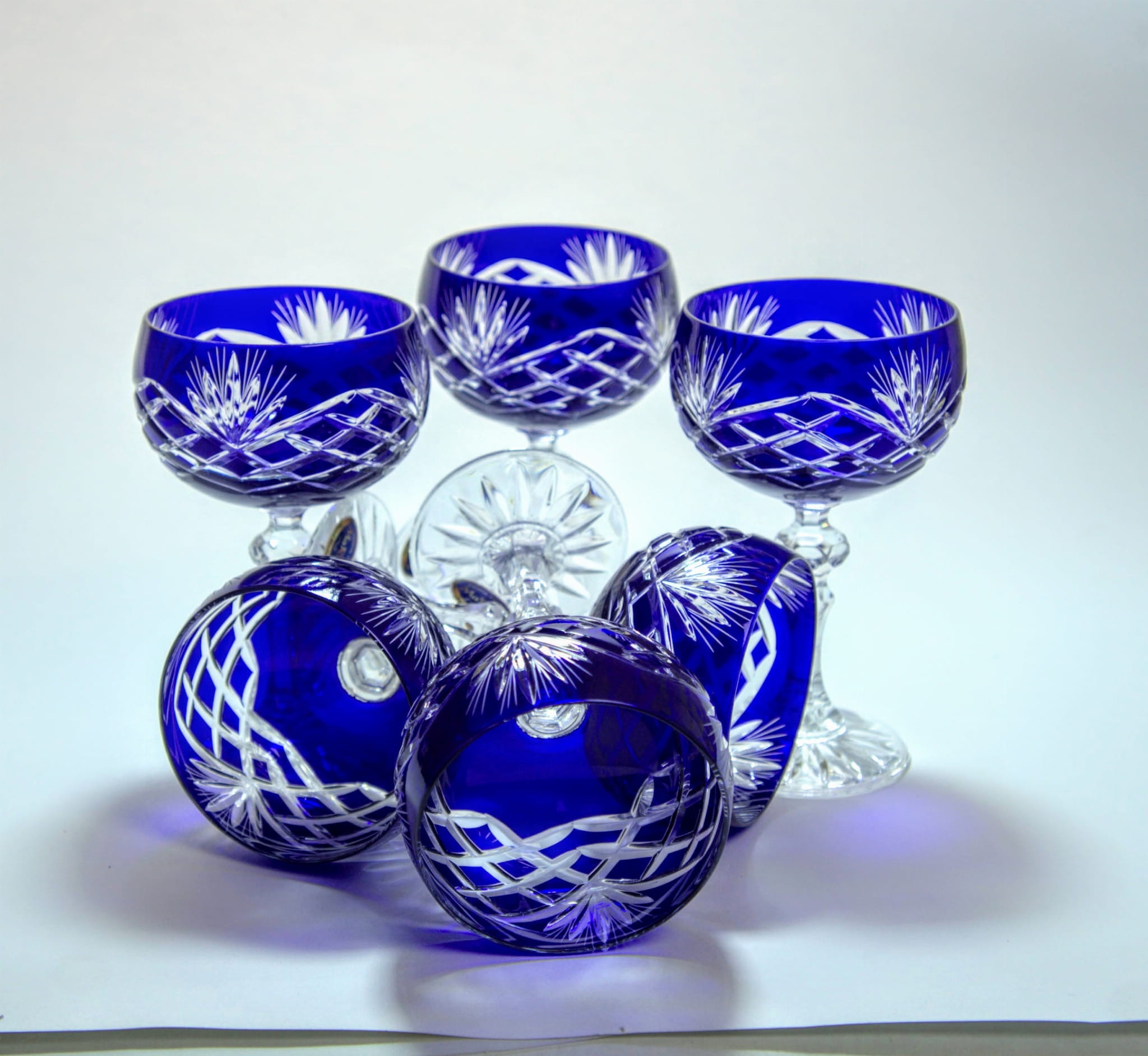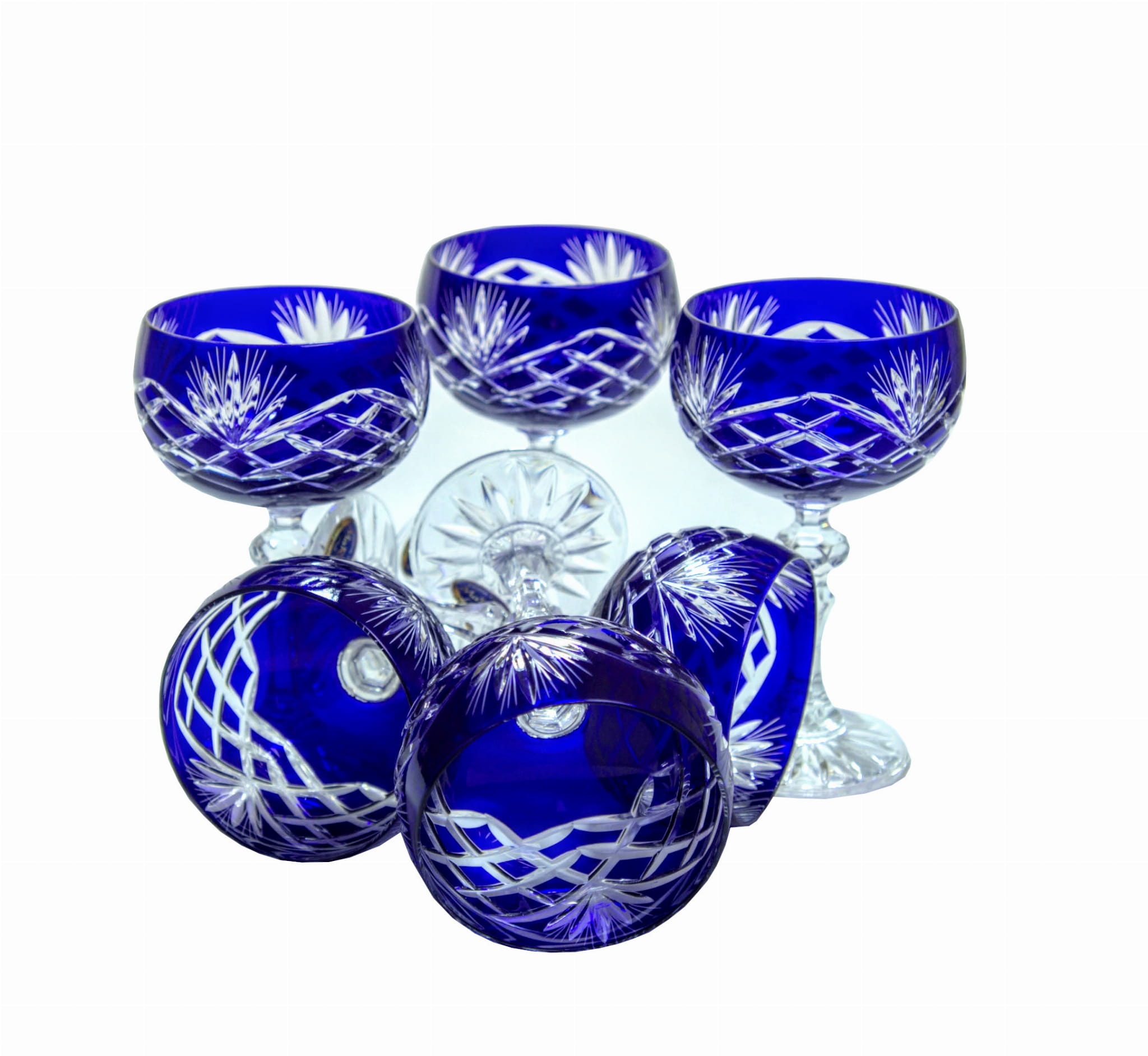 Kobaltowe kryształowe kieliszki do szampana 150ml Ananas