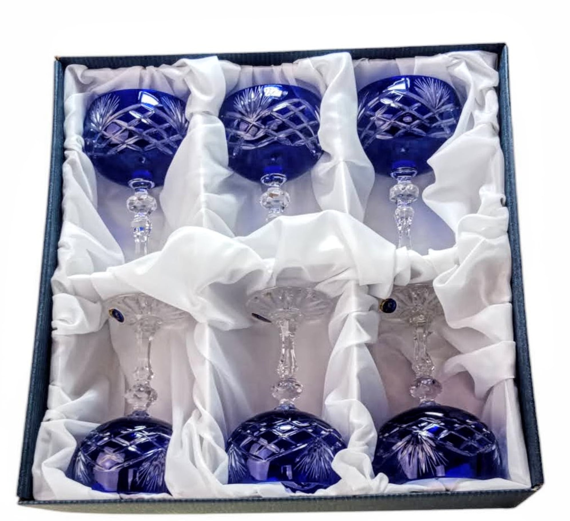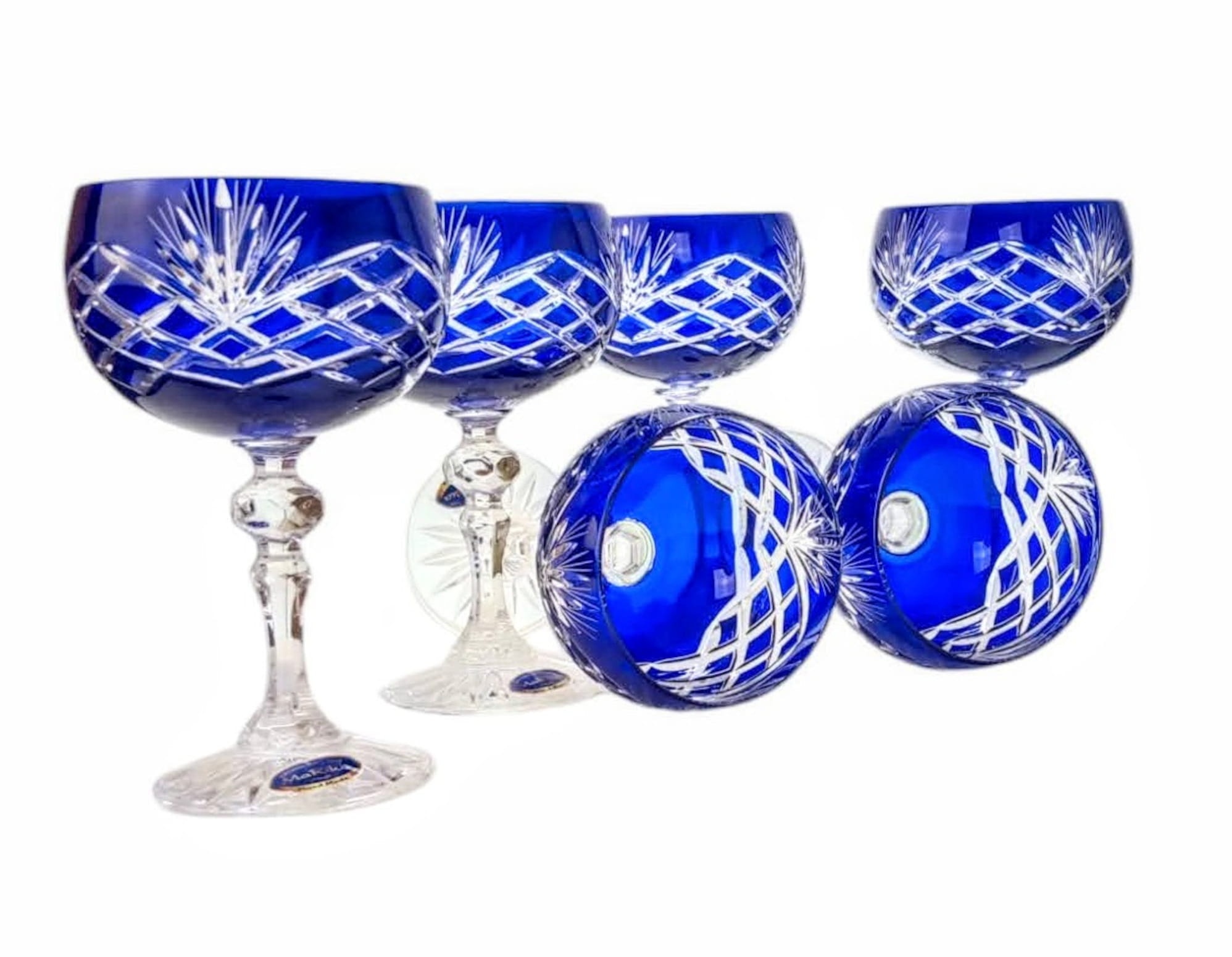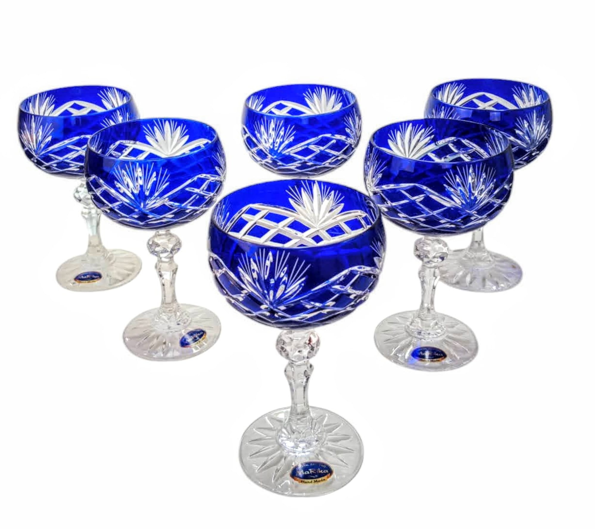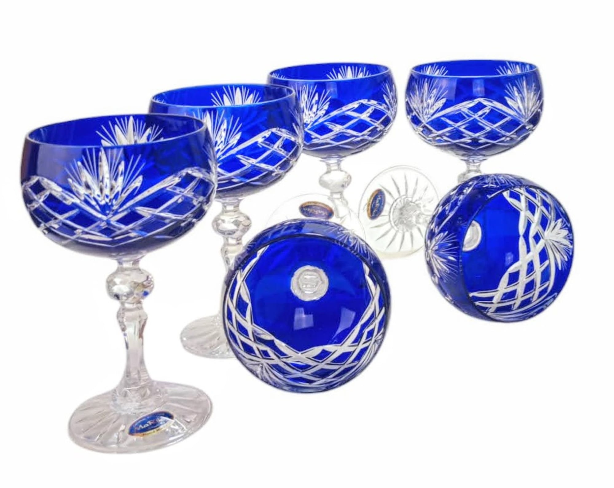 Kobaltowe kryształowe kieliszki do szampana 150ml Ananas