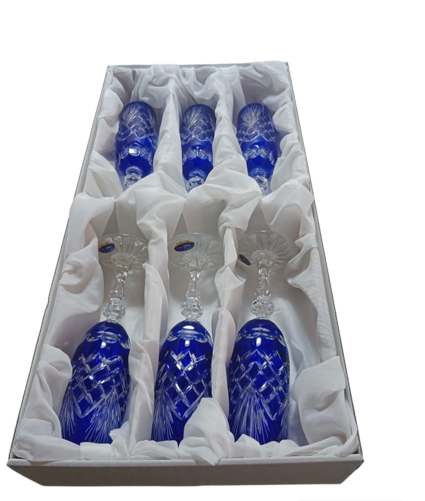 Kobaltowe kryształowe kieliszki do szampana 150ml Ananas