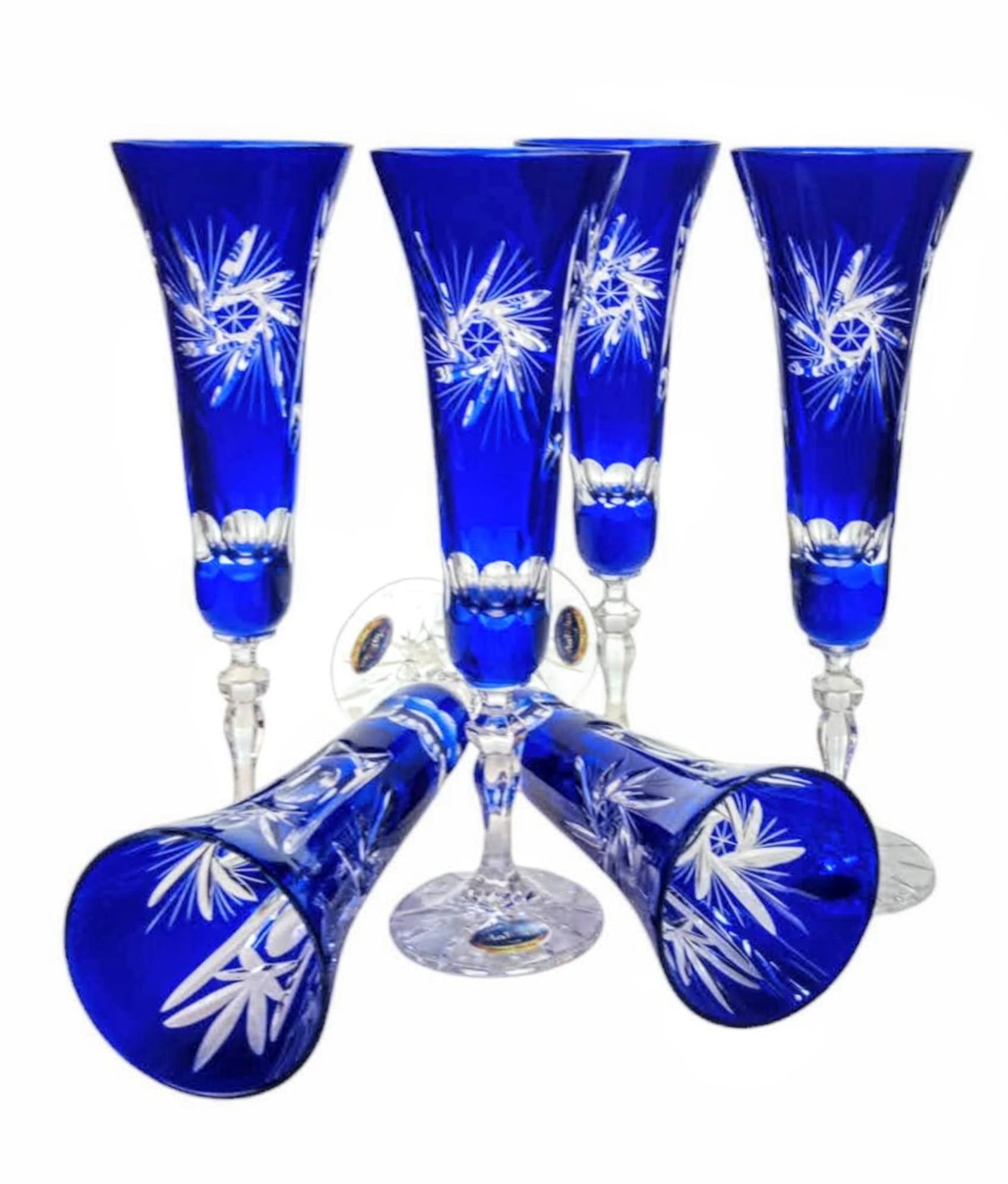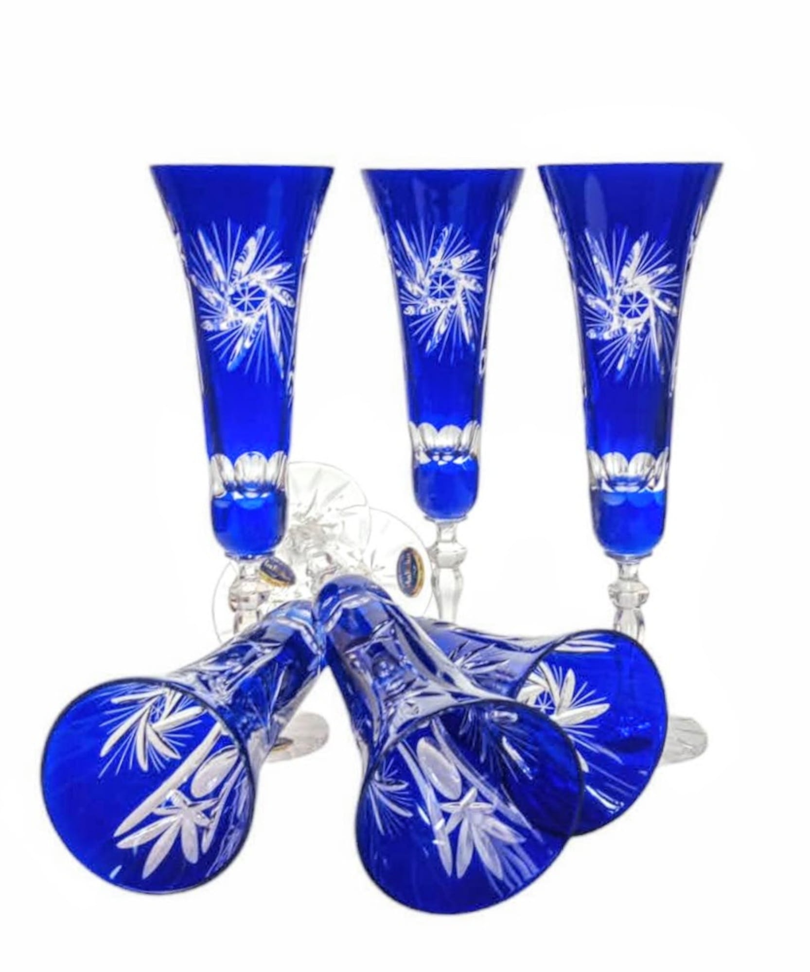 Piękne ręcznie malowane i zdobione kieliszki Idealnie nadające się do win musujących i szampana. Kieliszki wykonane są od początku do końca ręcznie. Już sam kształt kieliszka wydmuchiwany jest przez hutnika, następnie każdy kieliszek poddawany jest ręcznej obróbce przez naszych Mistrzów Zdobienia.