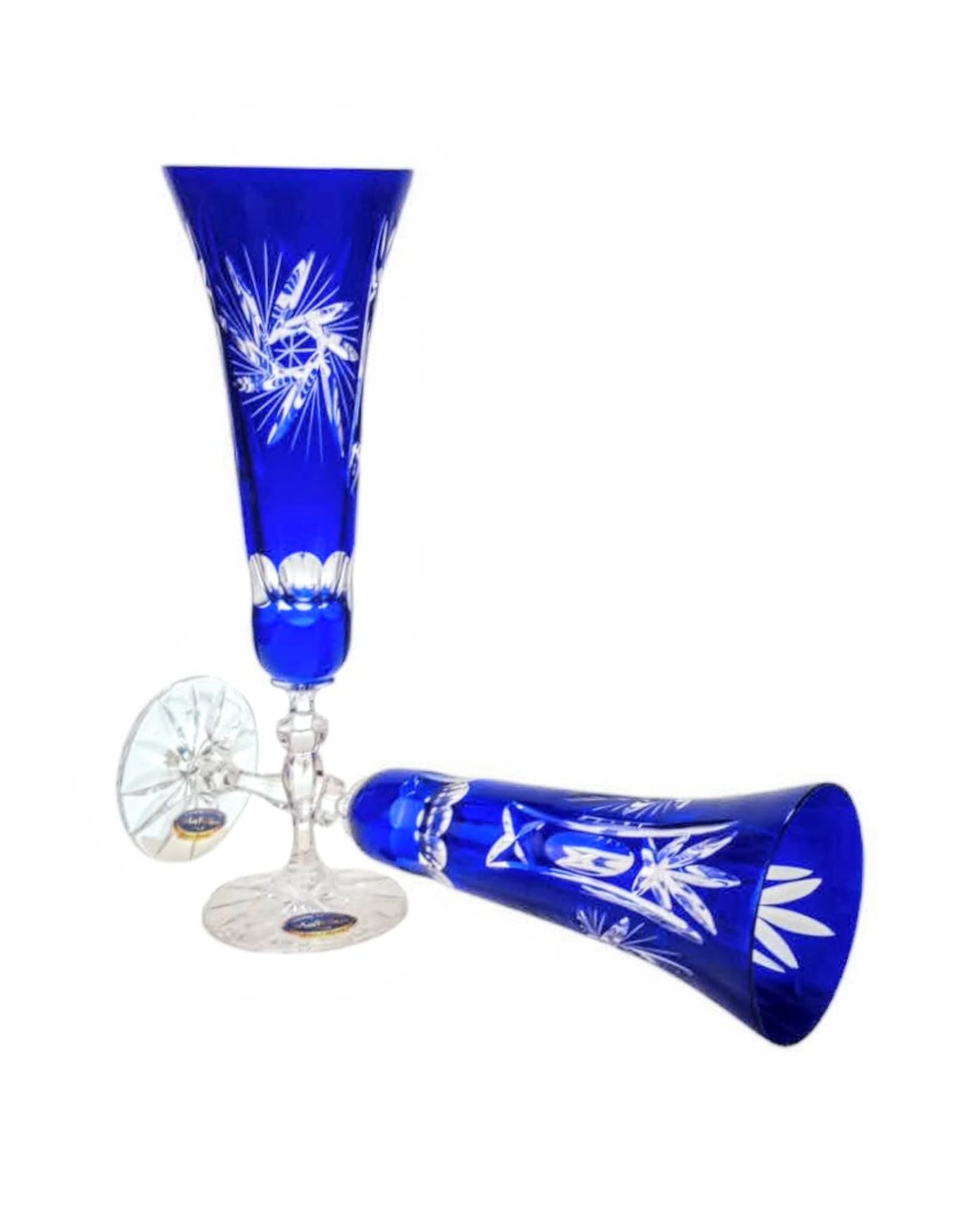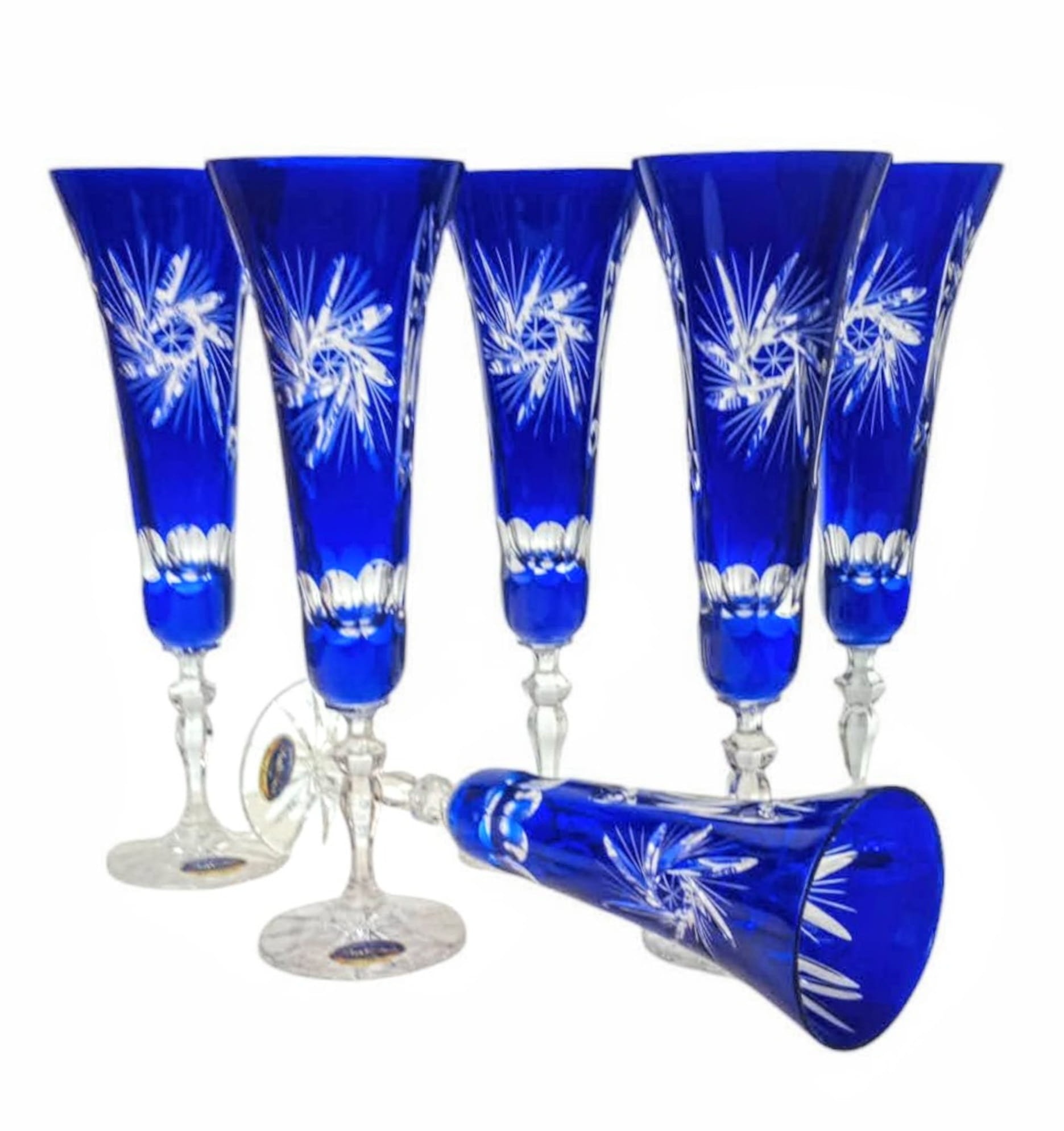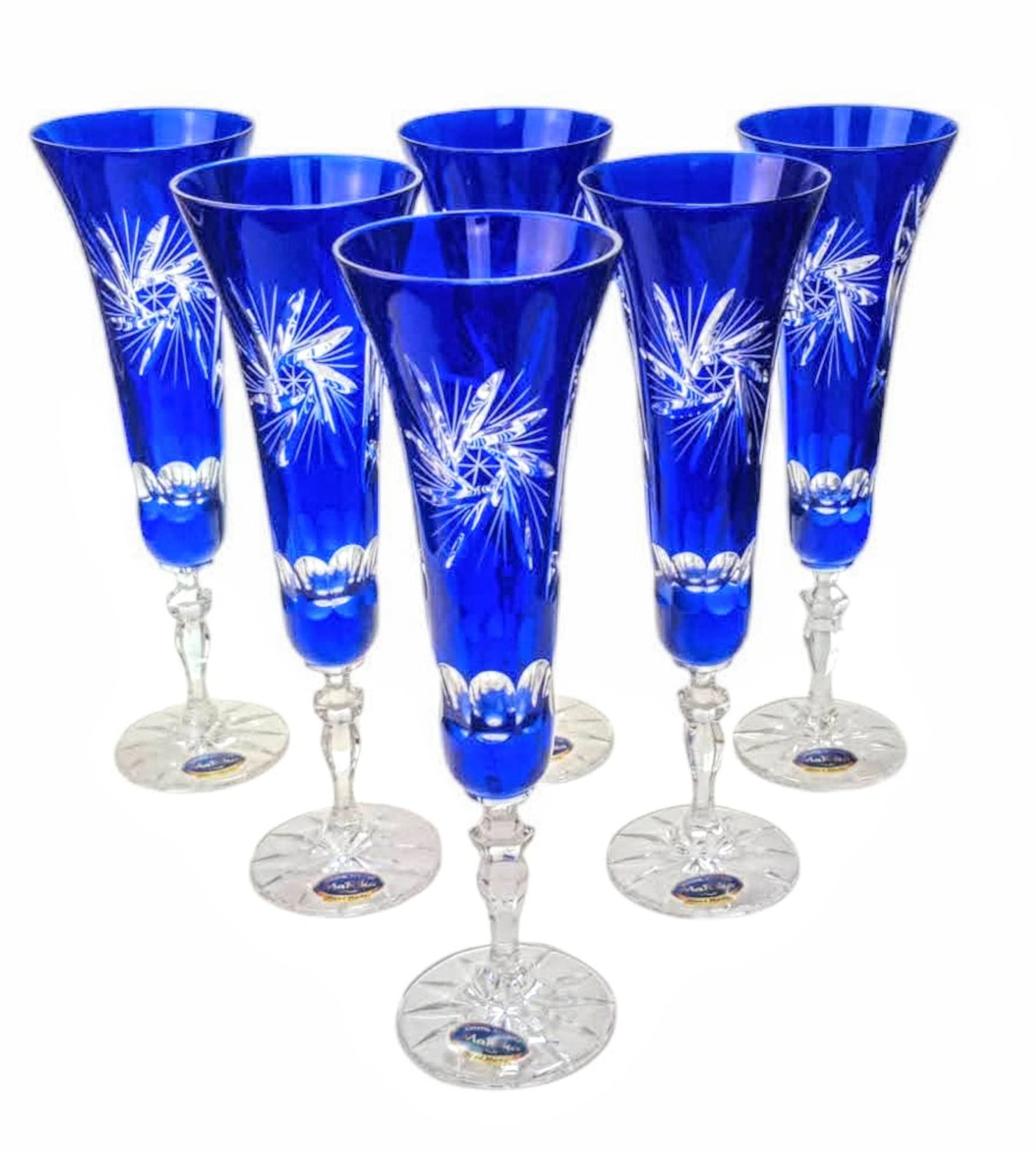 Kobaltowe kryształowe kieliszki do szampana 170ml Młynek Oliwka 6 sztuk