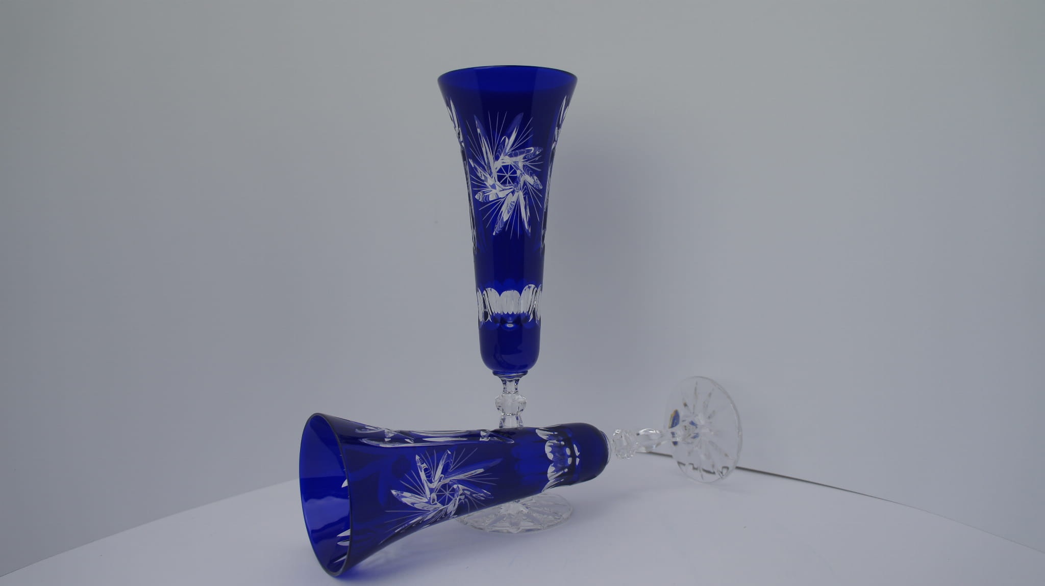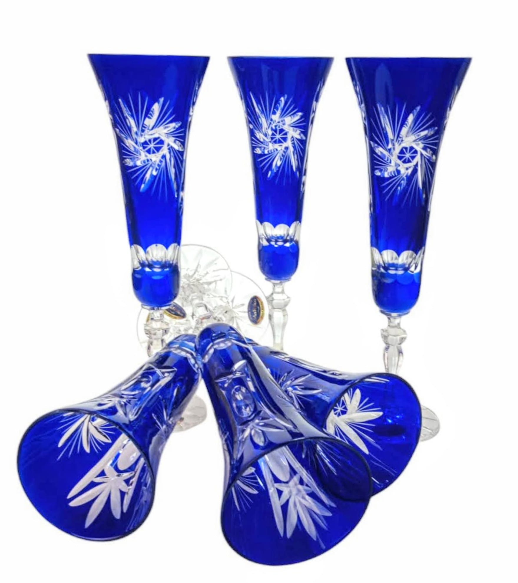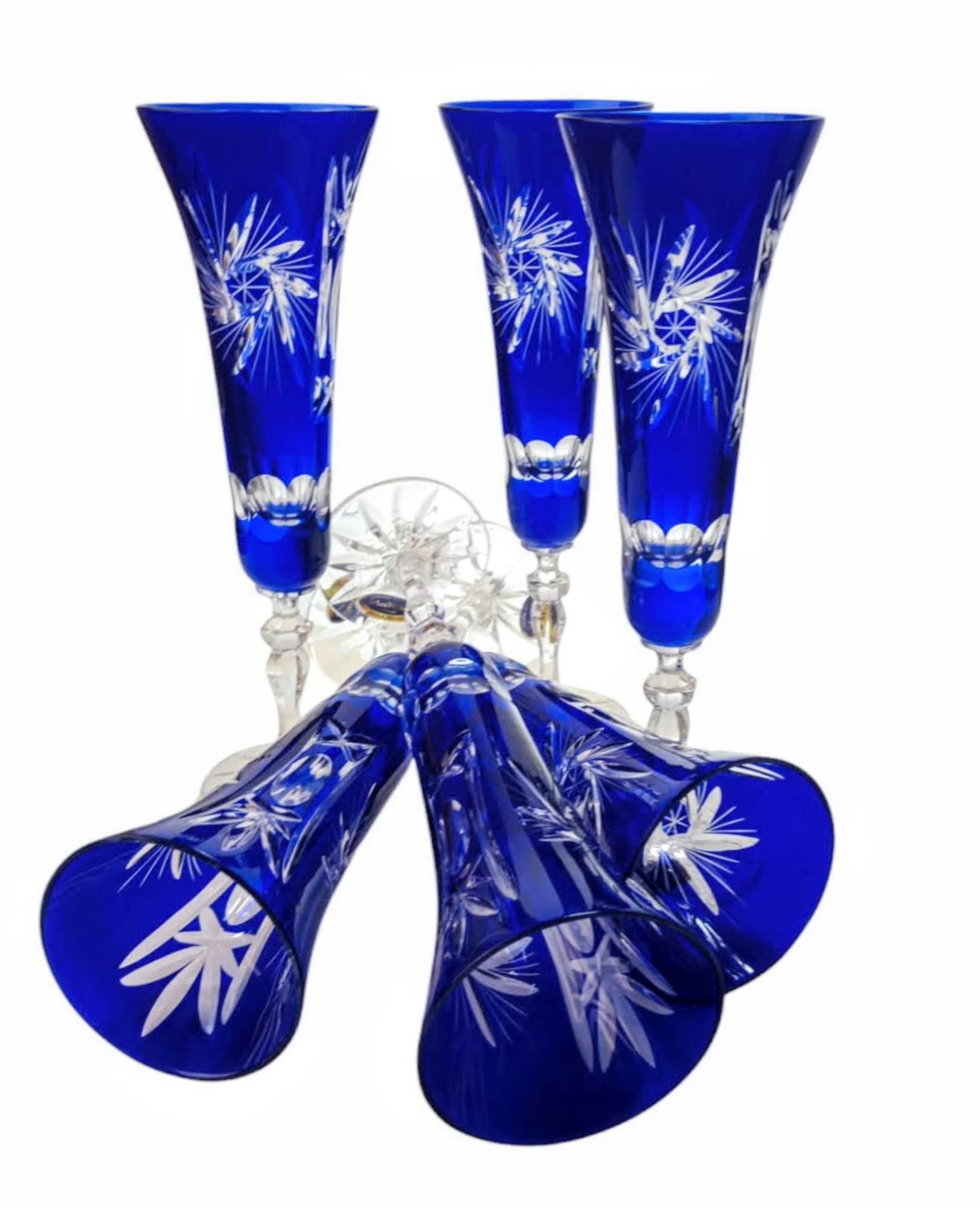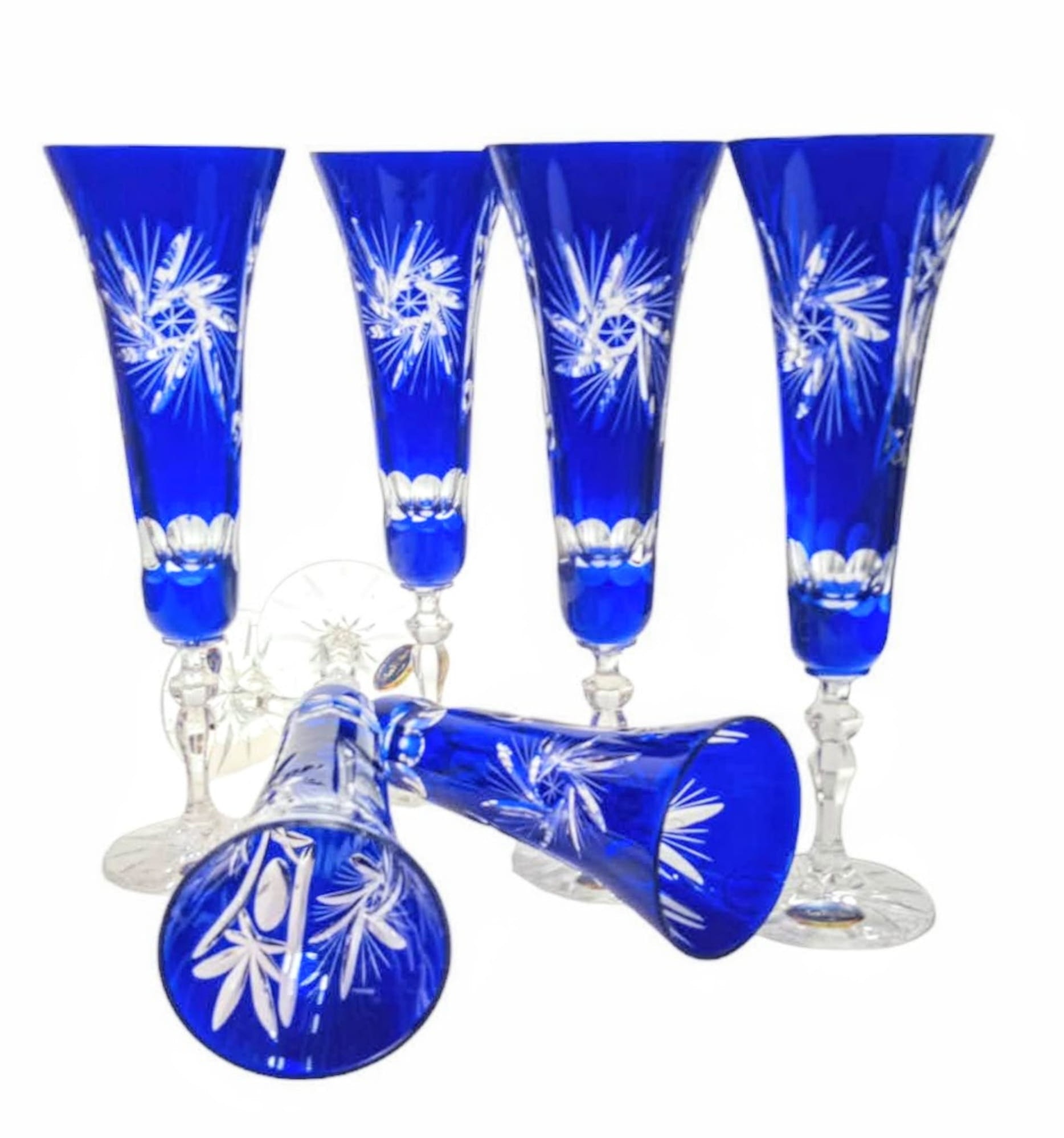 Kobaltowe kryształowe kieliszki do szampana 170ml Młynek Oliwka 6 sztuk