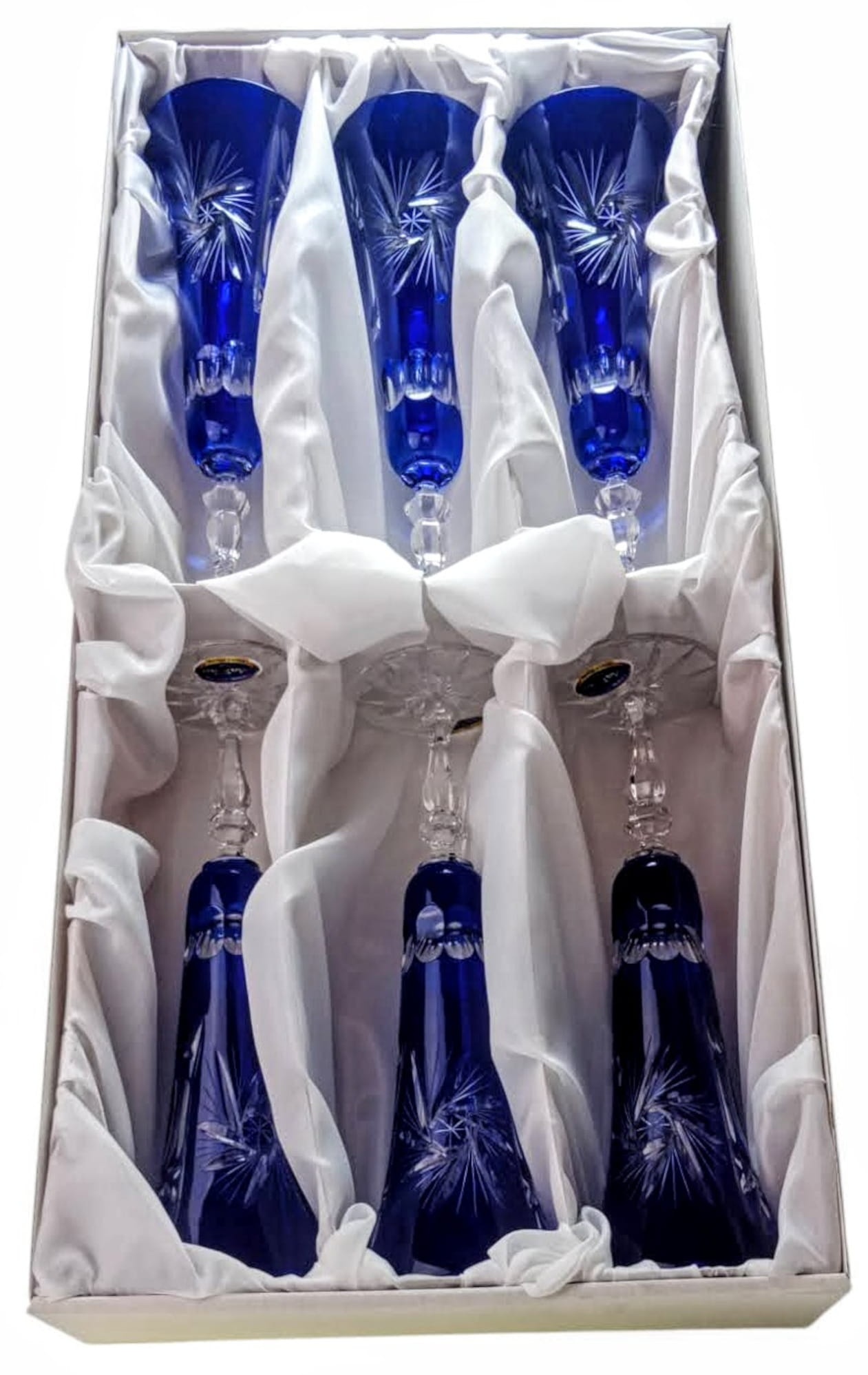 Komplet zawiera 6 sztuk kieliszków zapakowanych w ozdobne opakowanie wyłożone białym materiałem (Podgląd)
