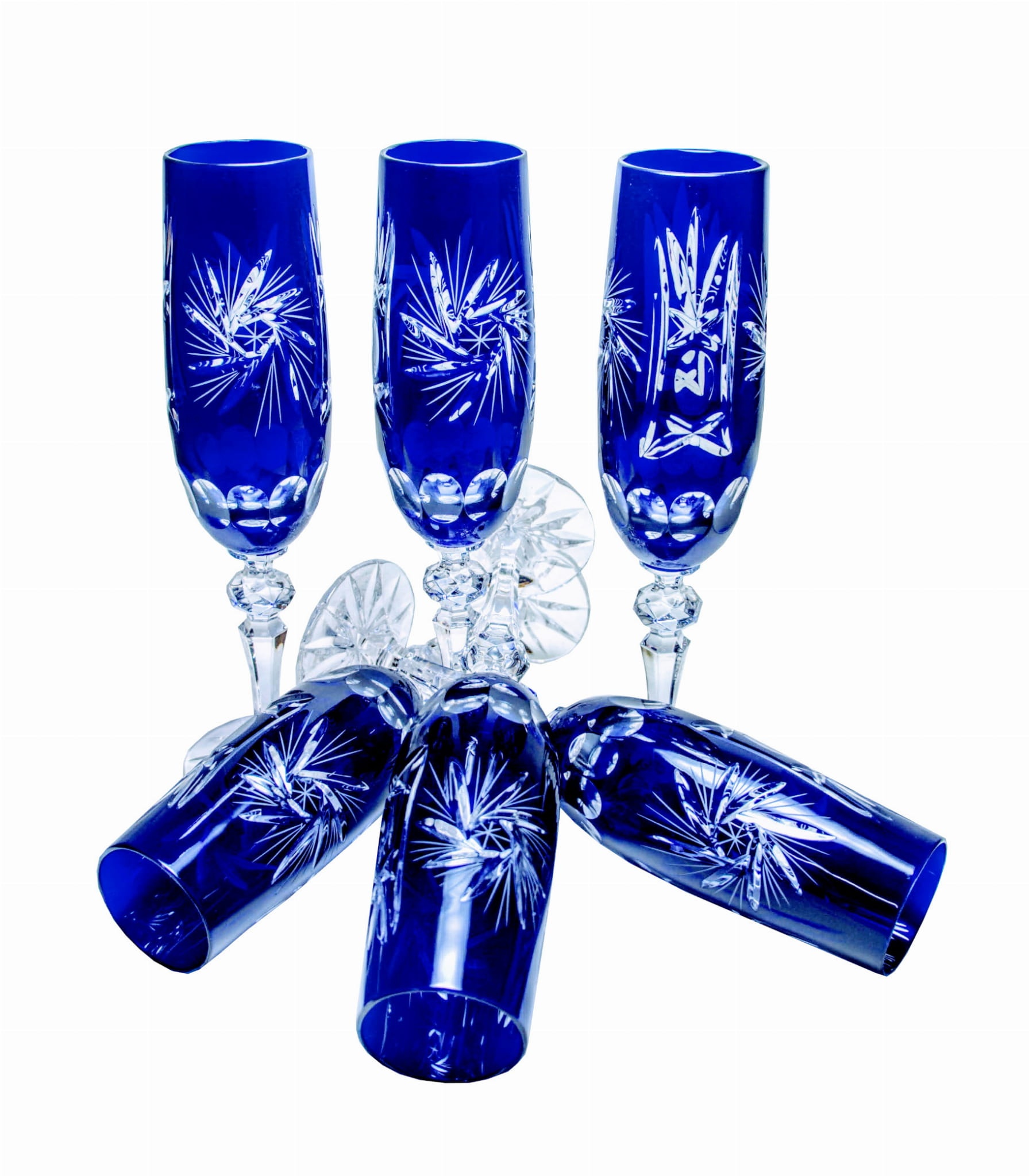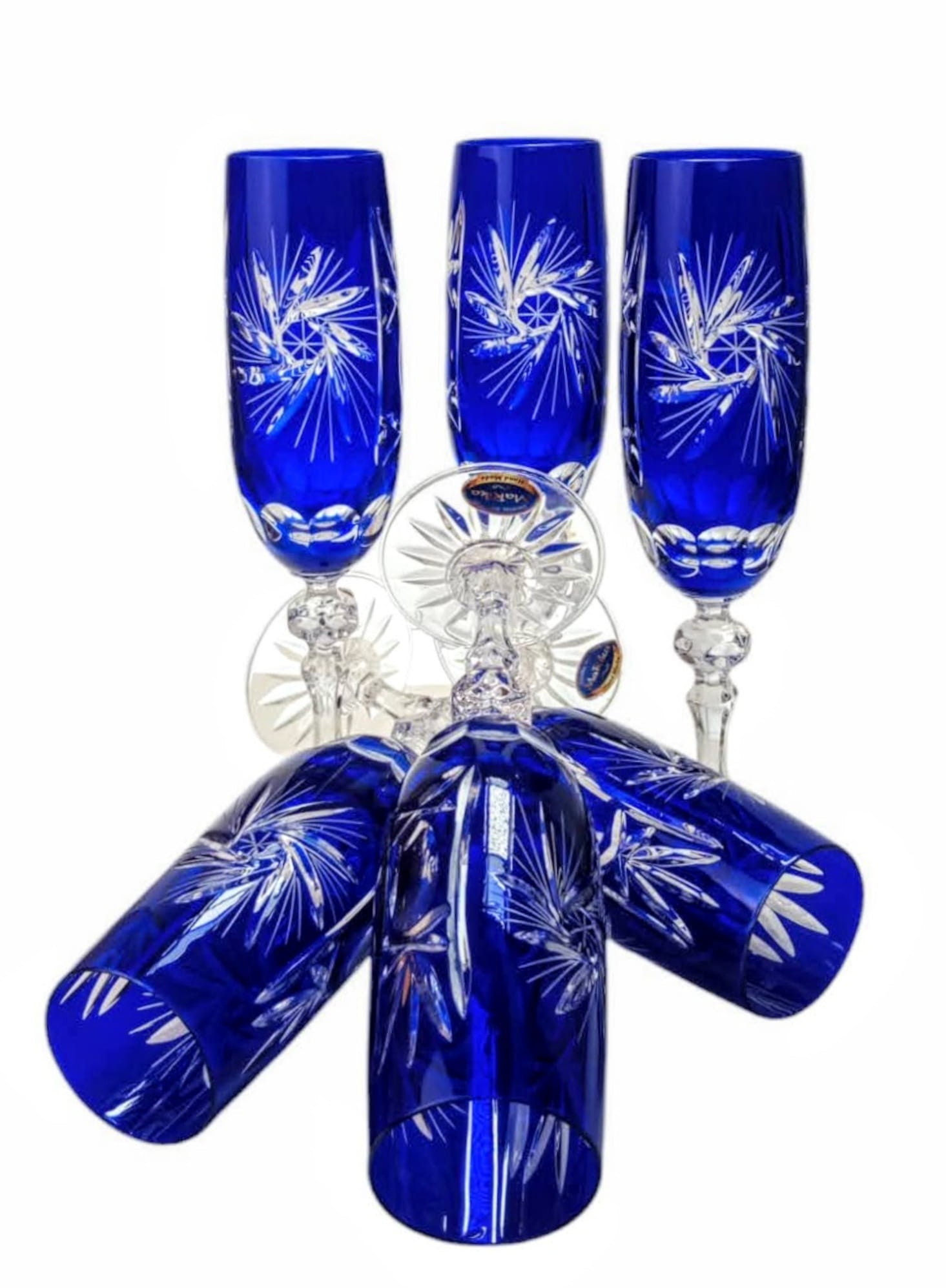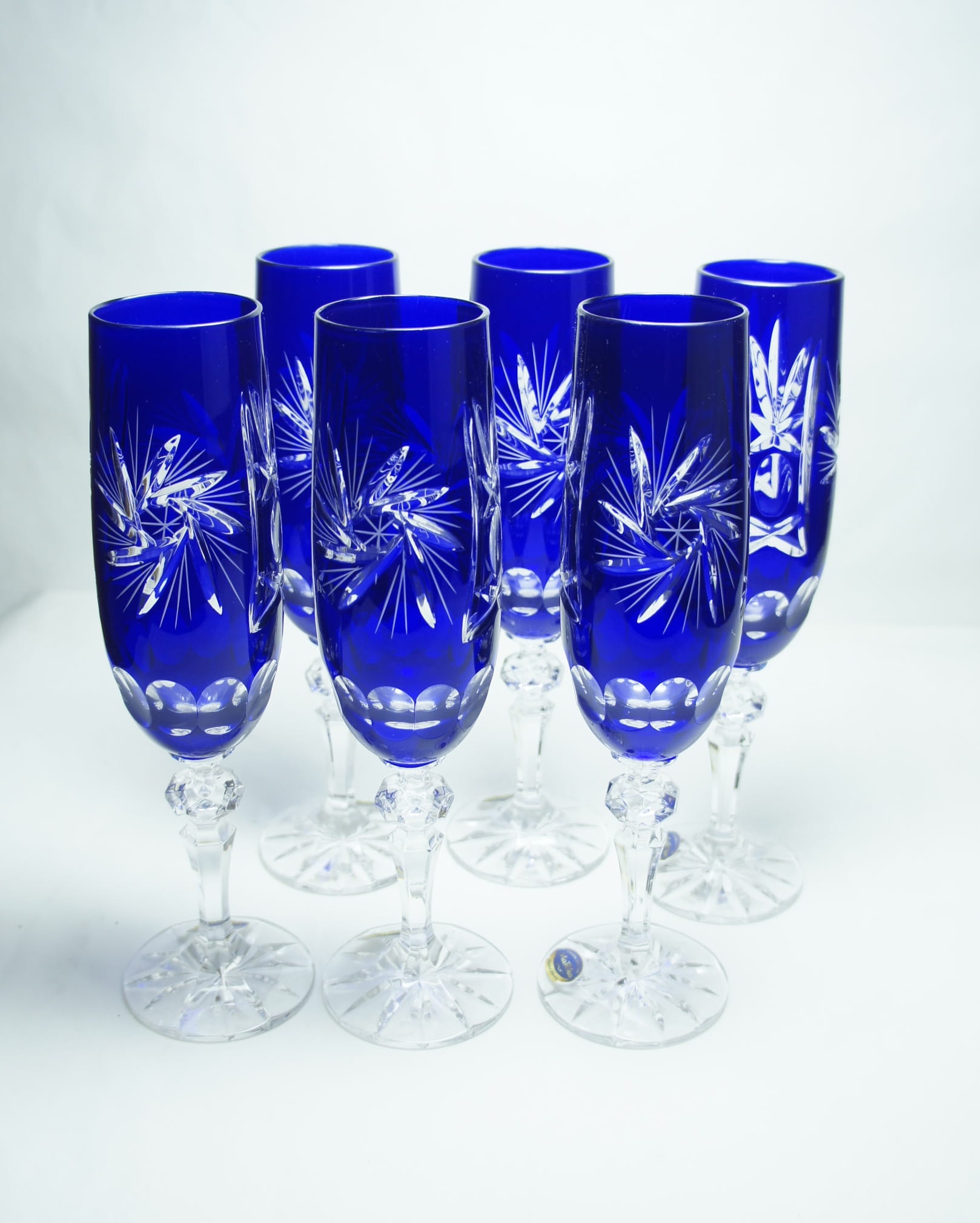 Kobaltowe kryształowe kieliszki do szampana170ml Młynek Oliwka 6 szt