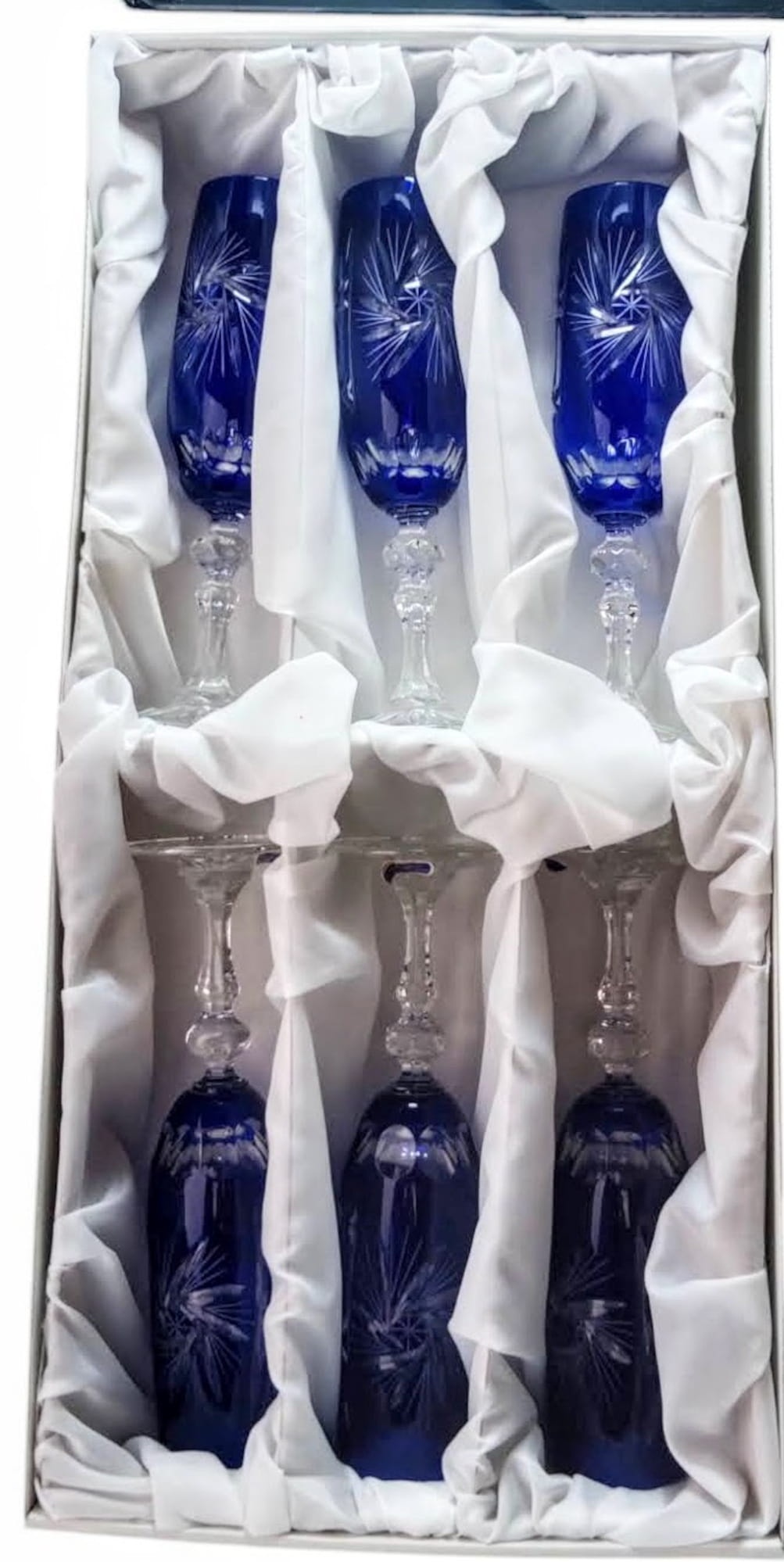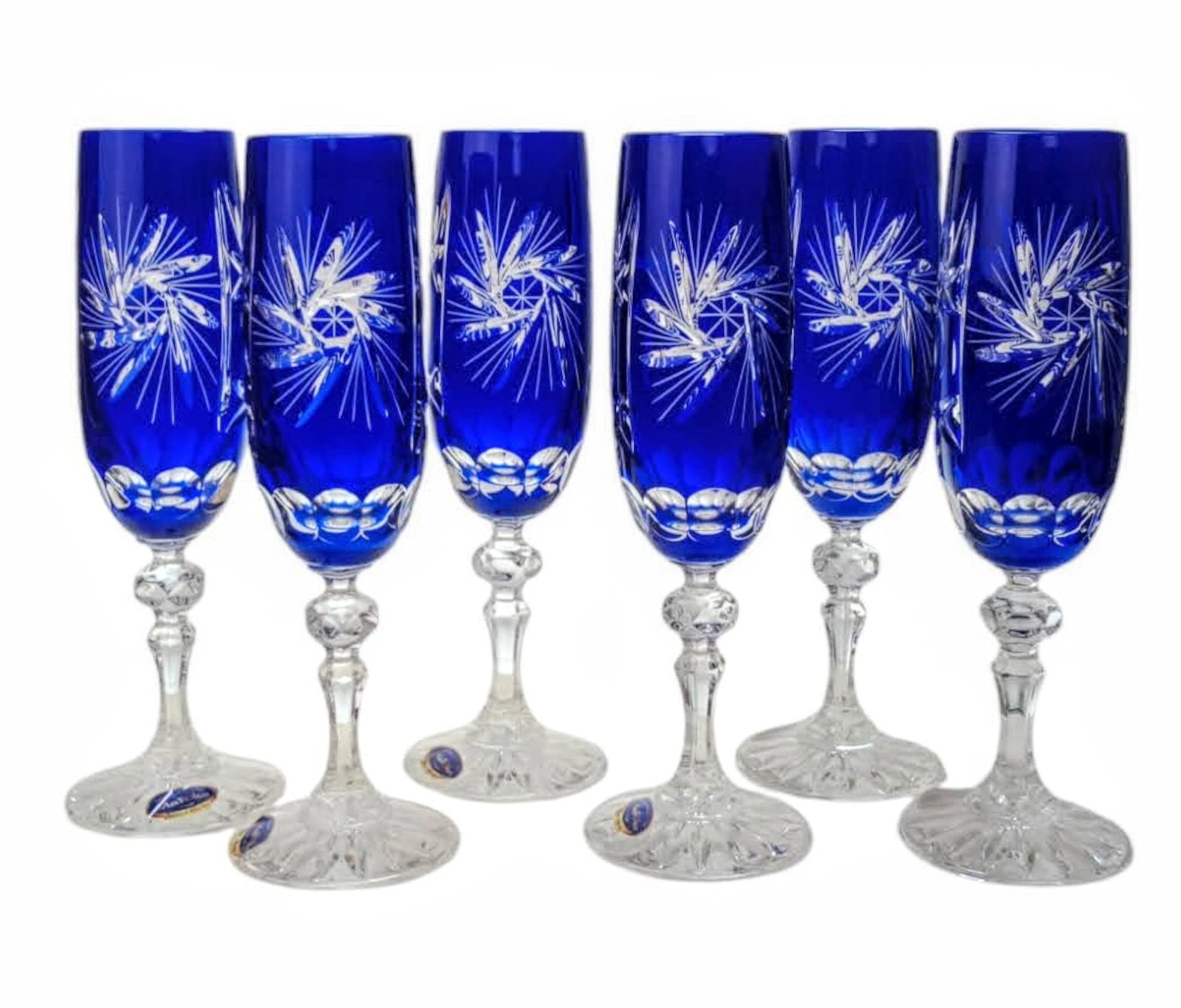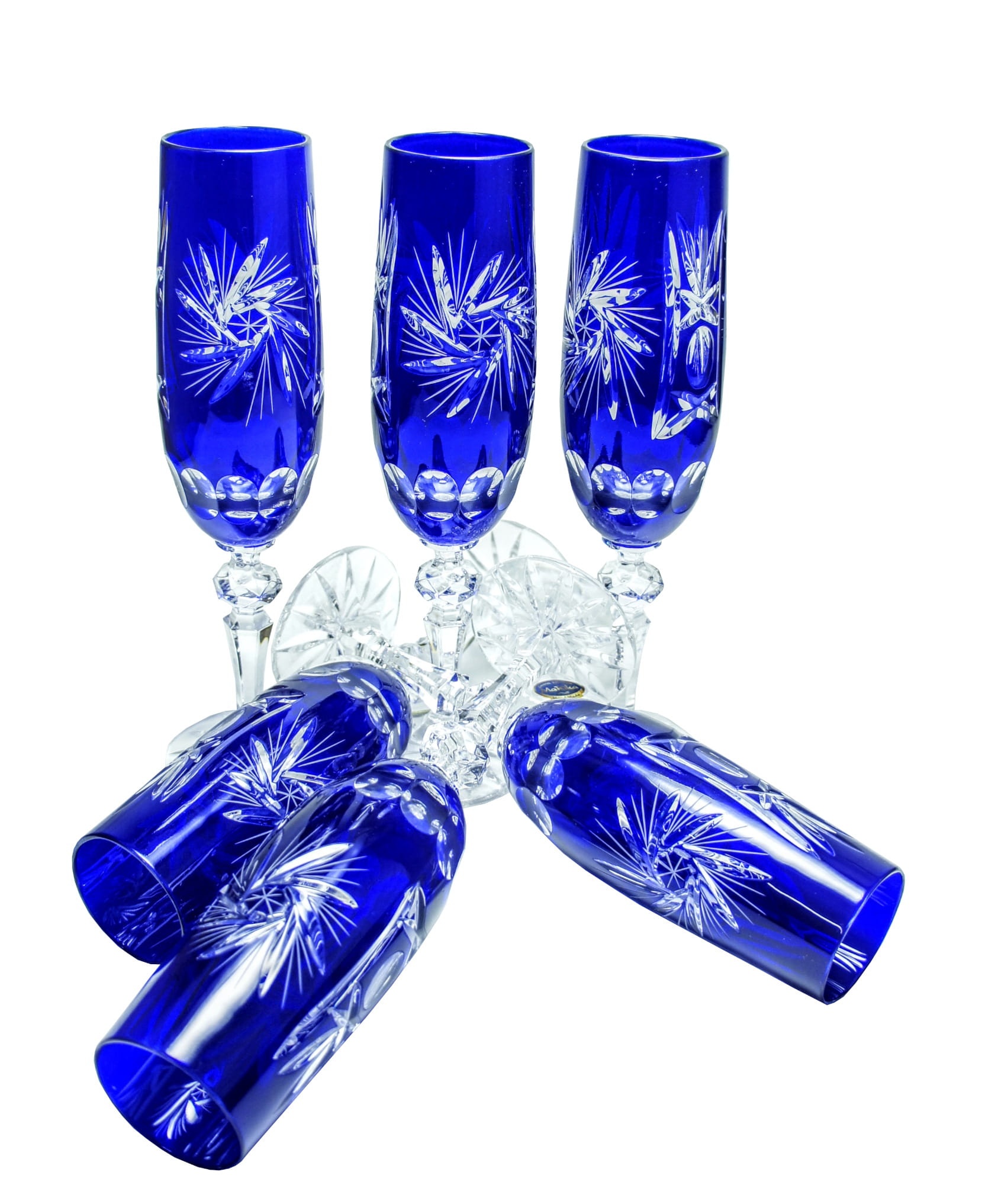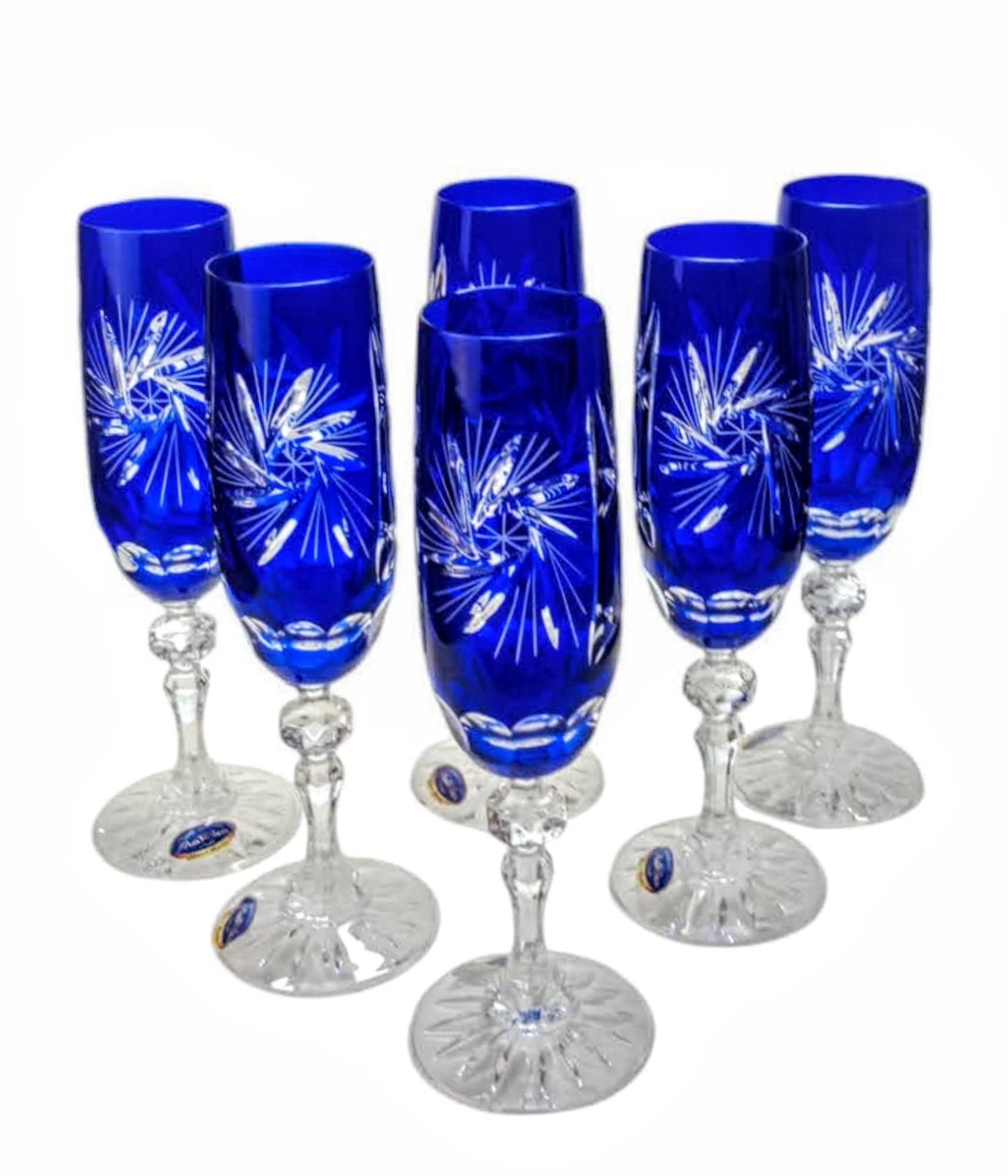 Kobaltowe kryształowe kieliszki do szampana170ml Młynek Oliwka 6 szt