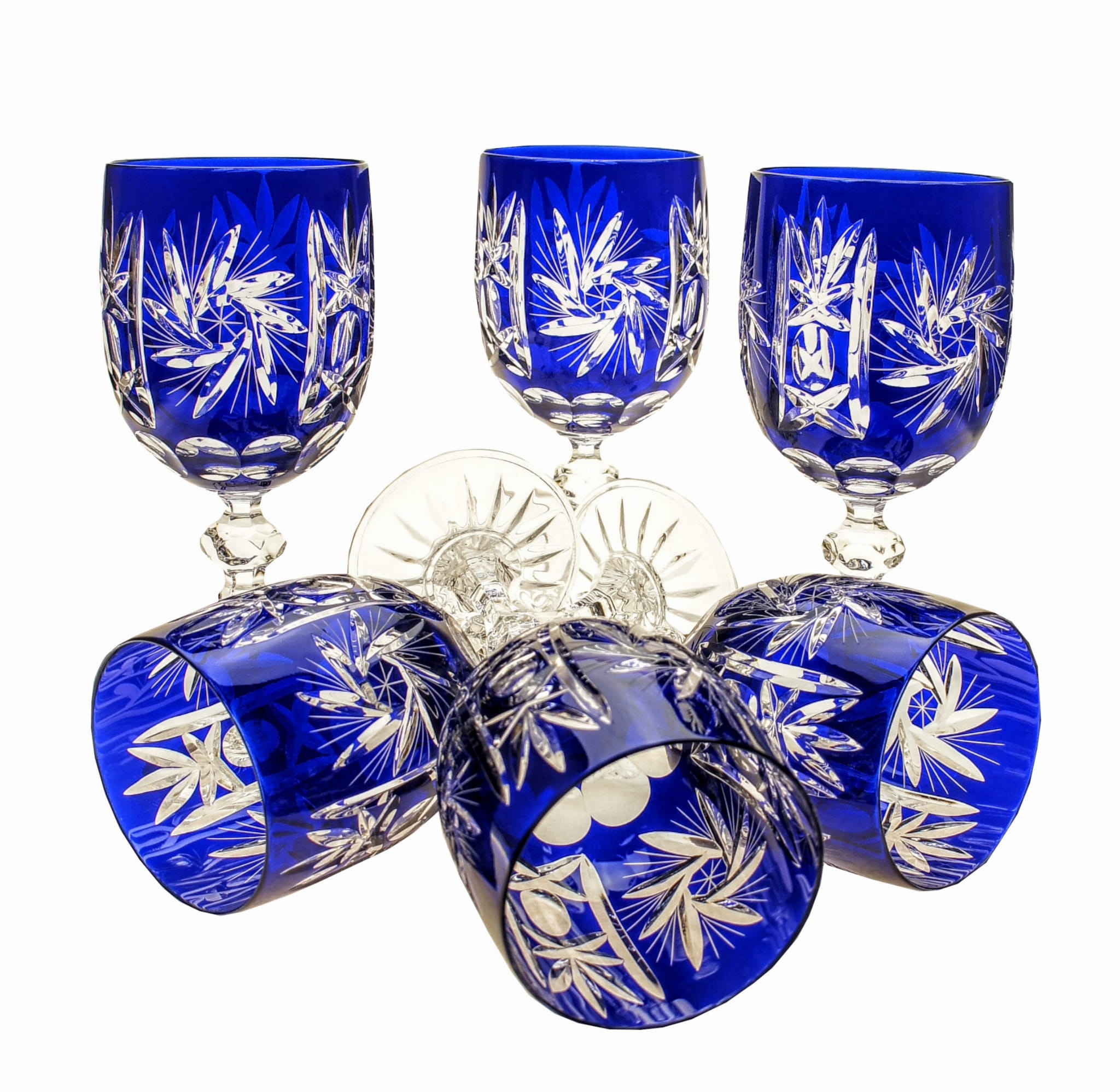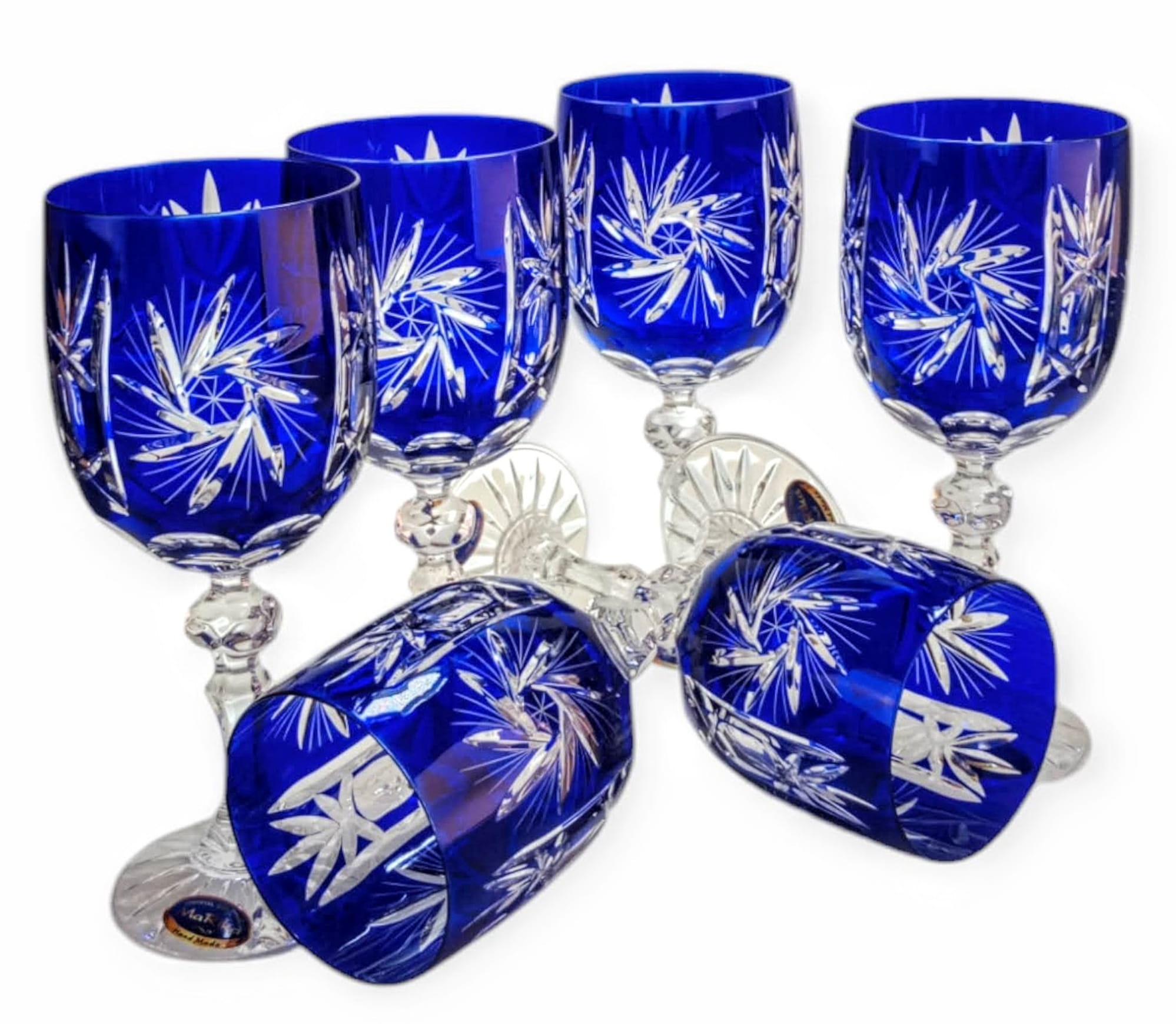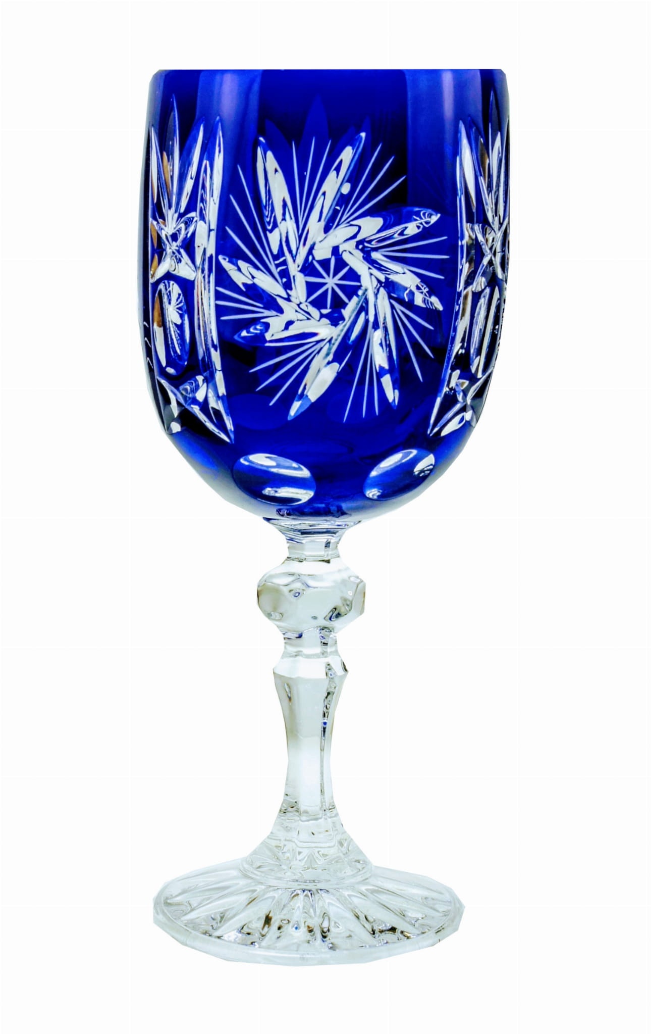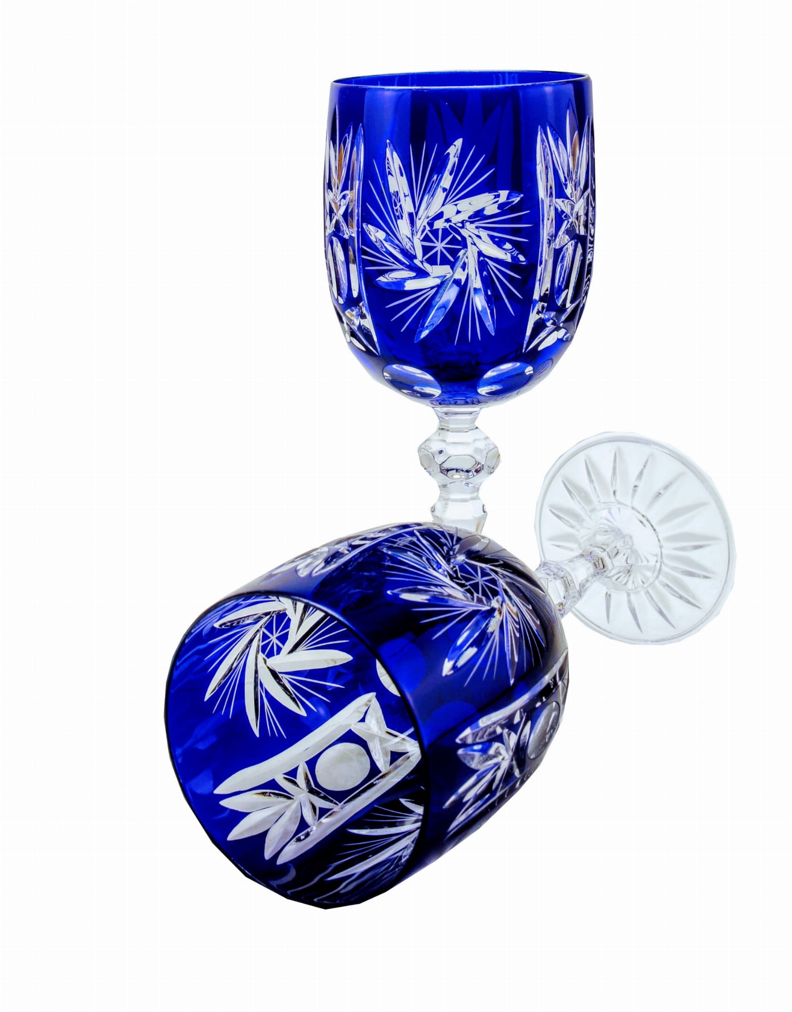 Kobaltowe kryształowe kieliszki do wina 240ml Młynek Oliwka 6 sztuk