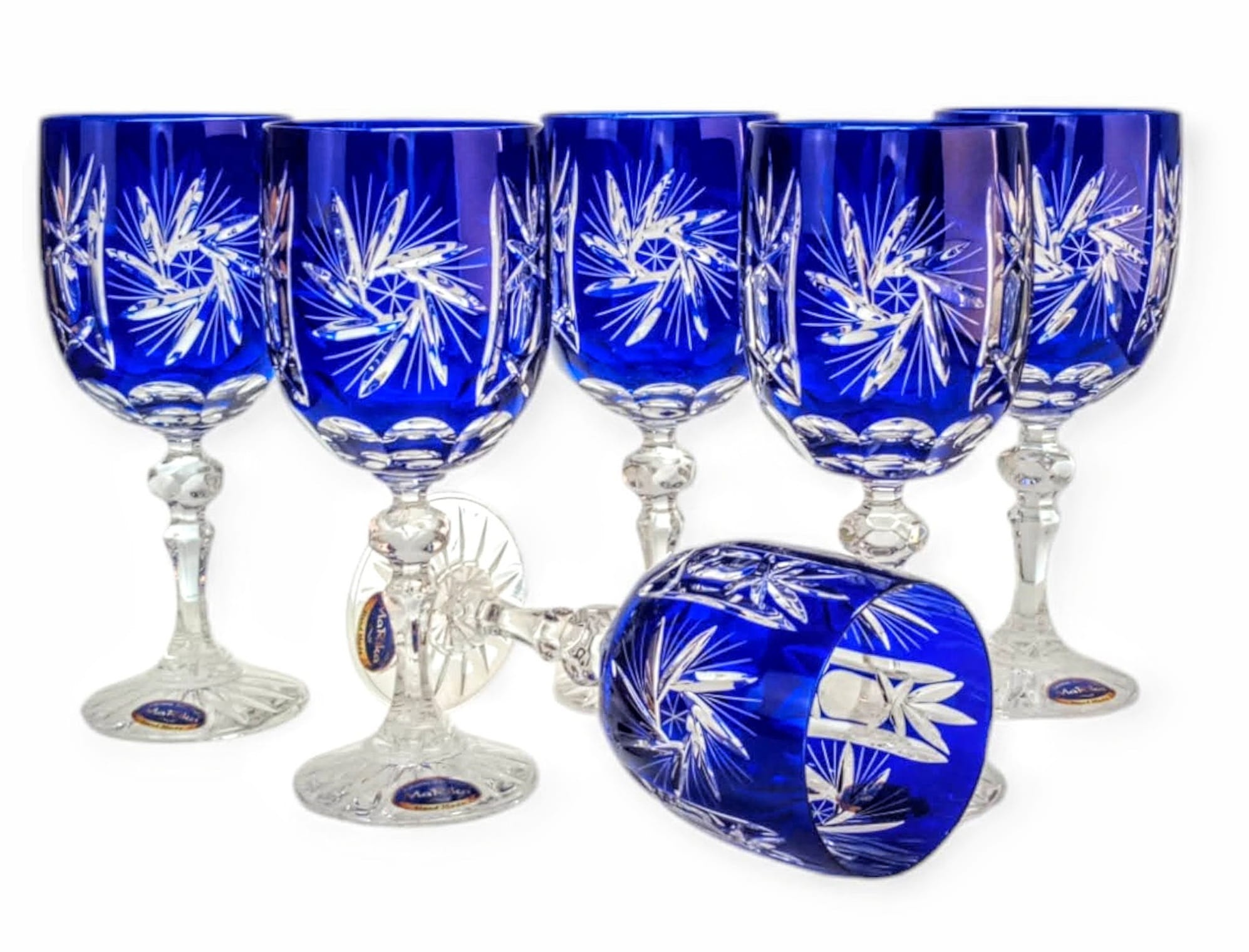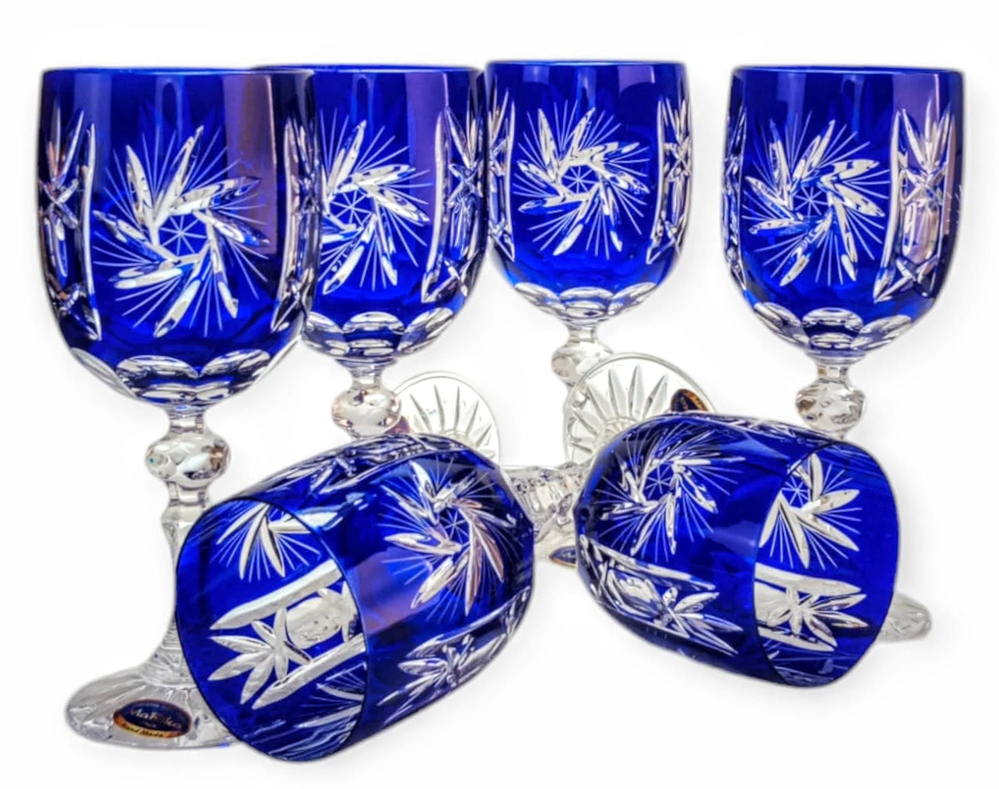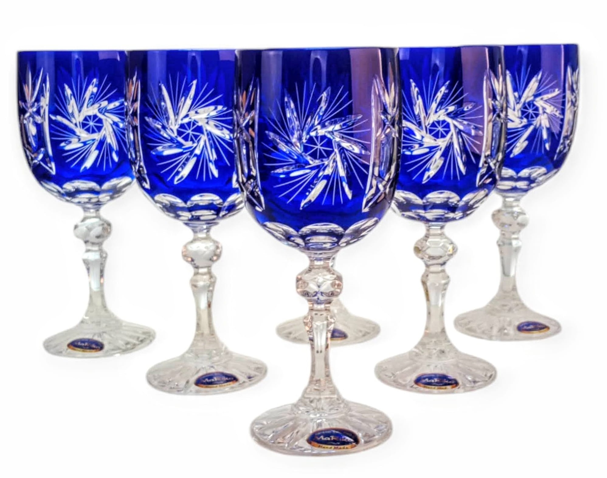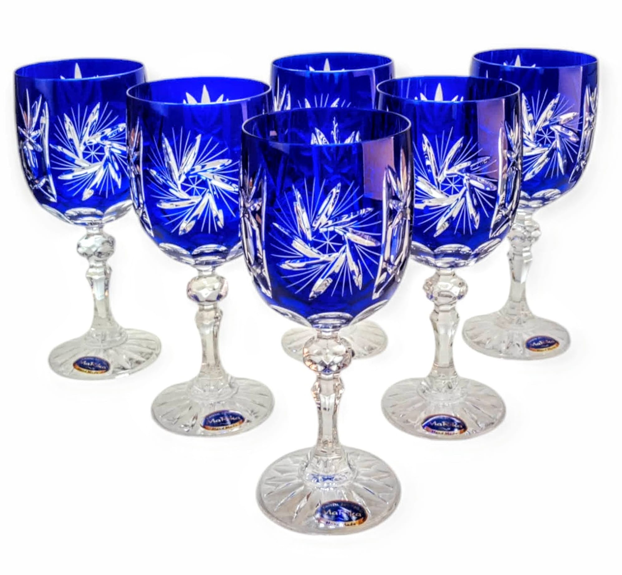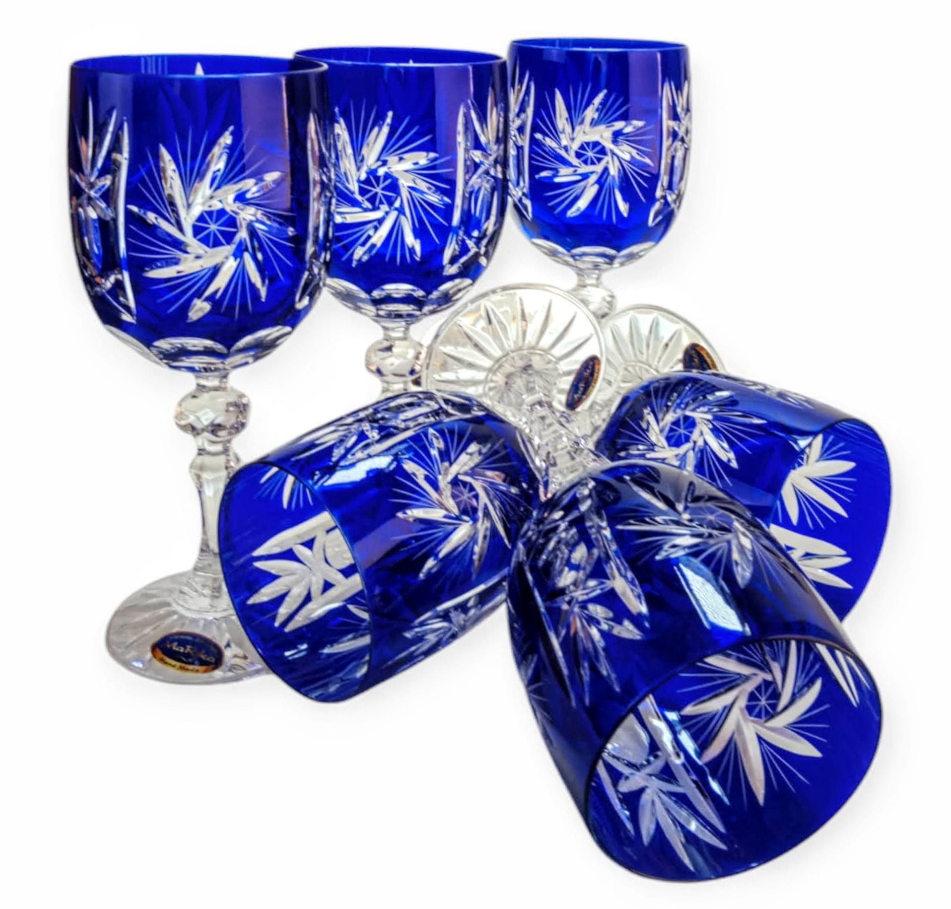 Kobaltowe kryształowe kieliszki do wina 240ml Młynek Oliwka 6 sztuk