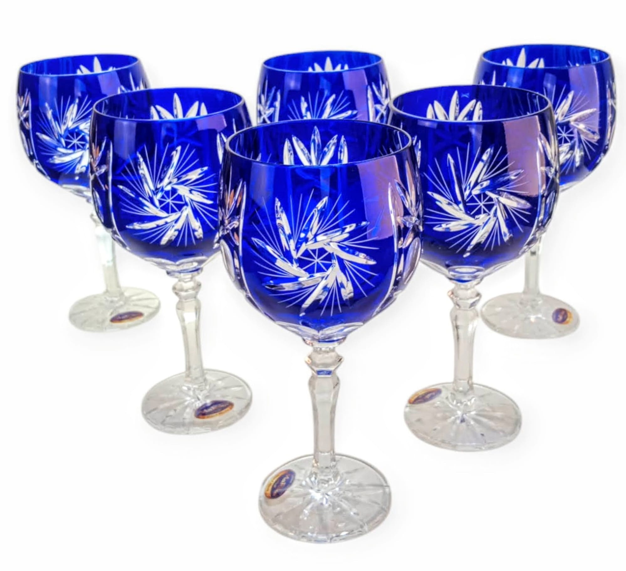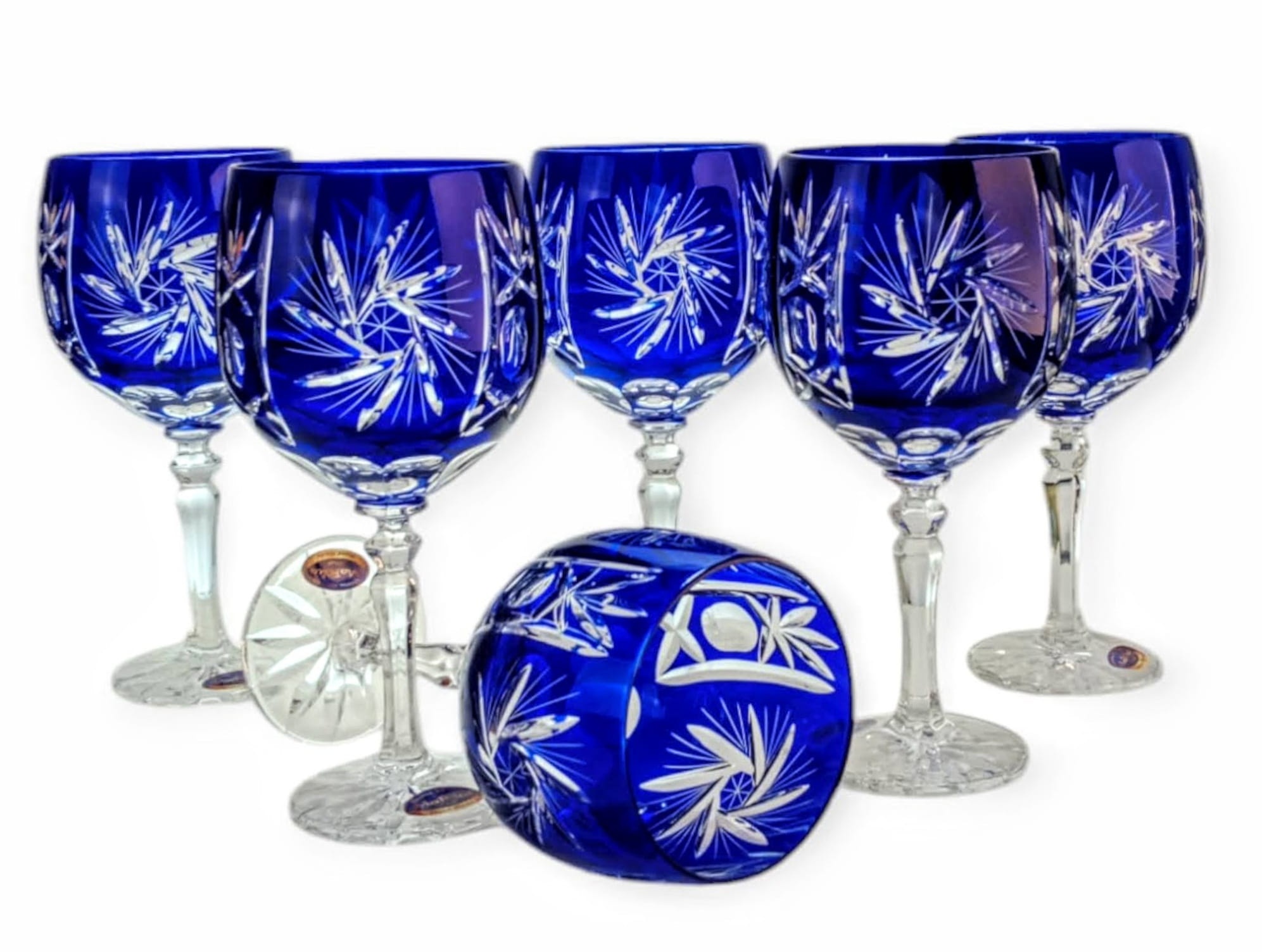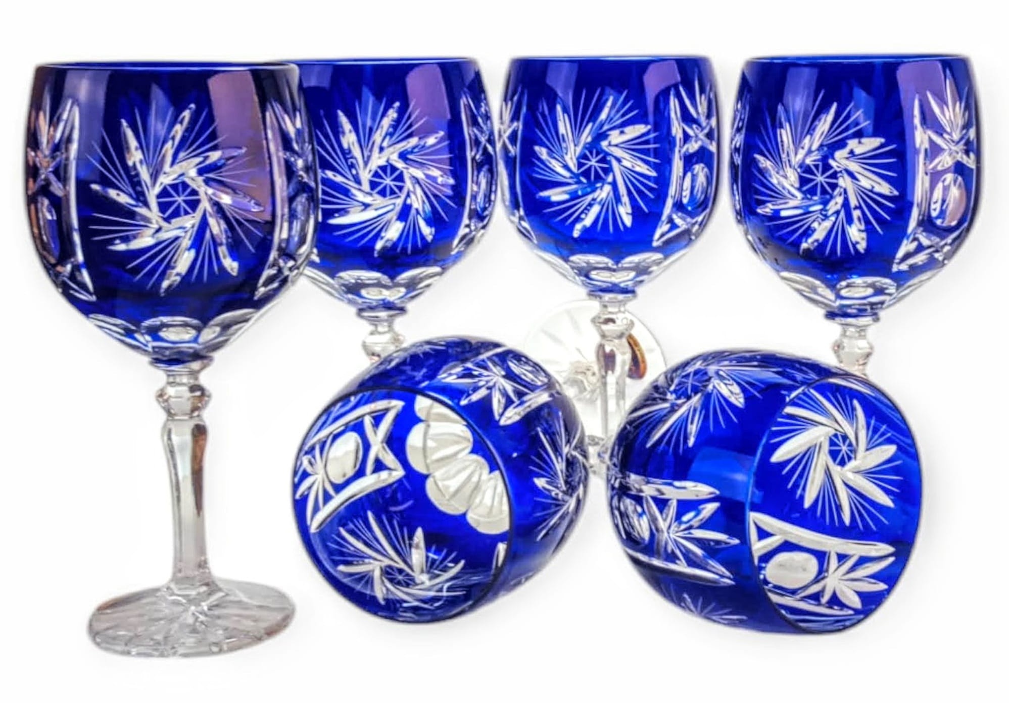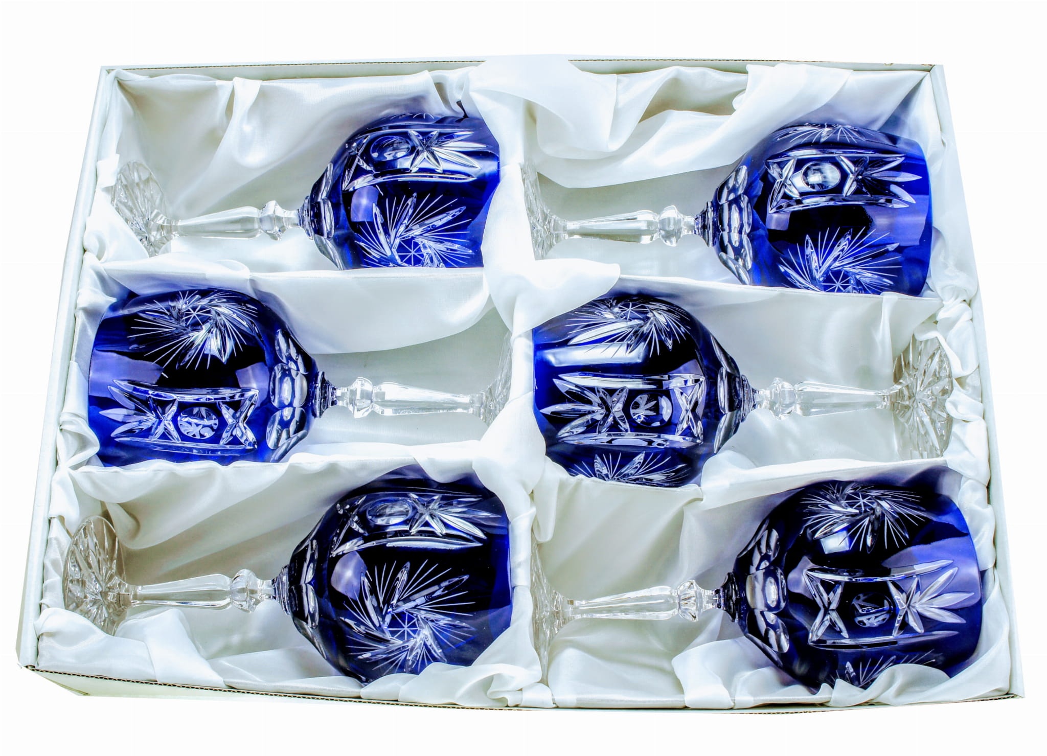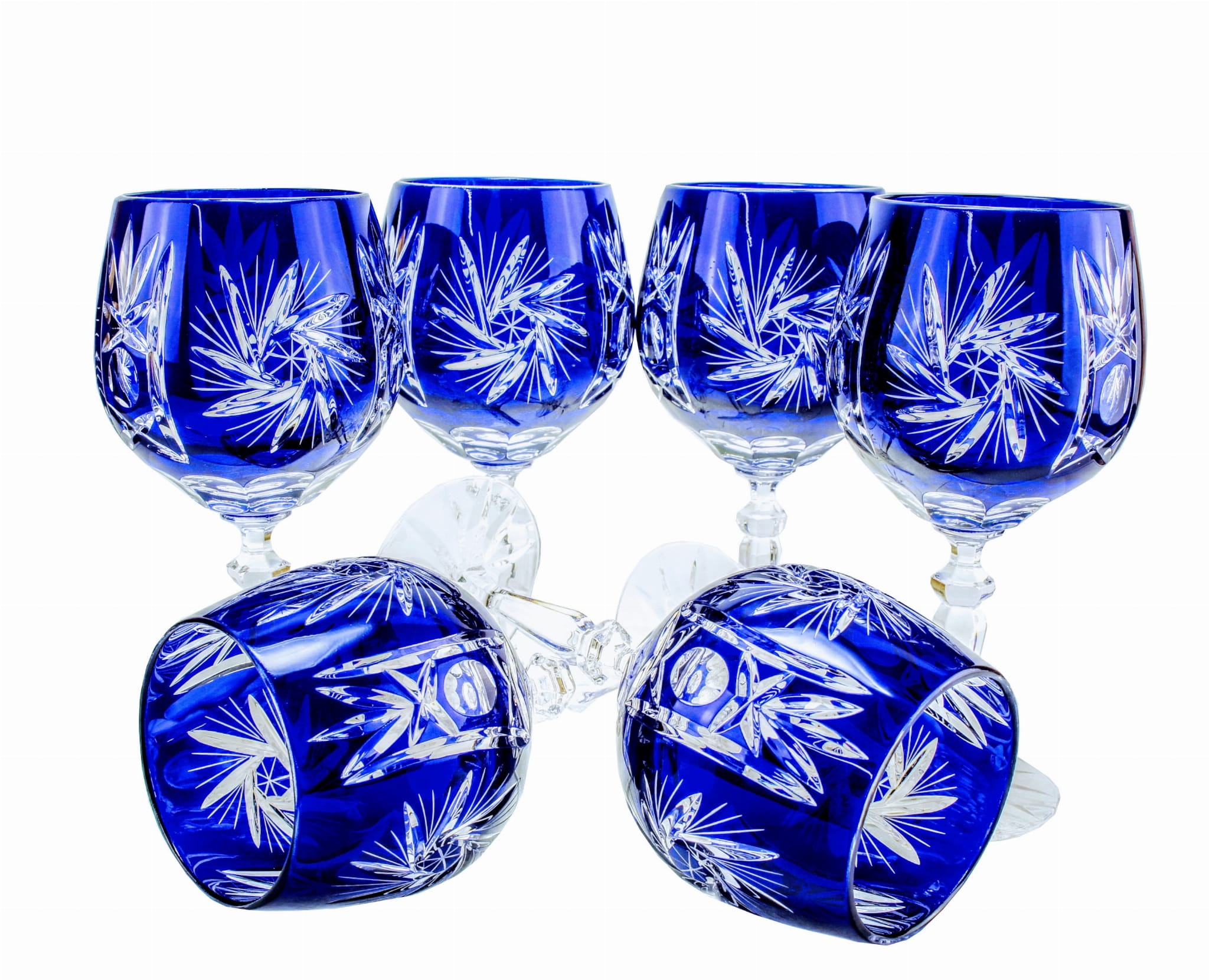 Kobaltowe kryształowe kieliszki do wina 280ml Młynek Oliwka 6 sztuk