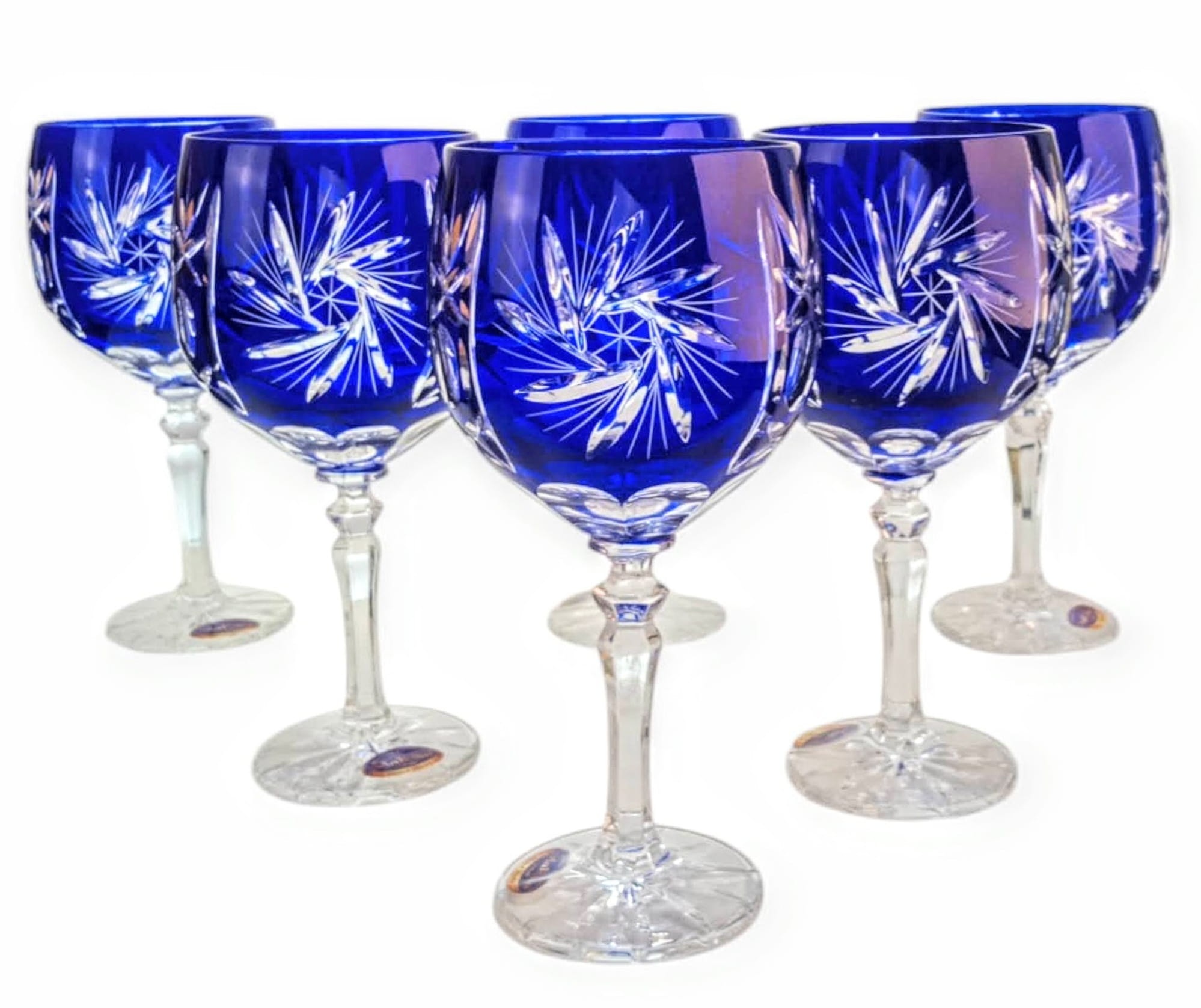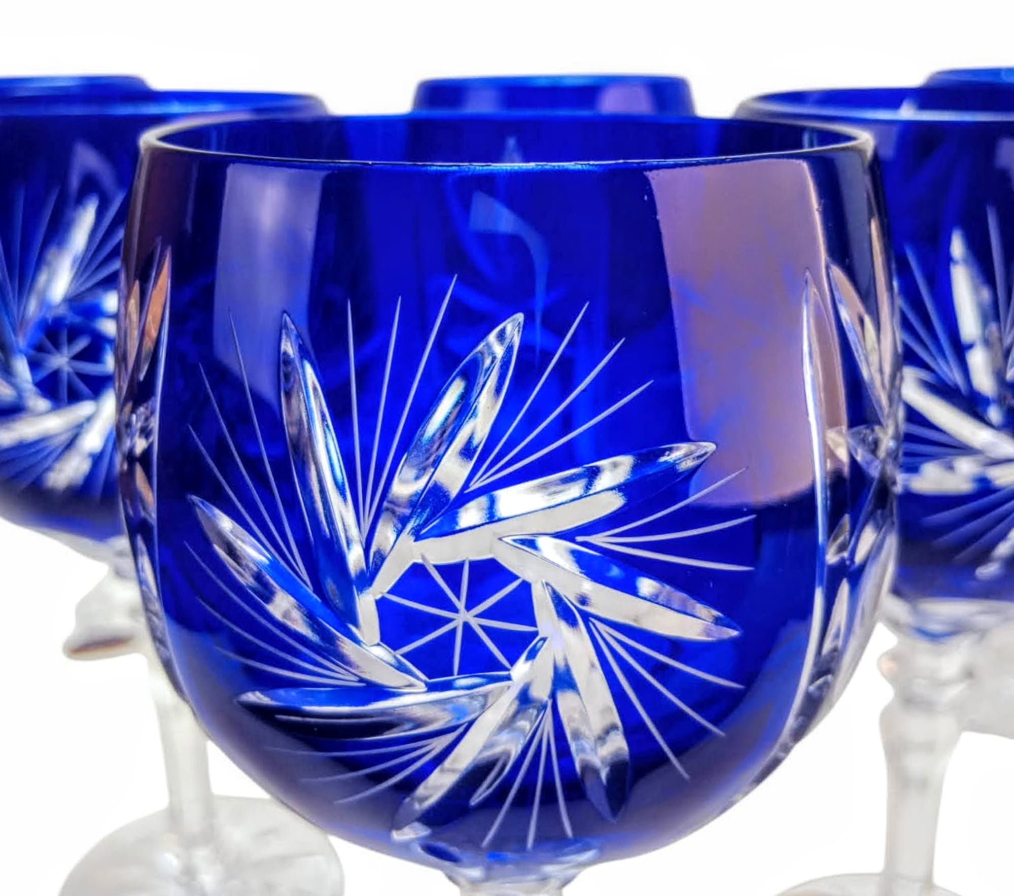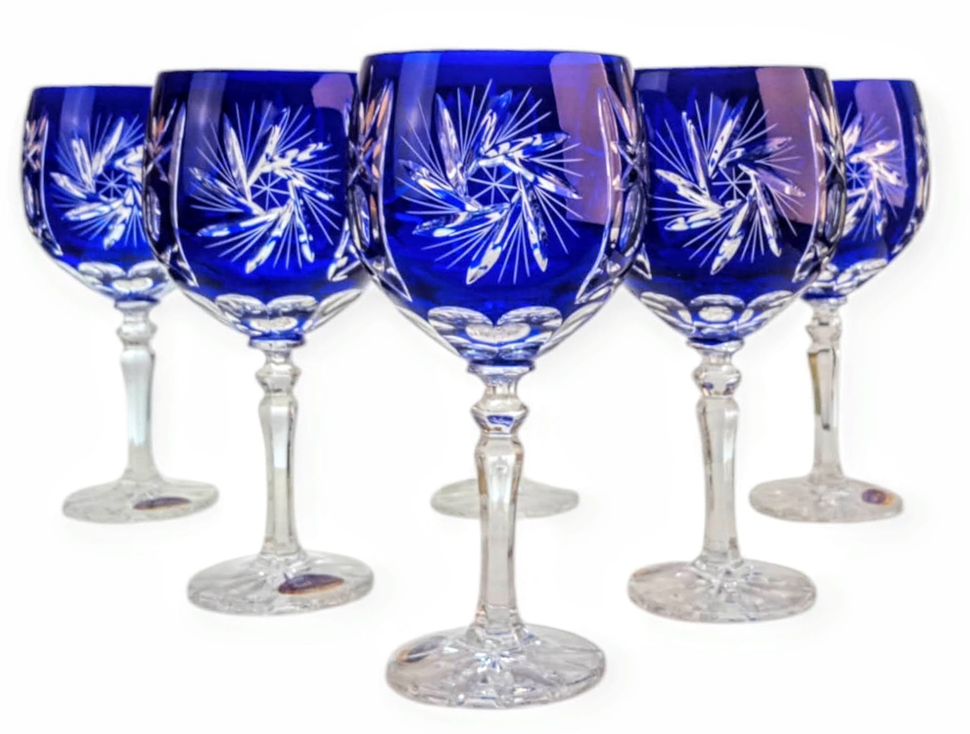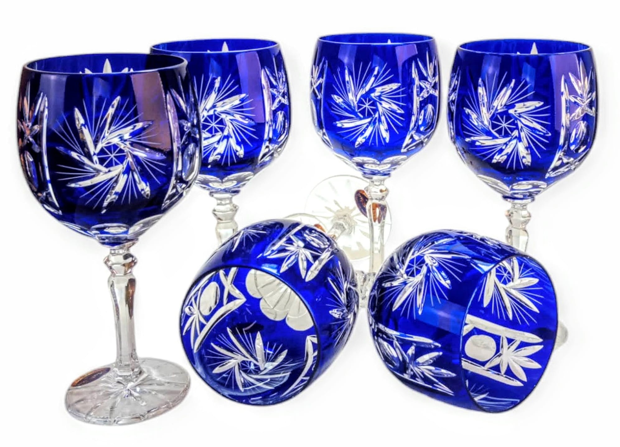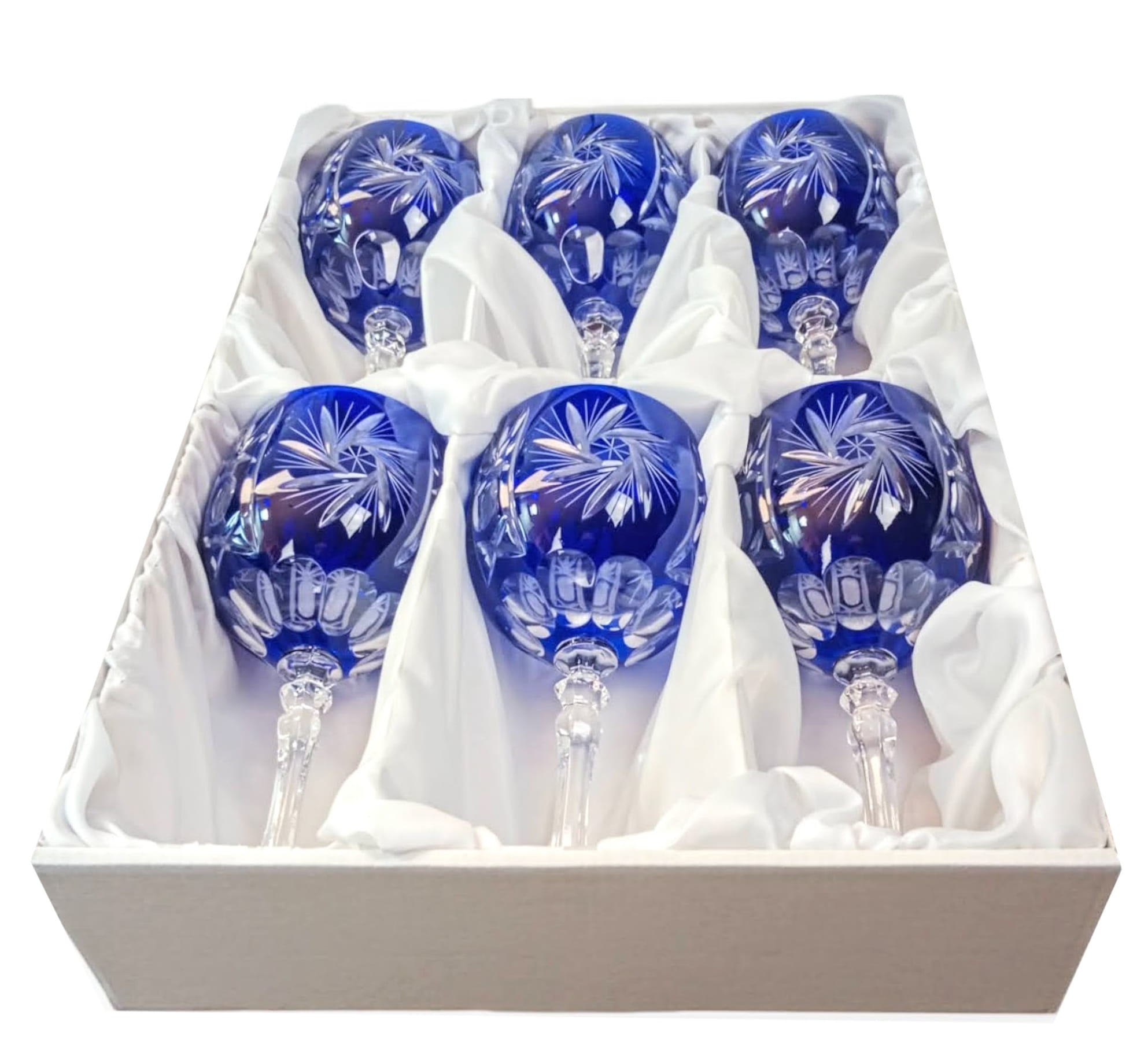 Kobaltowe kryształowe kieliszki do wina 280ml Młynek Oliwka 6 sztuk