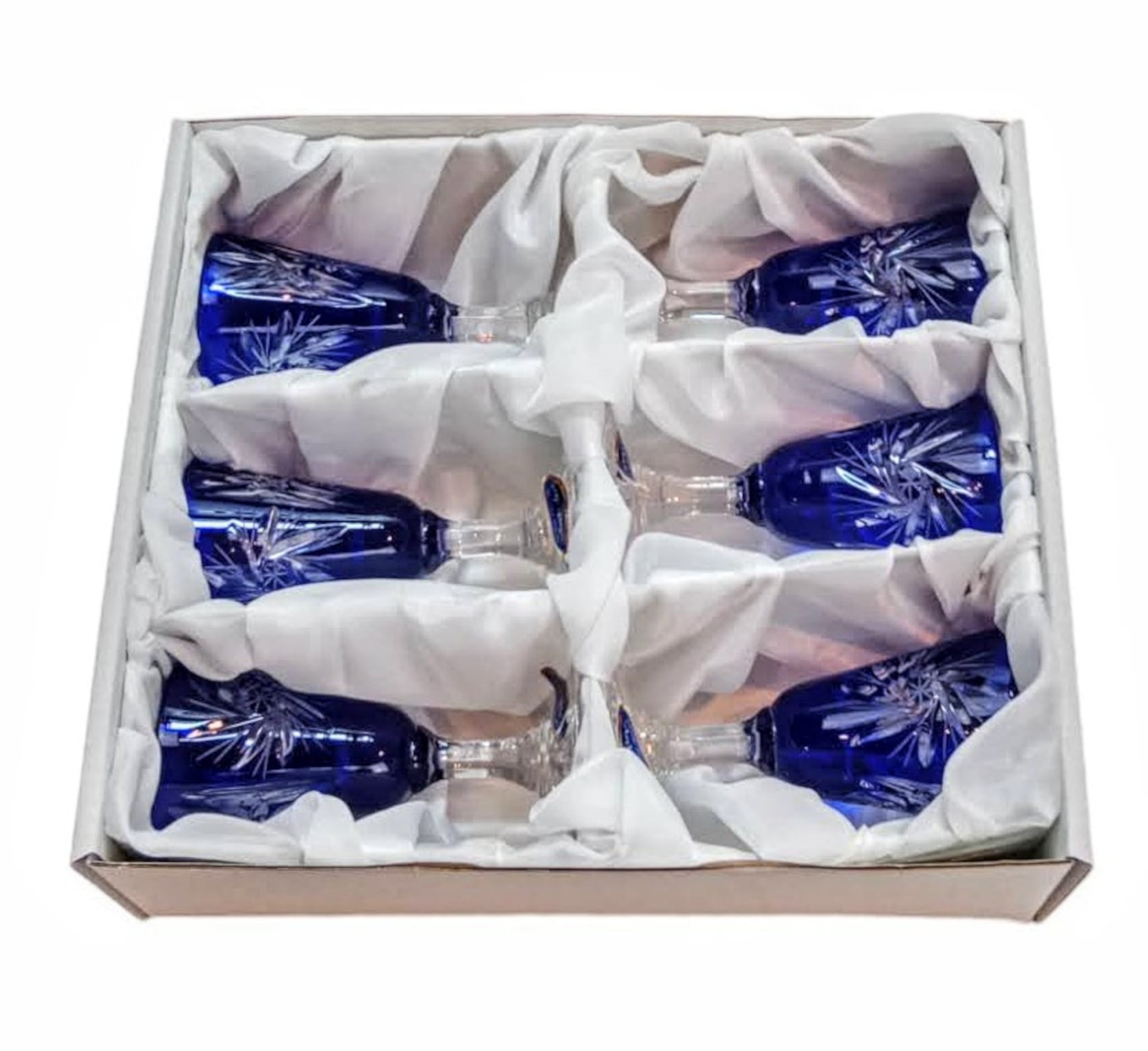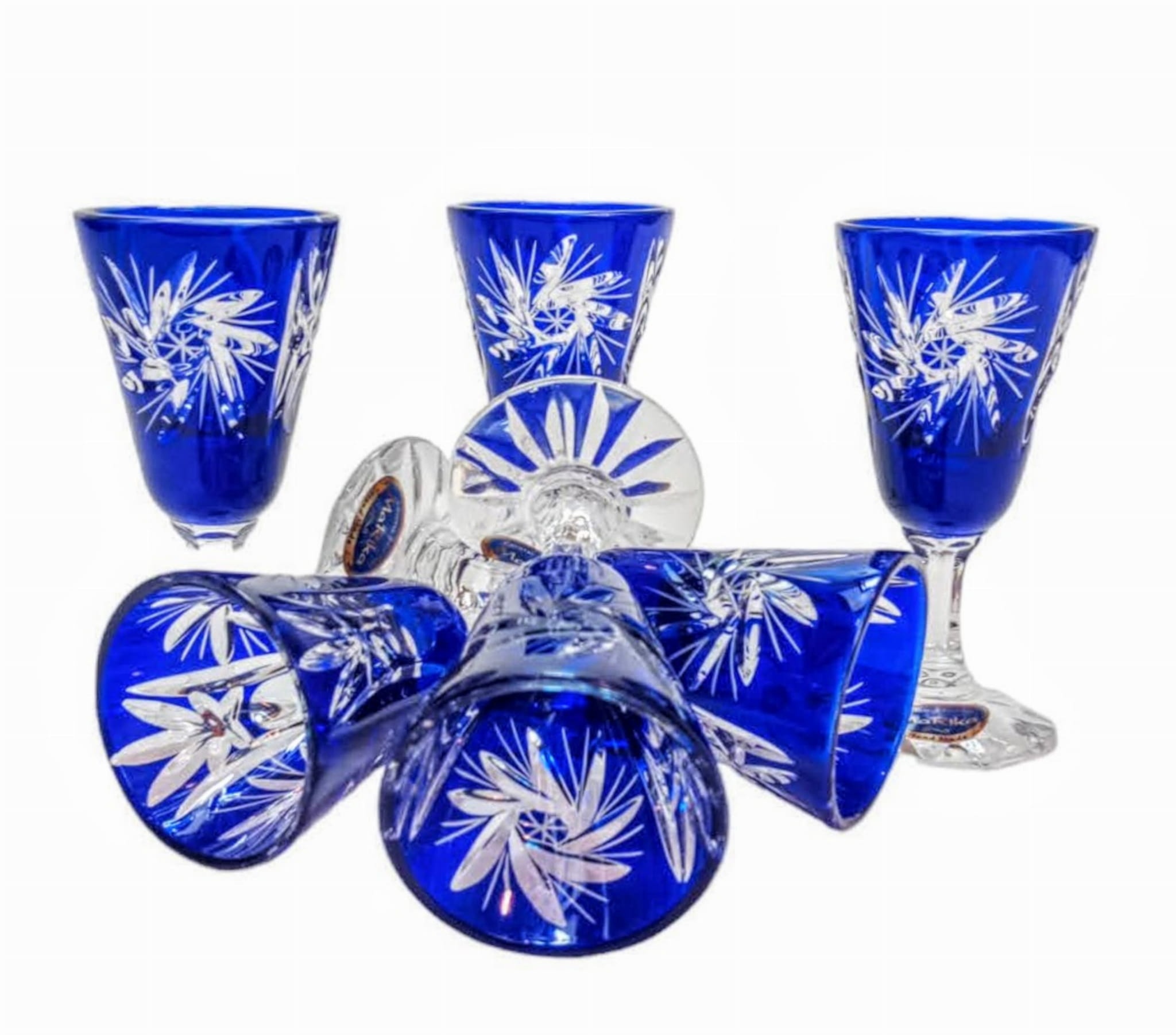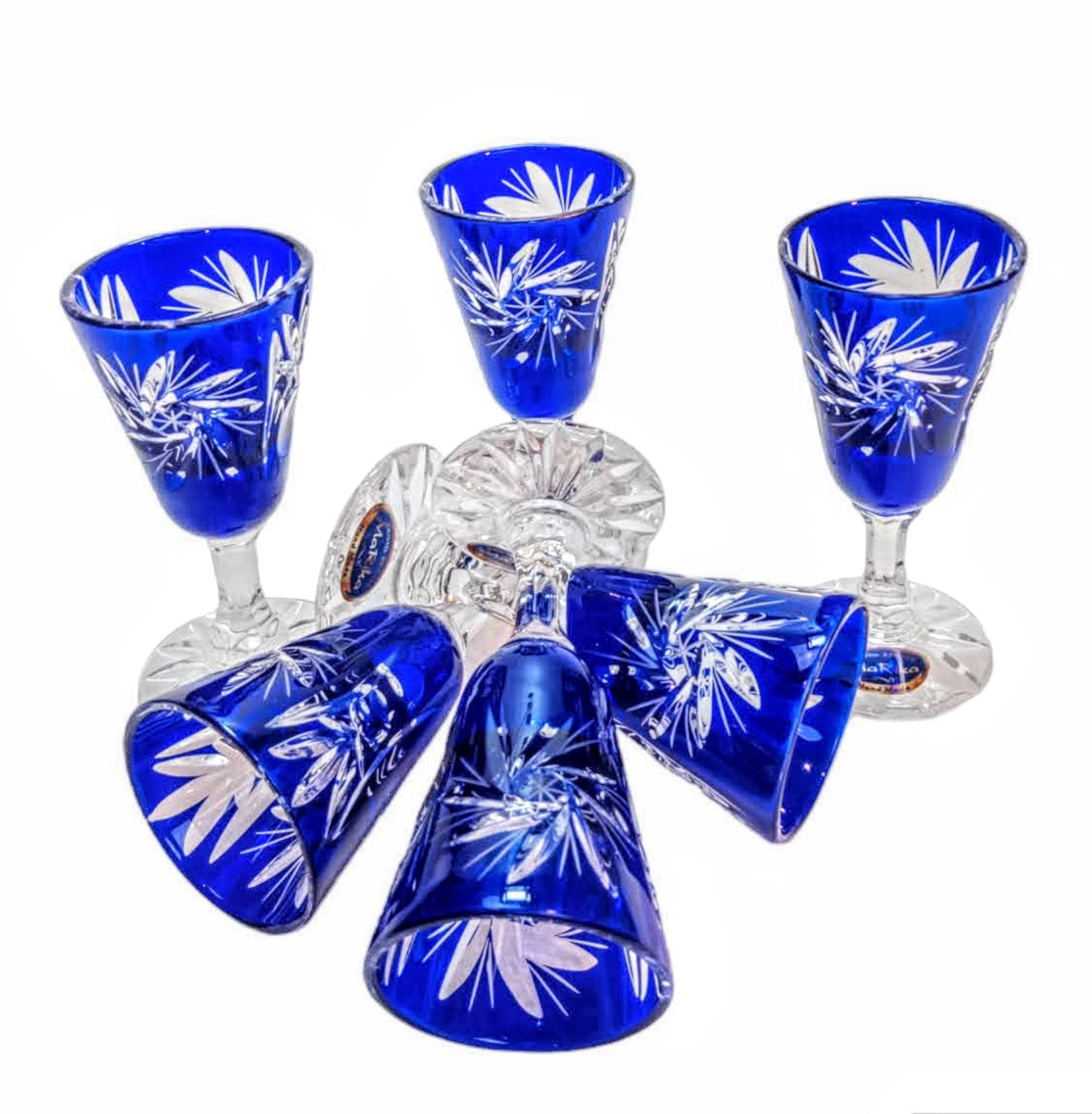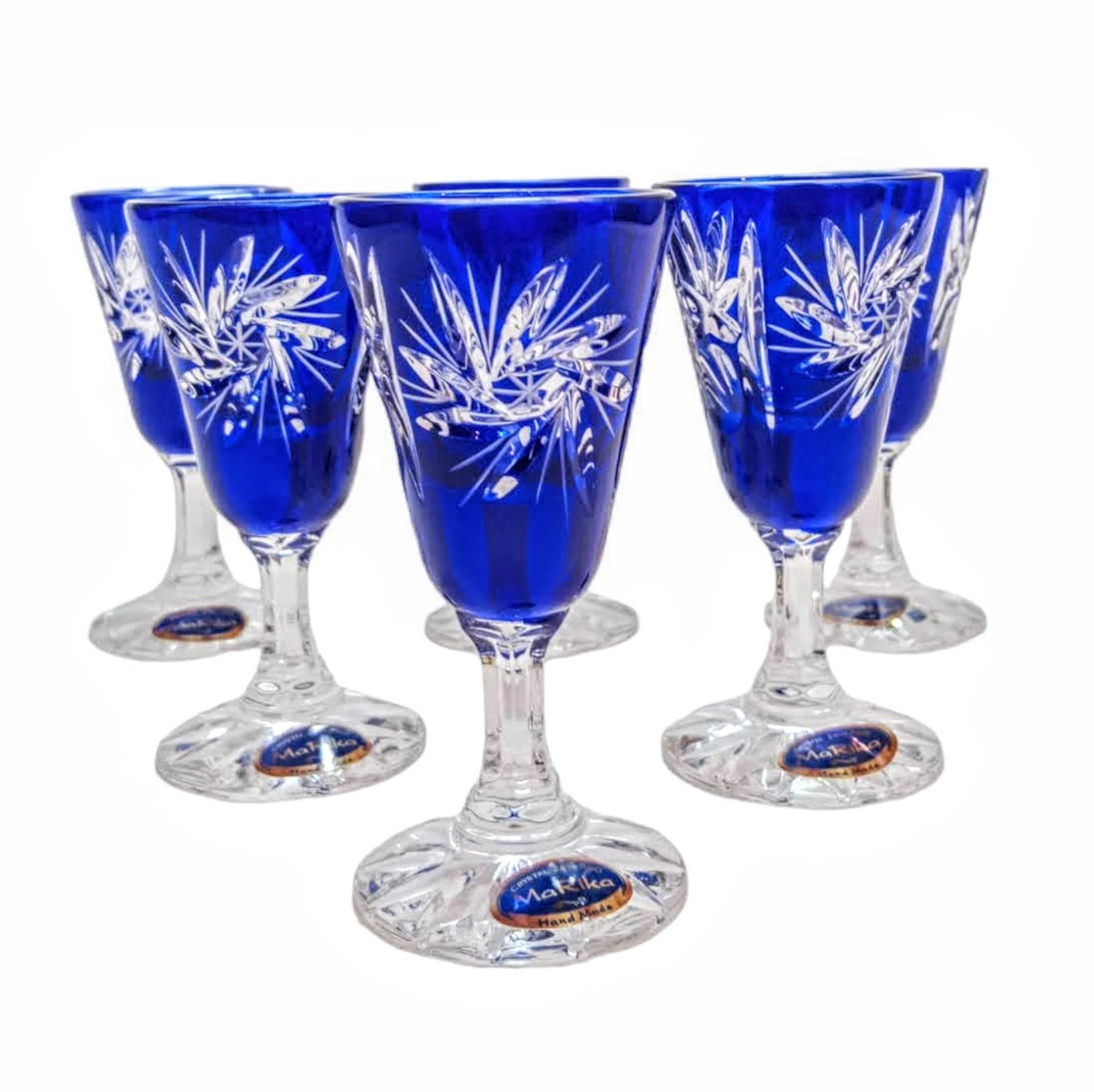 Kobaltowe kryształowe kieliszki do wódki Młynek Oliwka 30 ml 6 sztuk