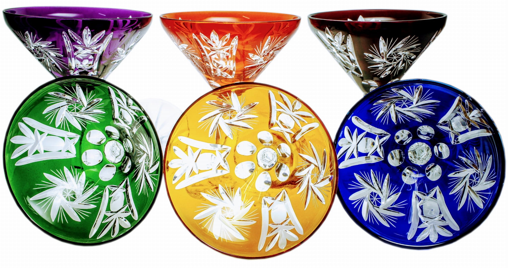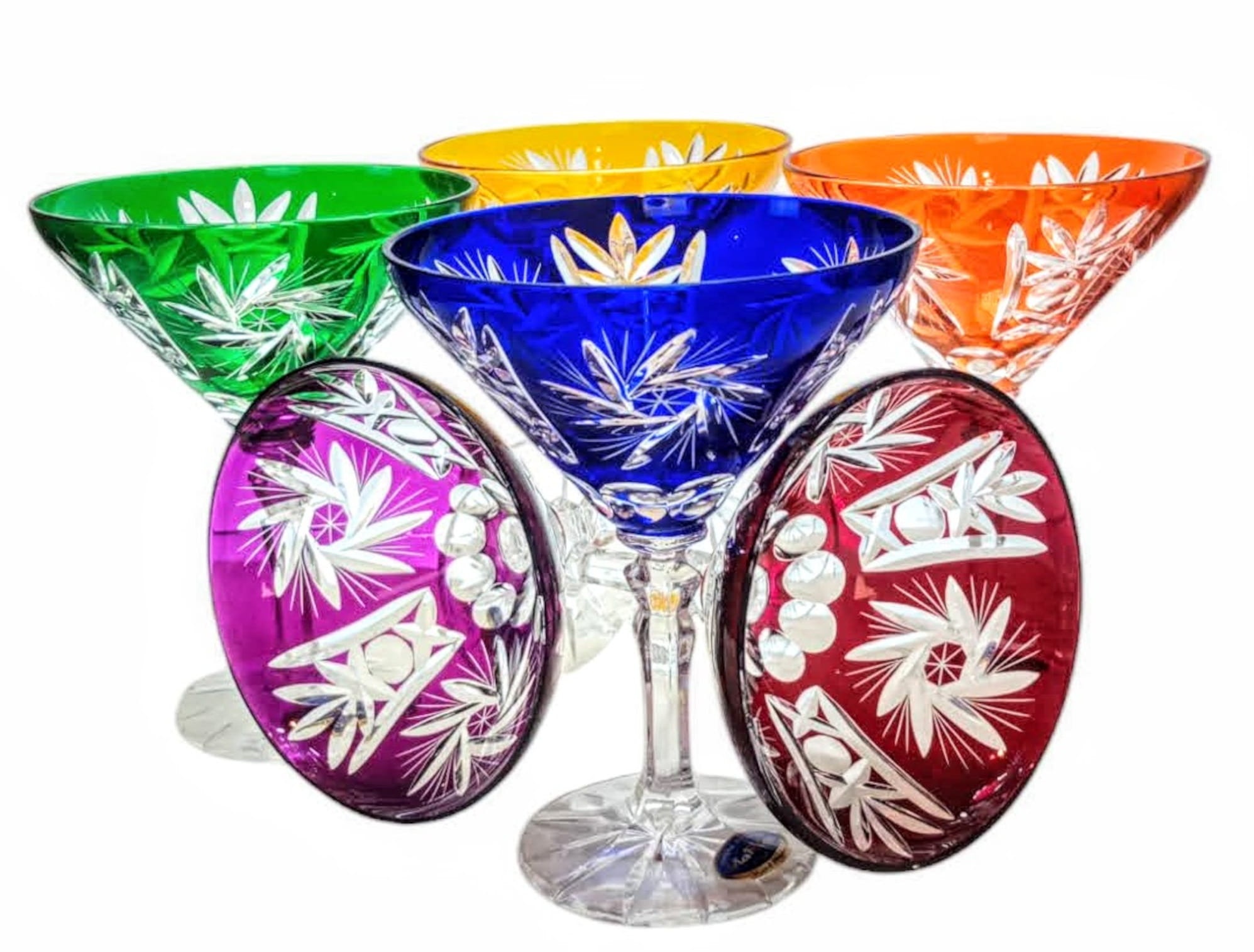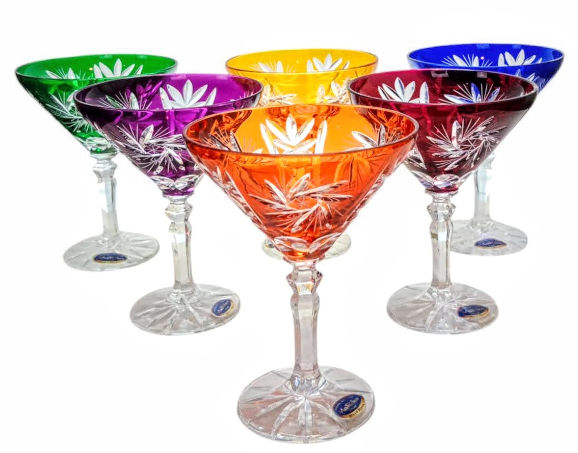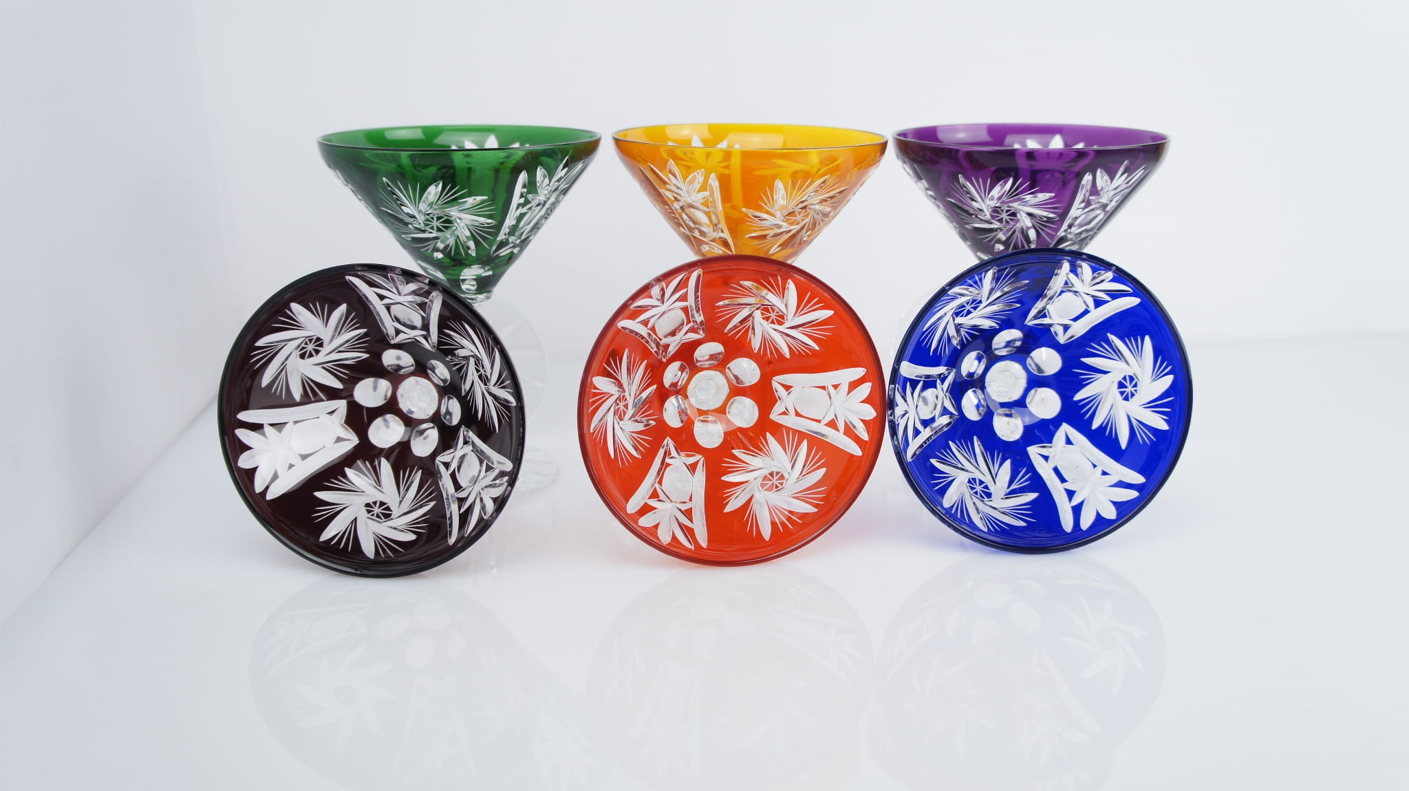 Kolorowe kryształowe kieliszki do Martini Młynek 6 sztuk