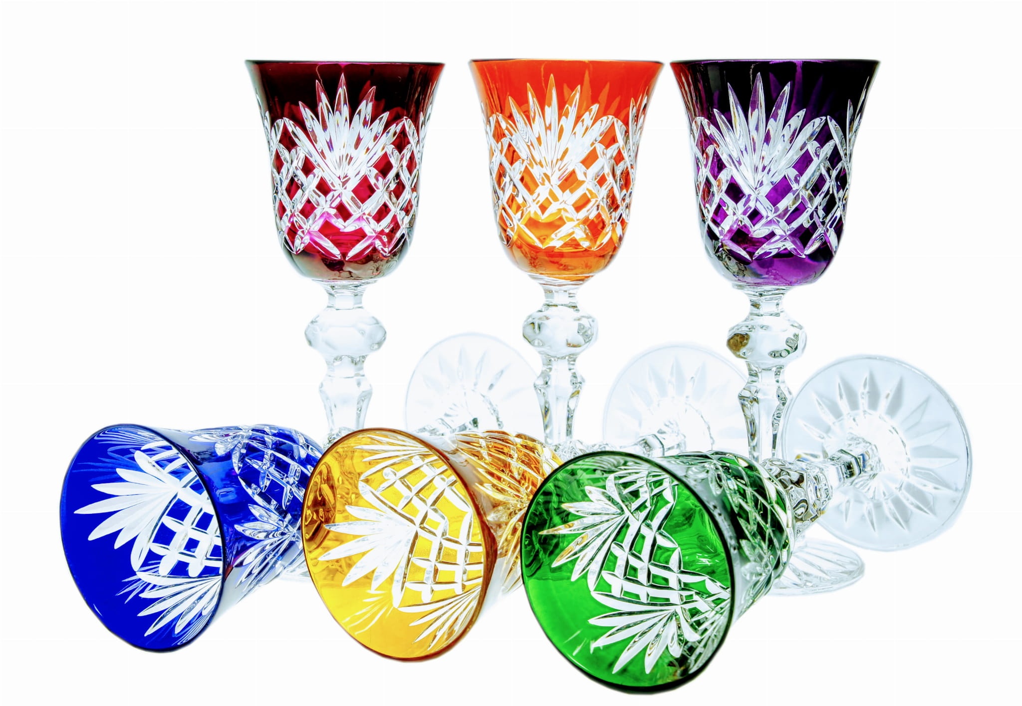 Kolorowe kryształowe kieliszki do likieru 60ml Ananas 6 sztuk