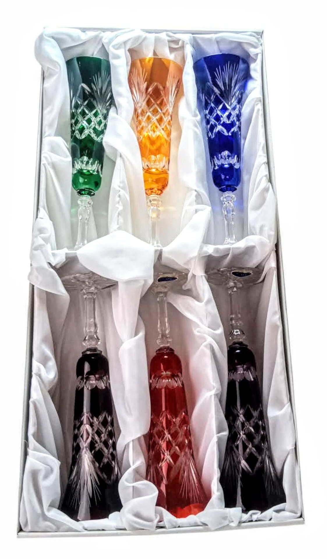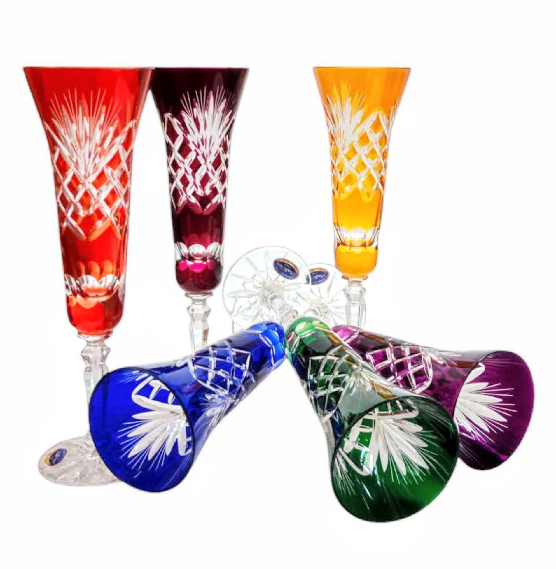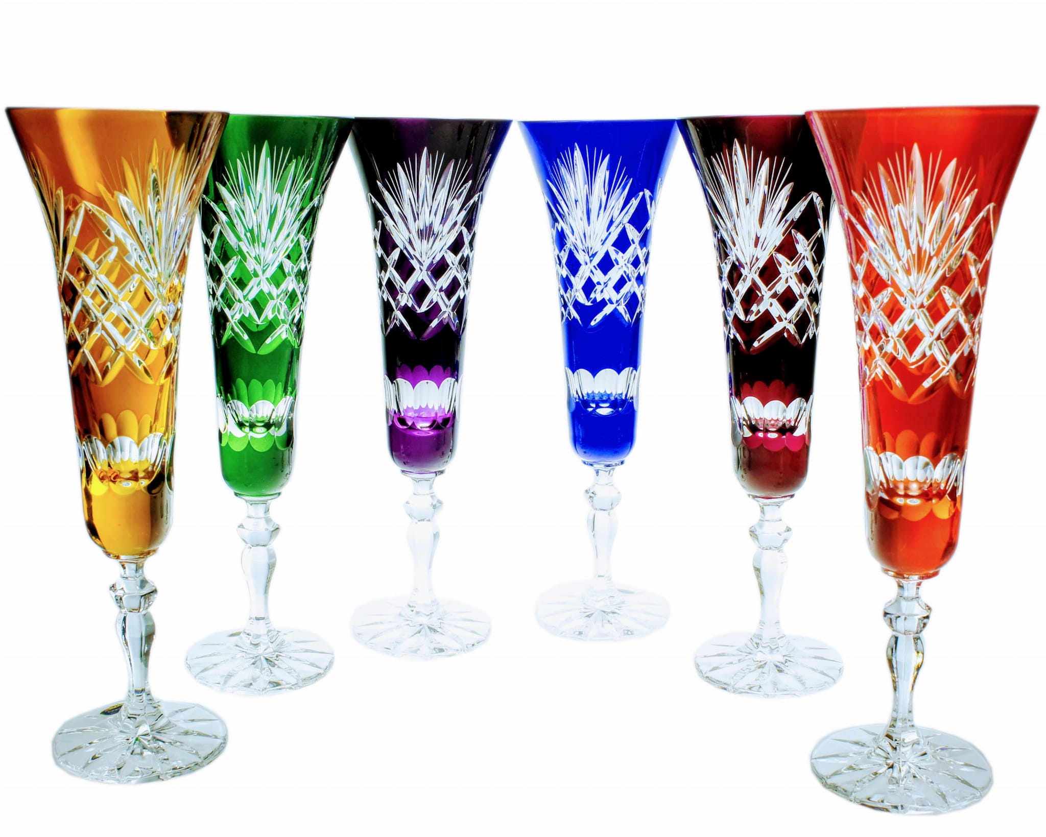Kolorowe kryształowe kieliszki do szampana 170ml Ananas 6 sztuk