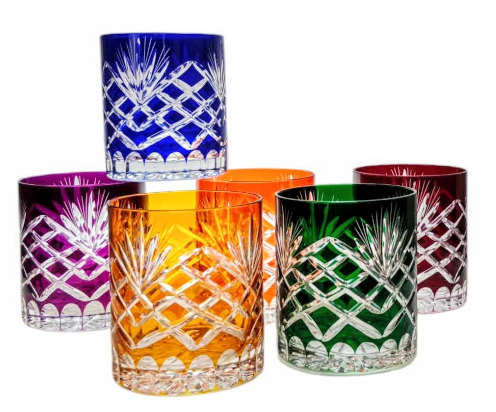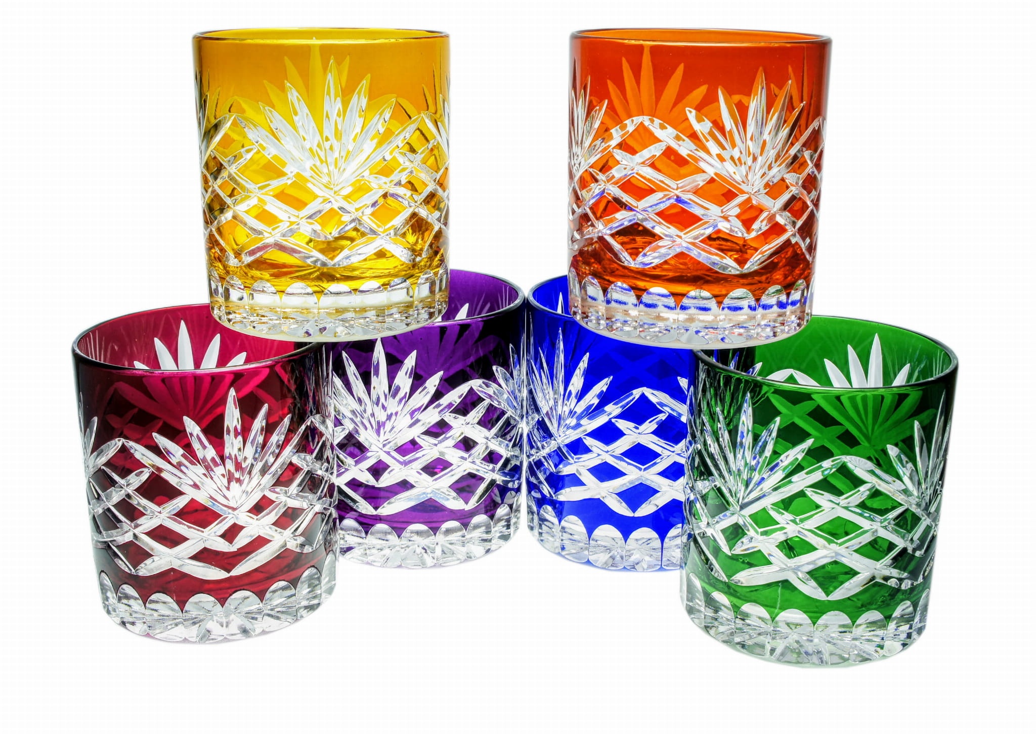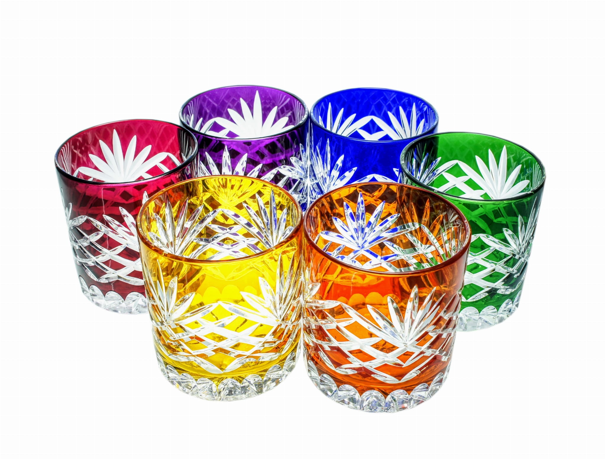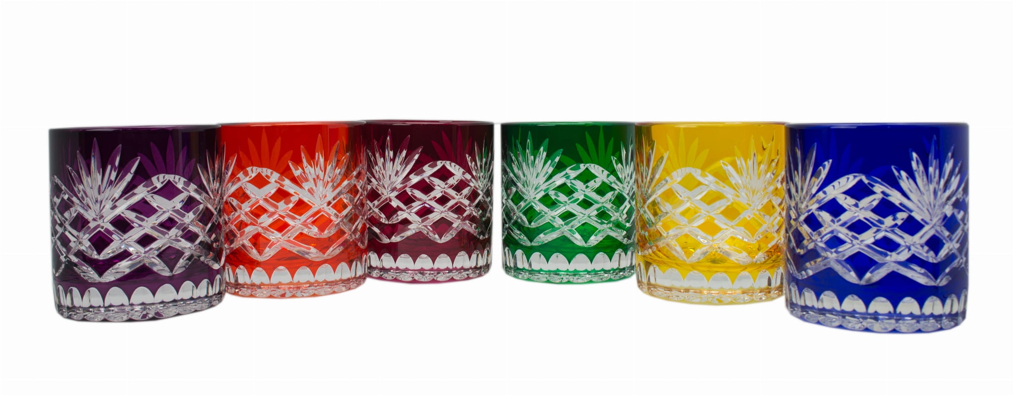 Kolorowe kryształowe szklanki do whisky 280ml Ananas 6 sztuk