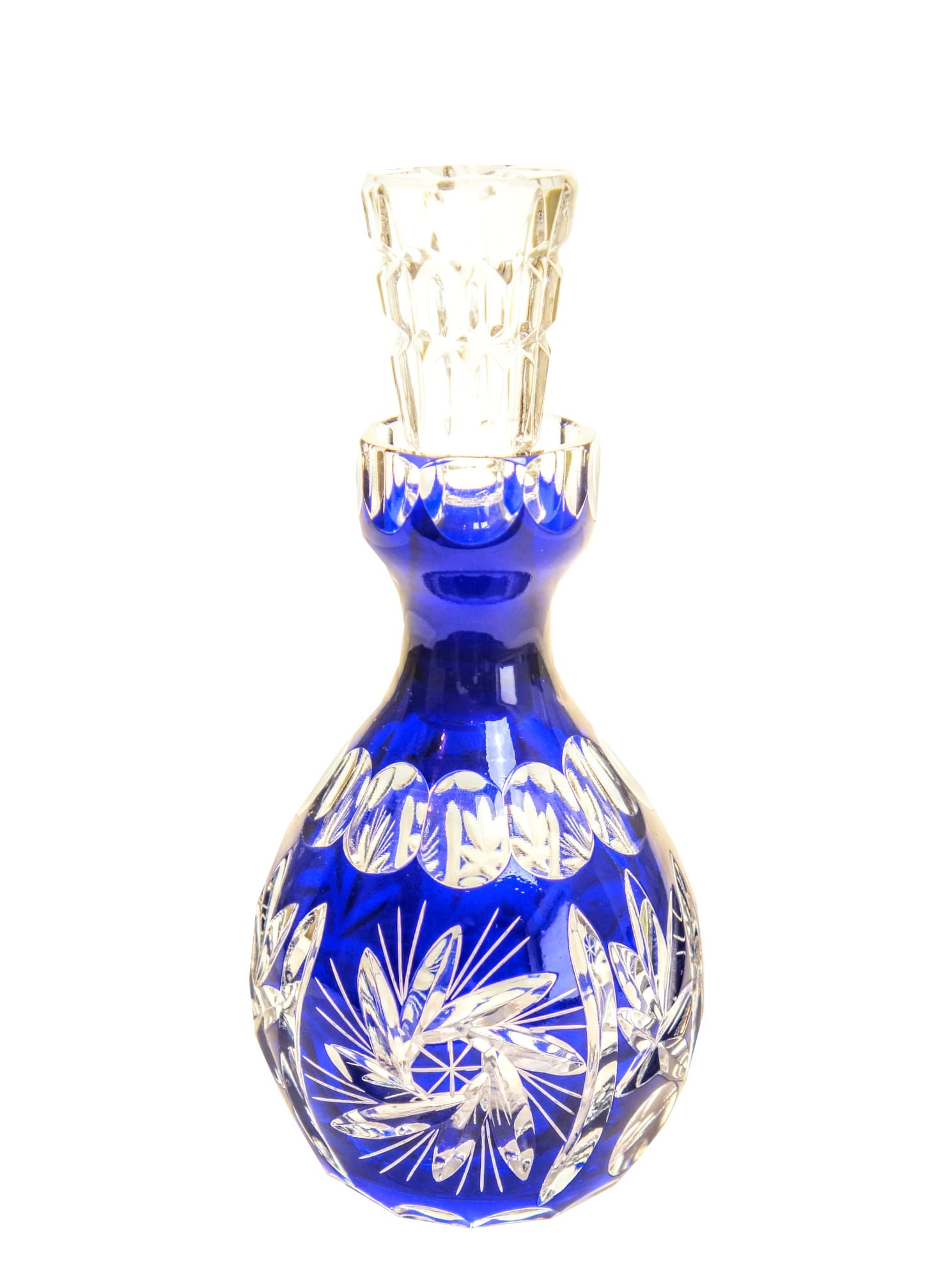 Kryształowa kobaltowa karafka na perfumy Młynek Oliwka
