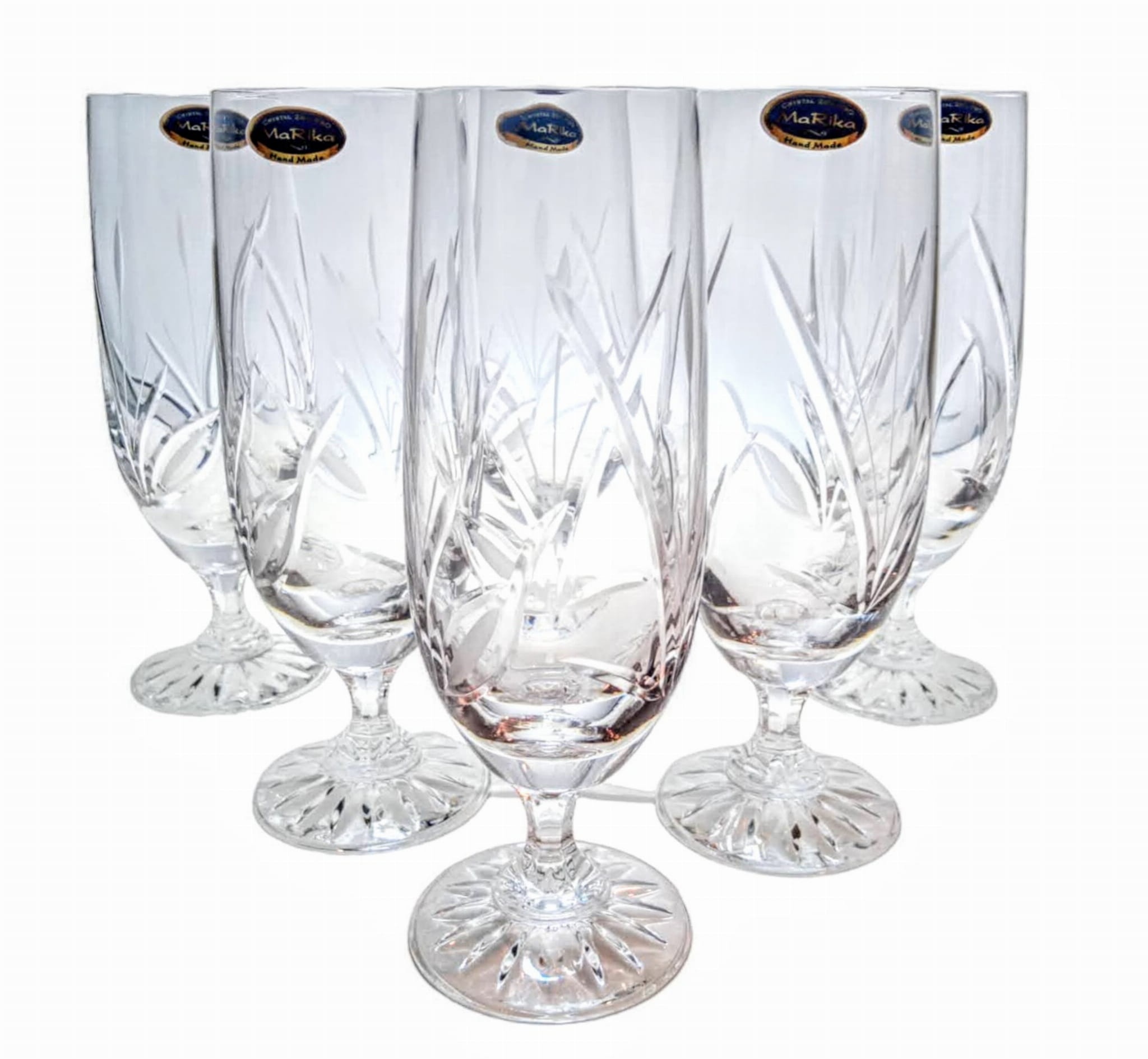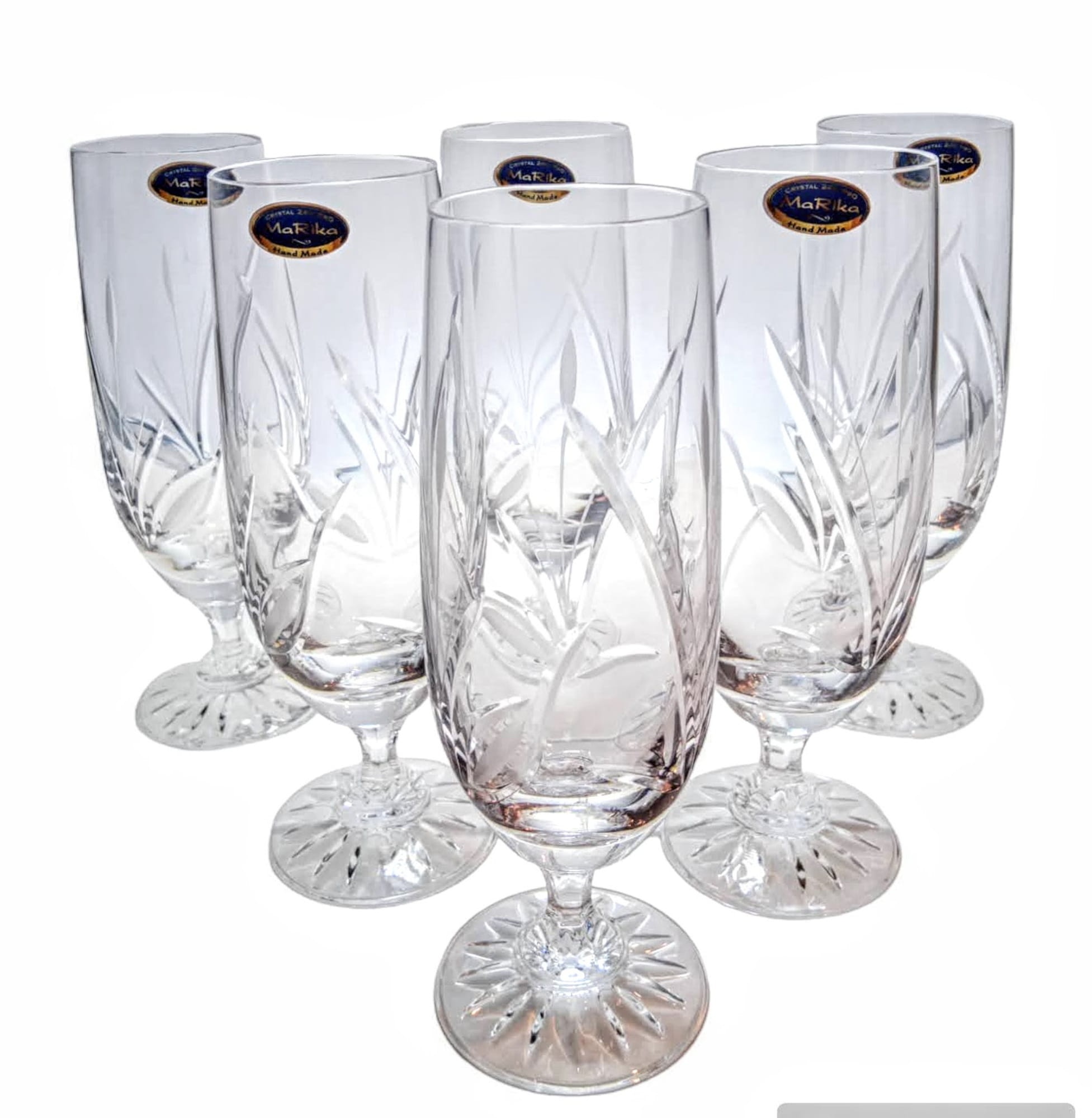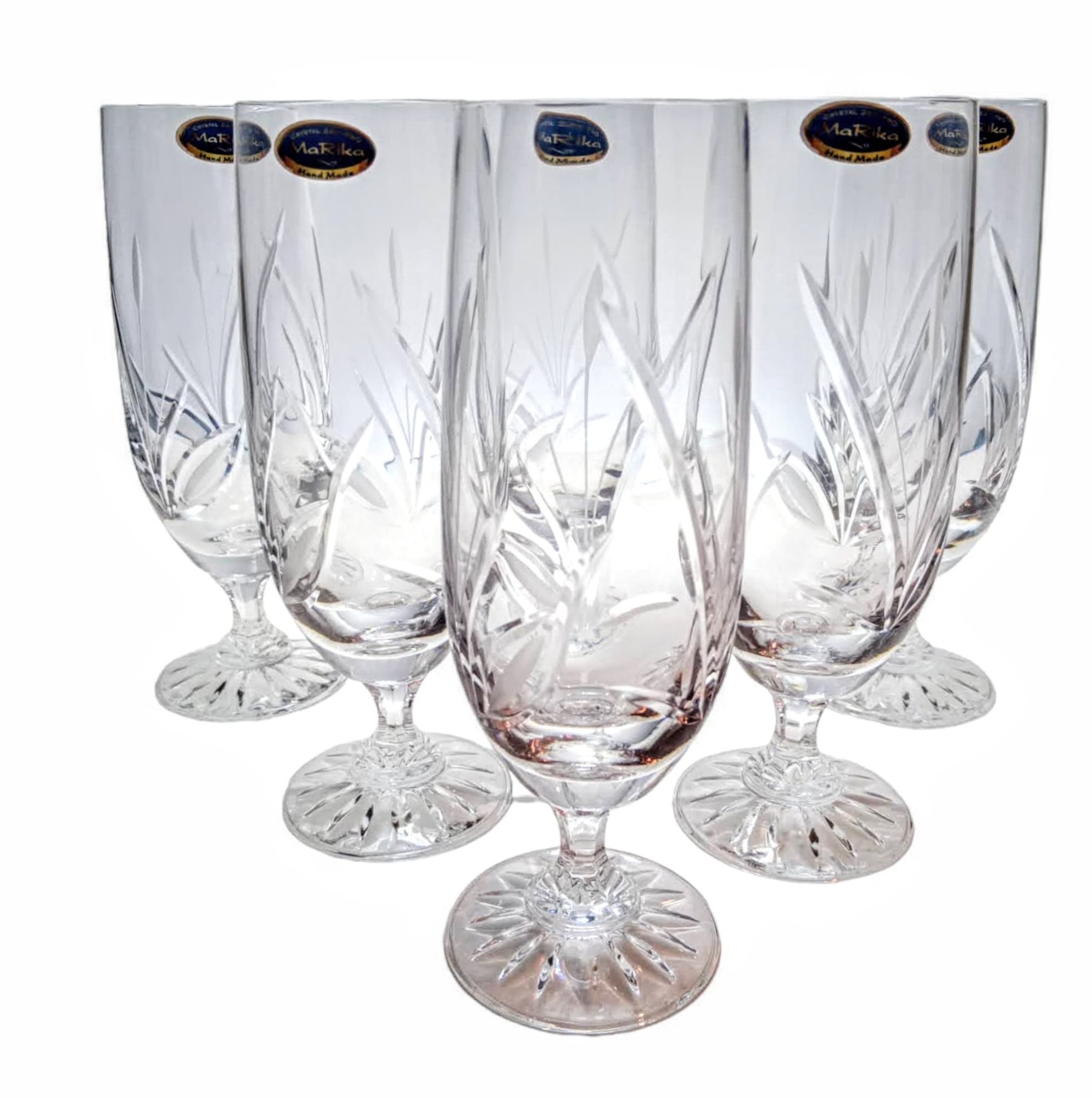 Kryształowe kieliszki do piwa z kolekcji Mrożony Listek to delikatne i eleganckie pokale,