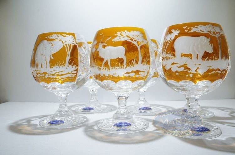 Kryształowe kieliszki do koniaku z wygrawerowanym motywem safari 250ml