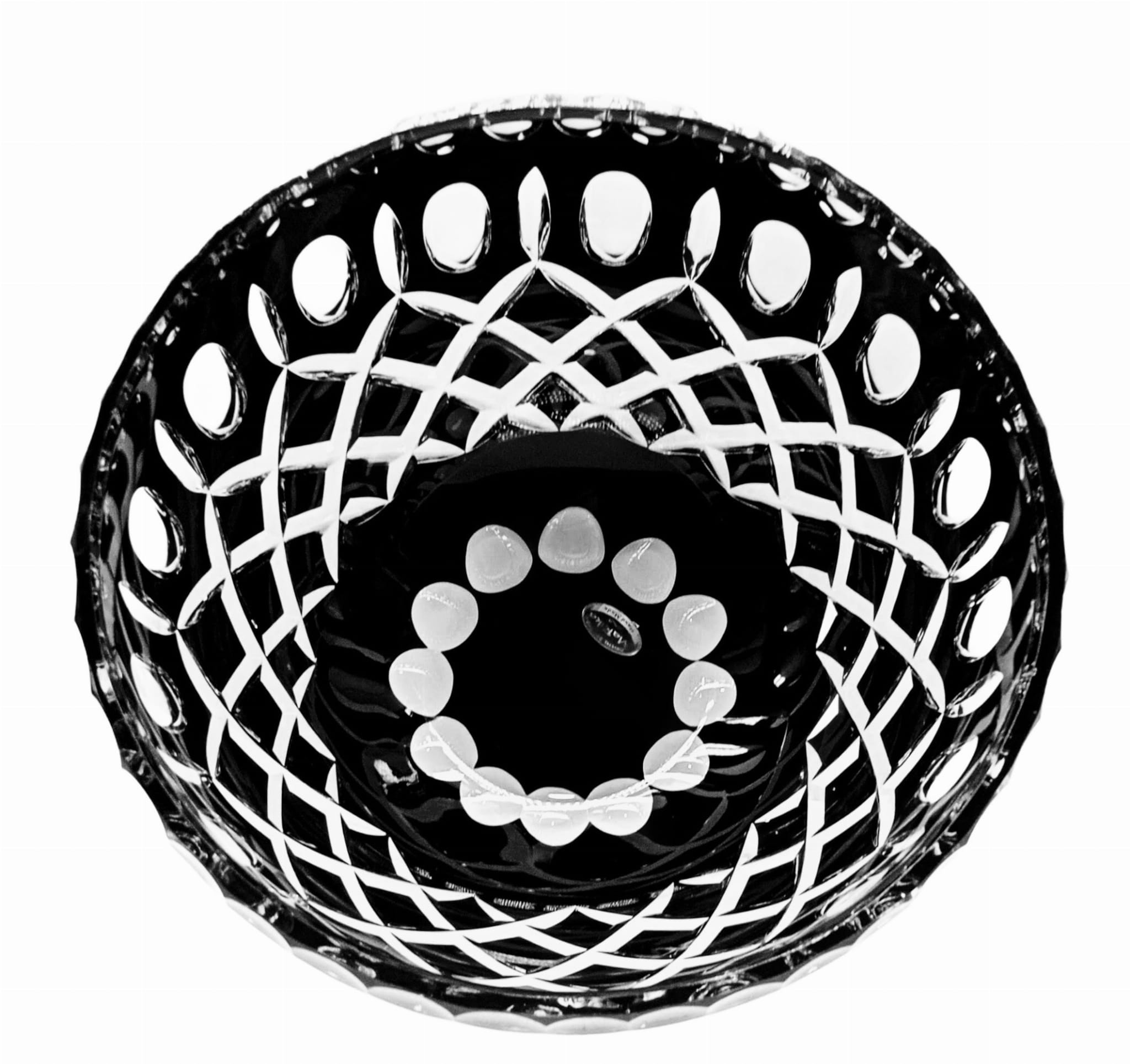 MaRika crystal Czarna kryształowa misa na owoce 20 cm Krata Oliwka