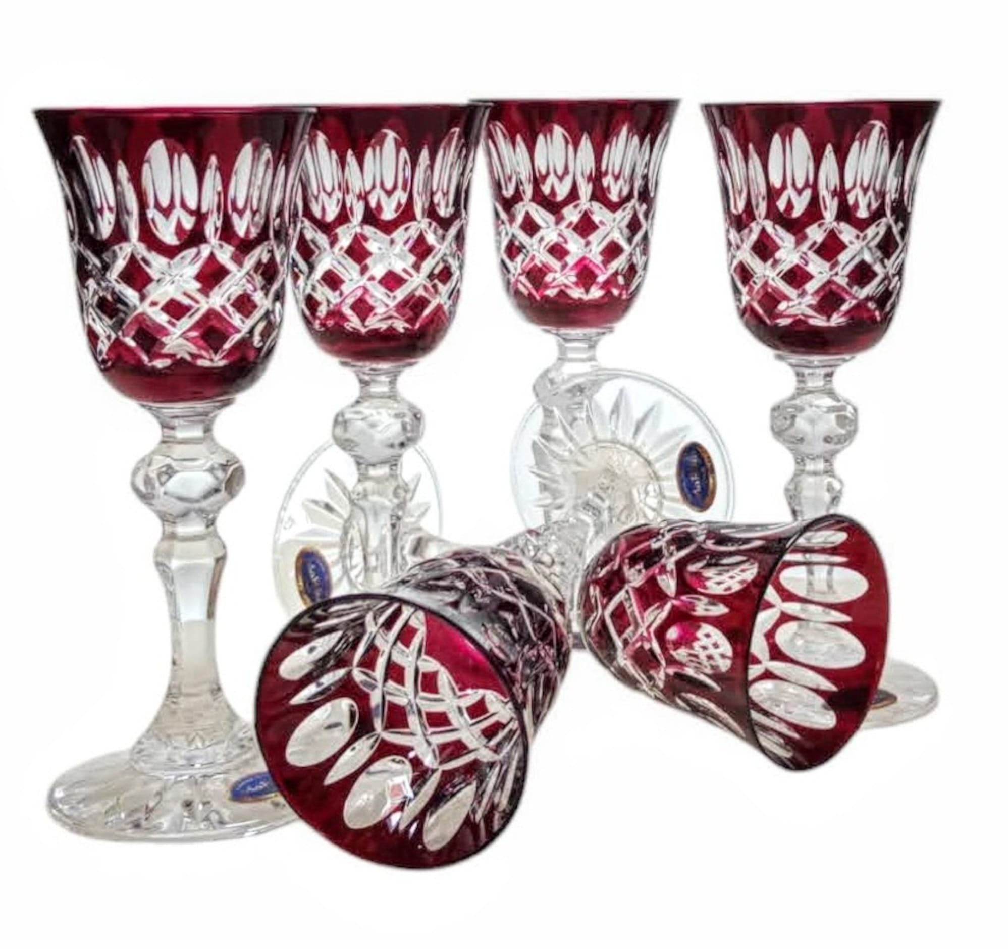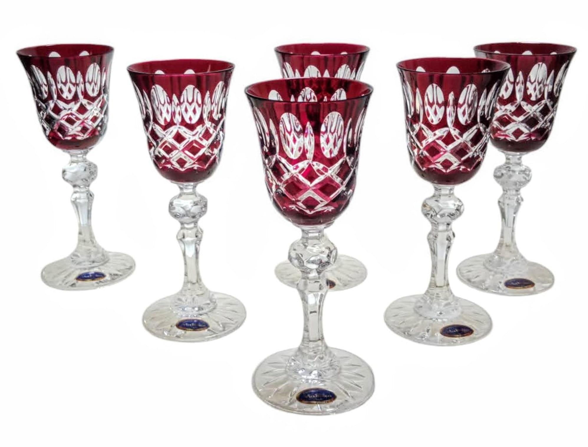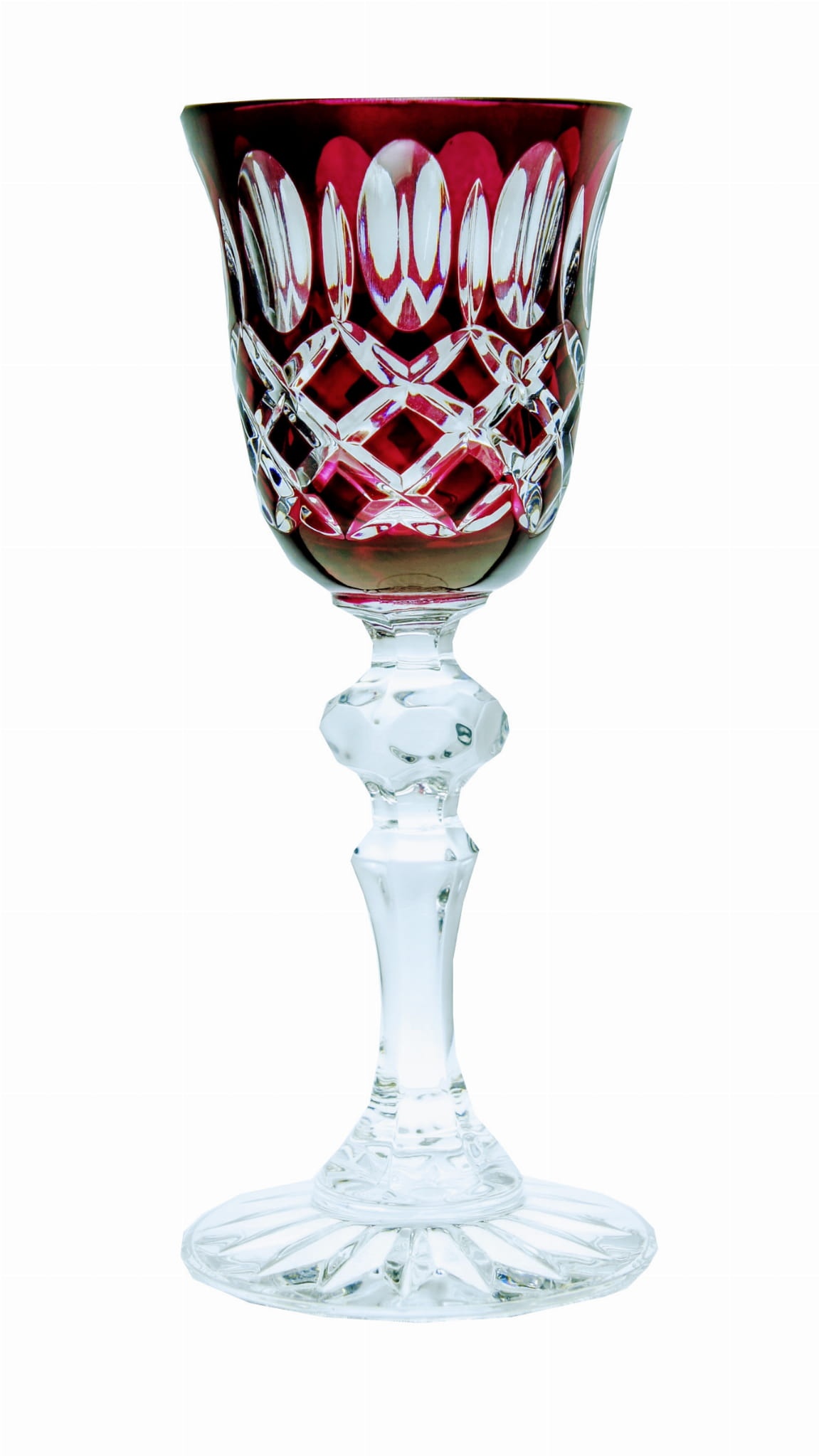 Rubinowe kryształowe kieliszki do likieru 60ml Krata Oliwka 6 sztuk