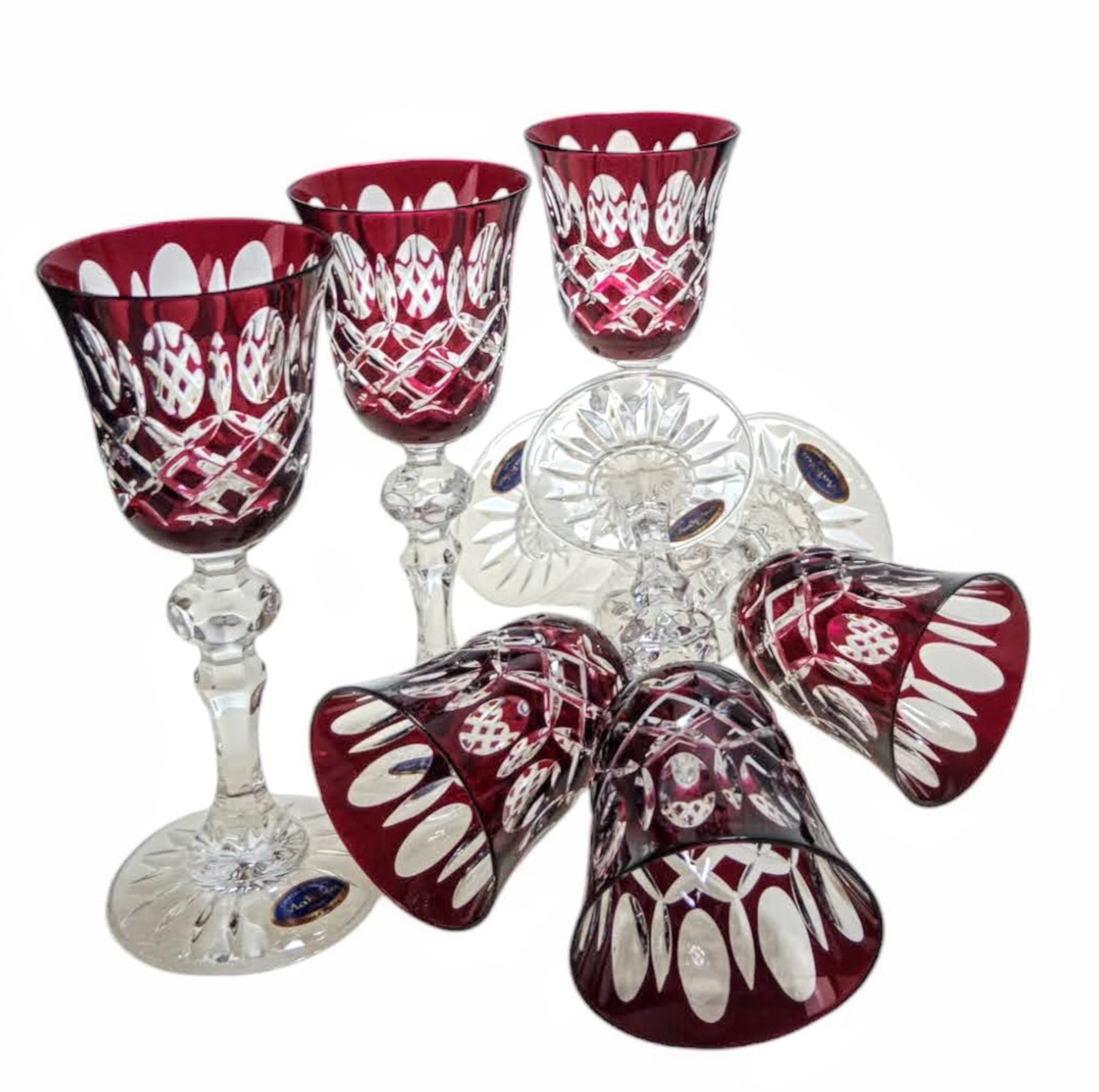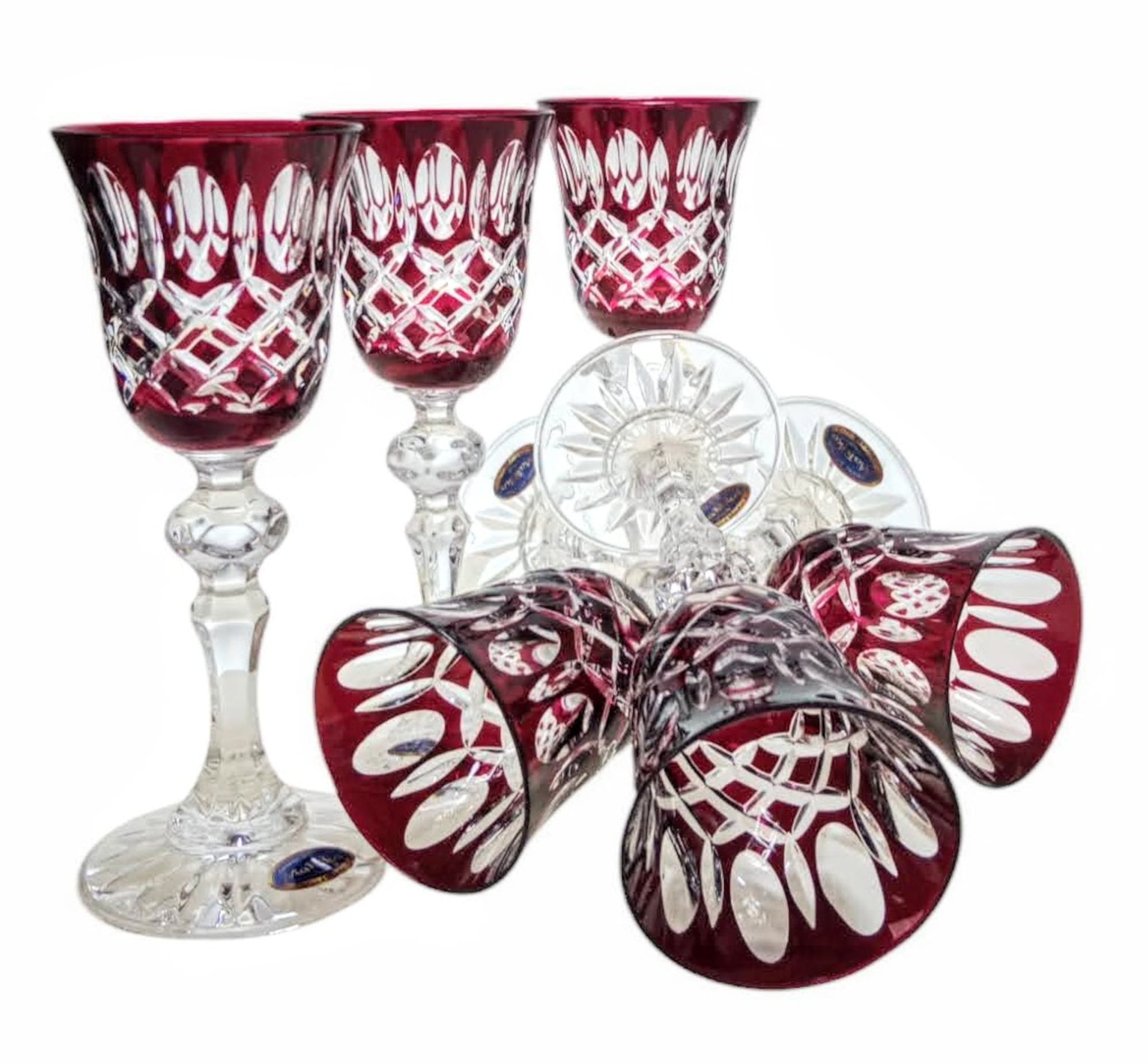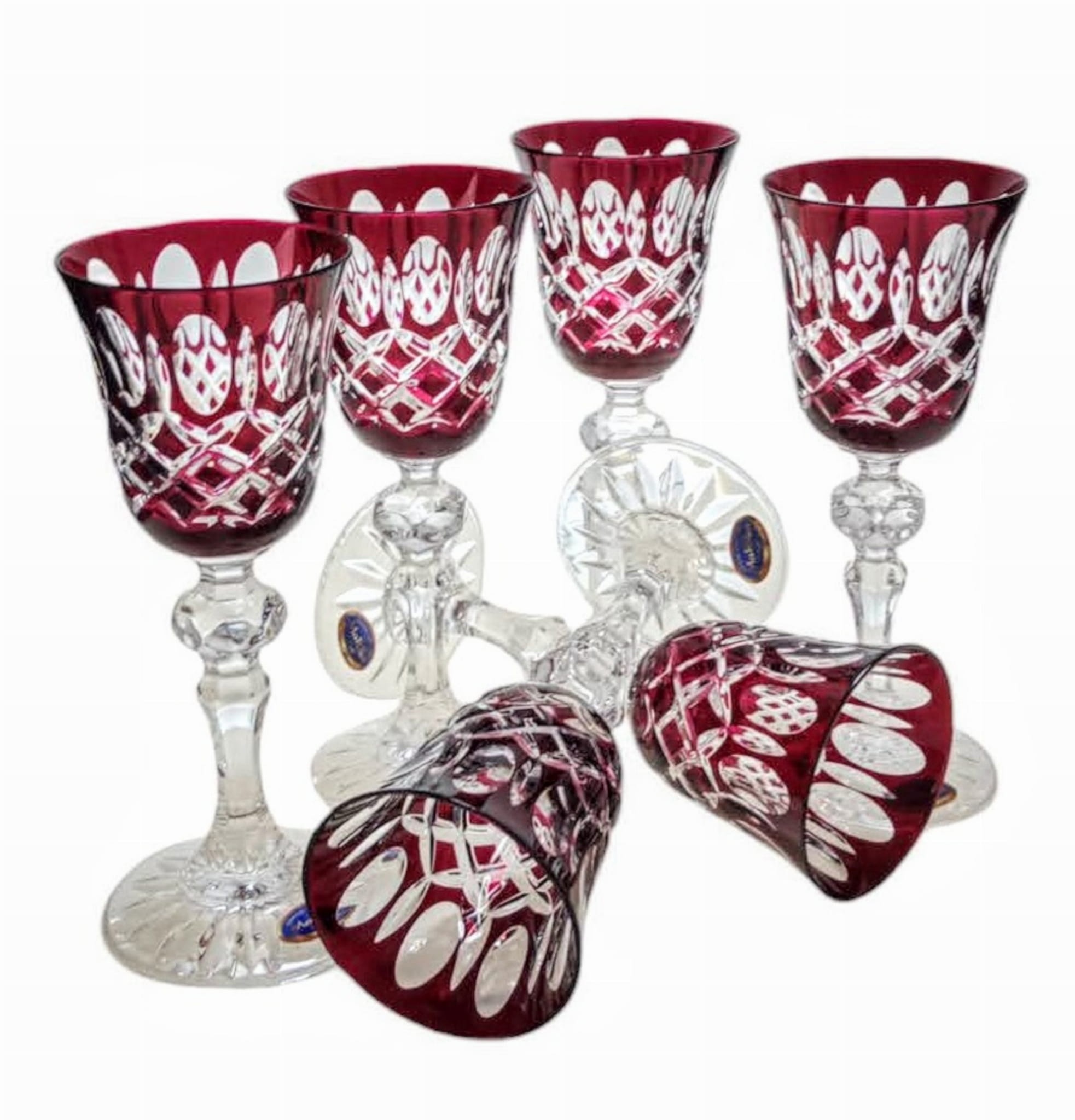 Rubinowe kryształowe kieliszki do likieru 60ml Krata Oliwka 6 sztuk
