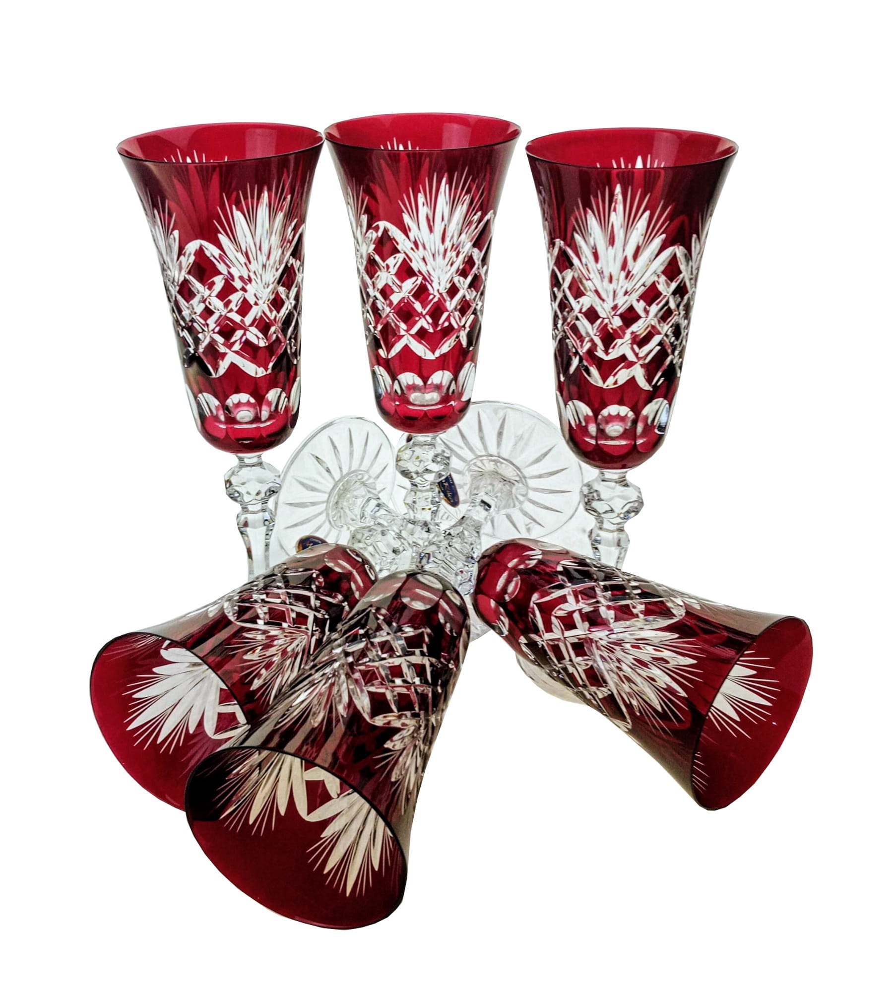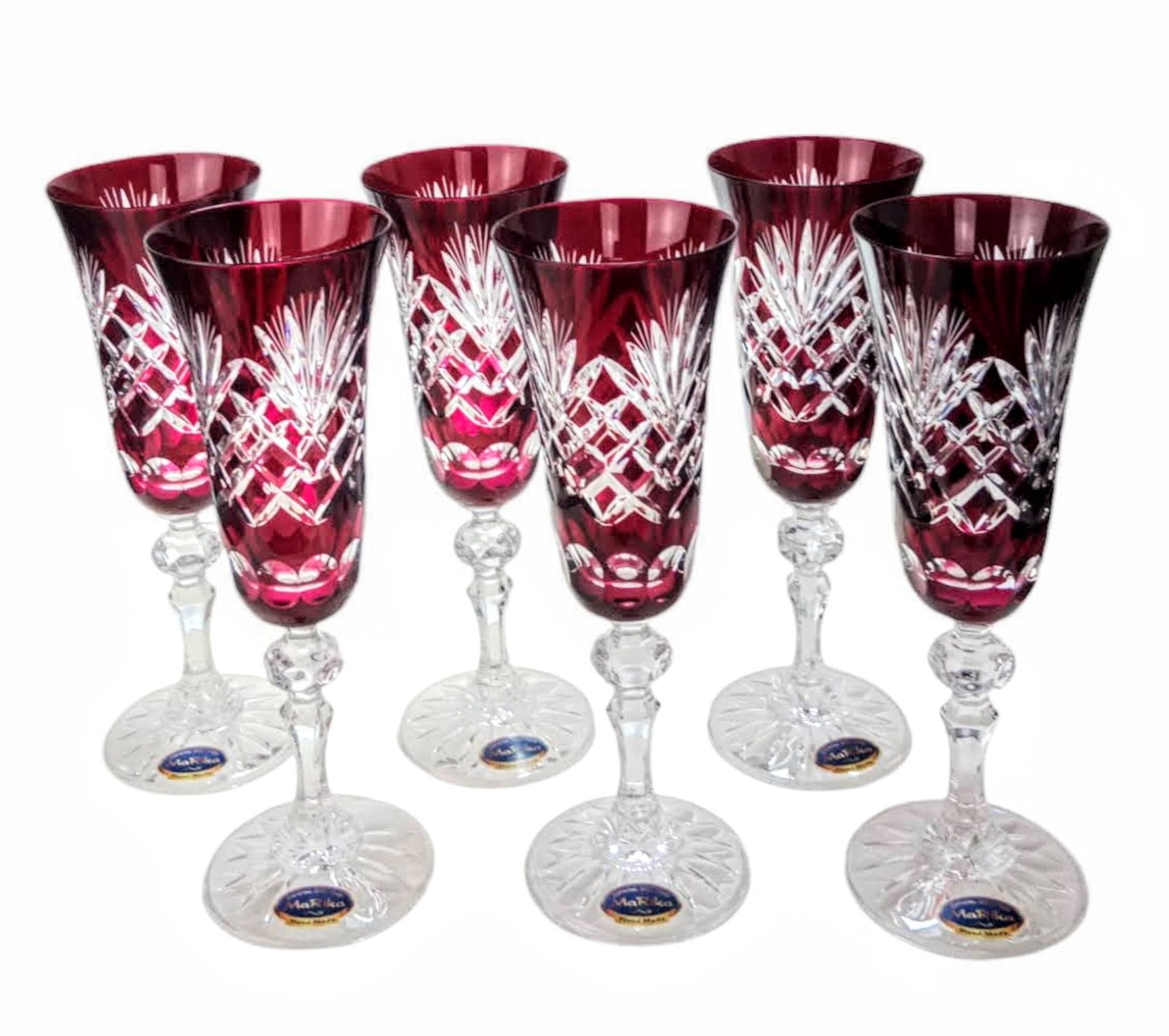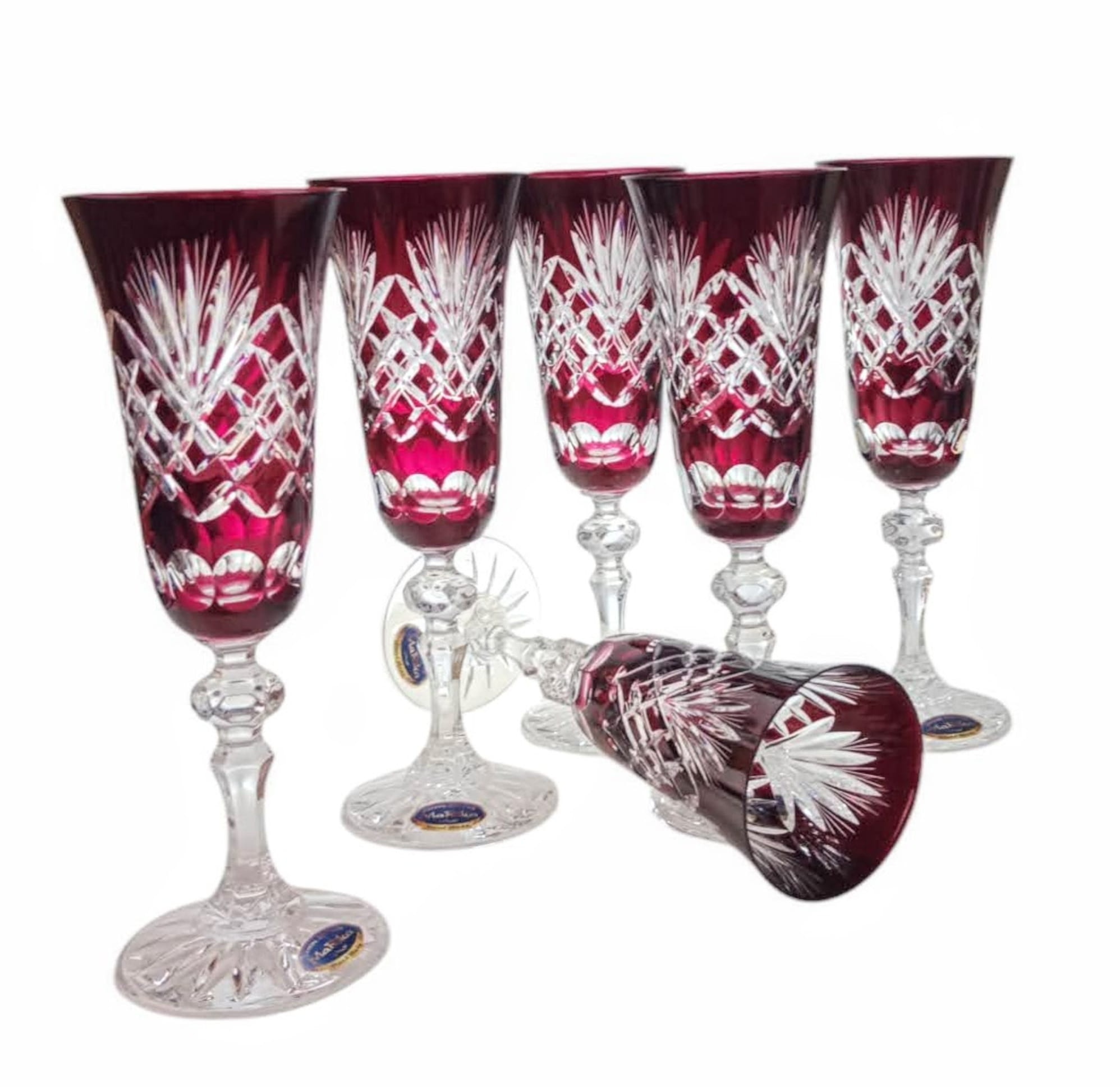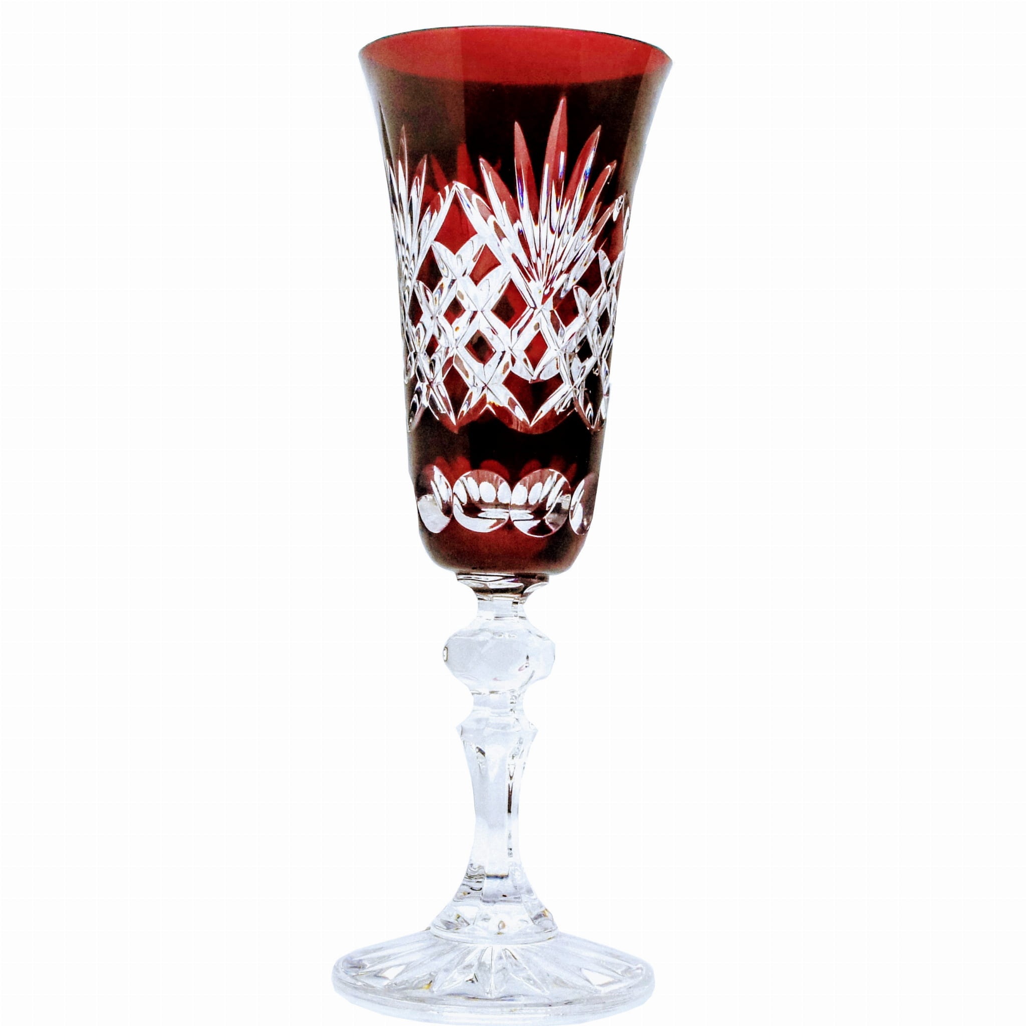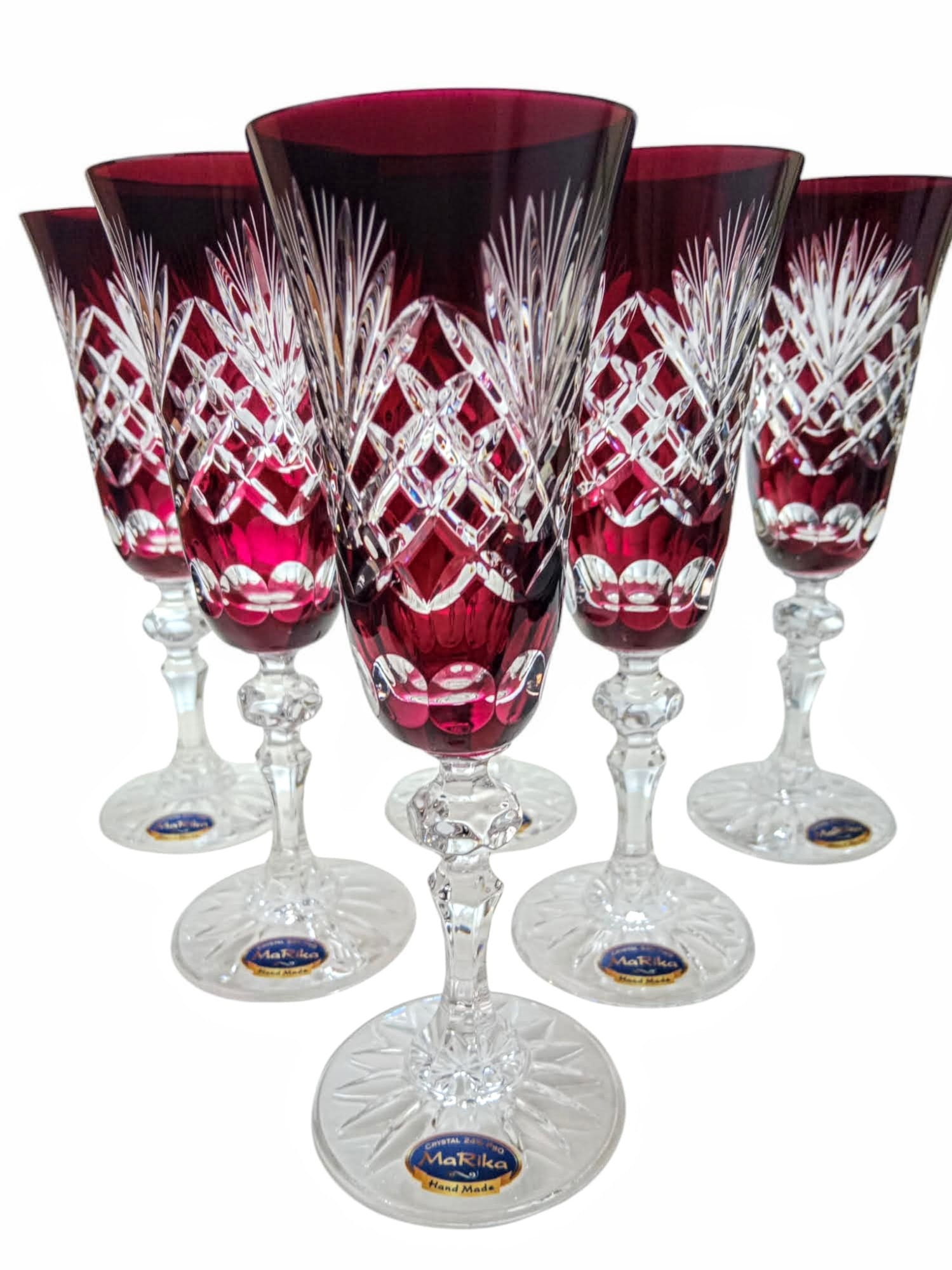 Rubinowe kryształowe kieliszki do szampana 150ml Ananas 6 sztuk