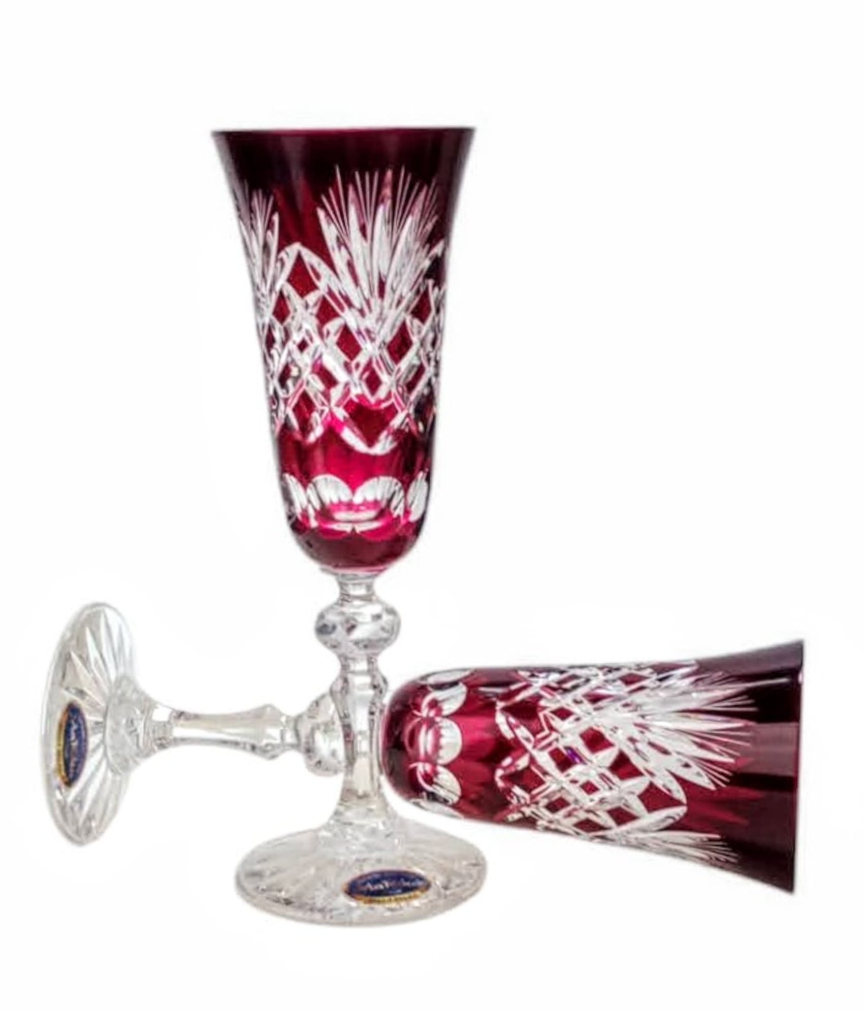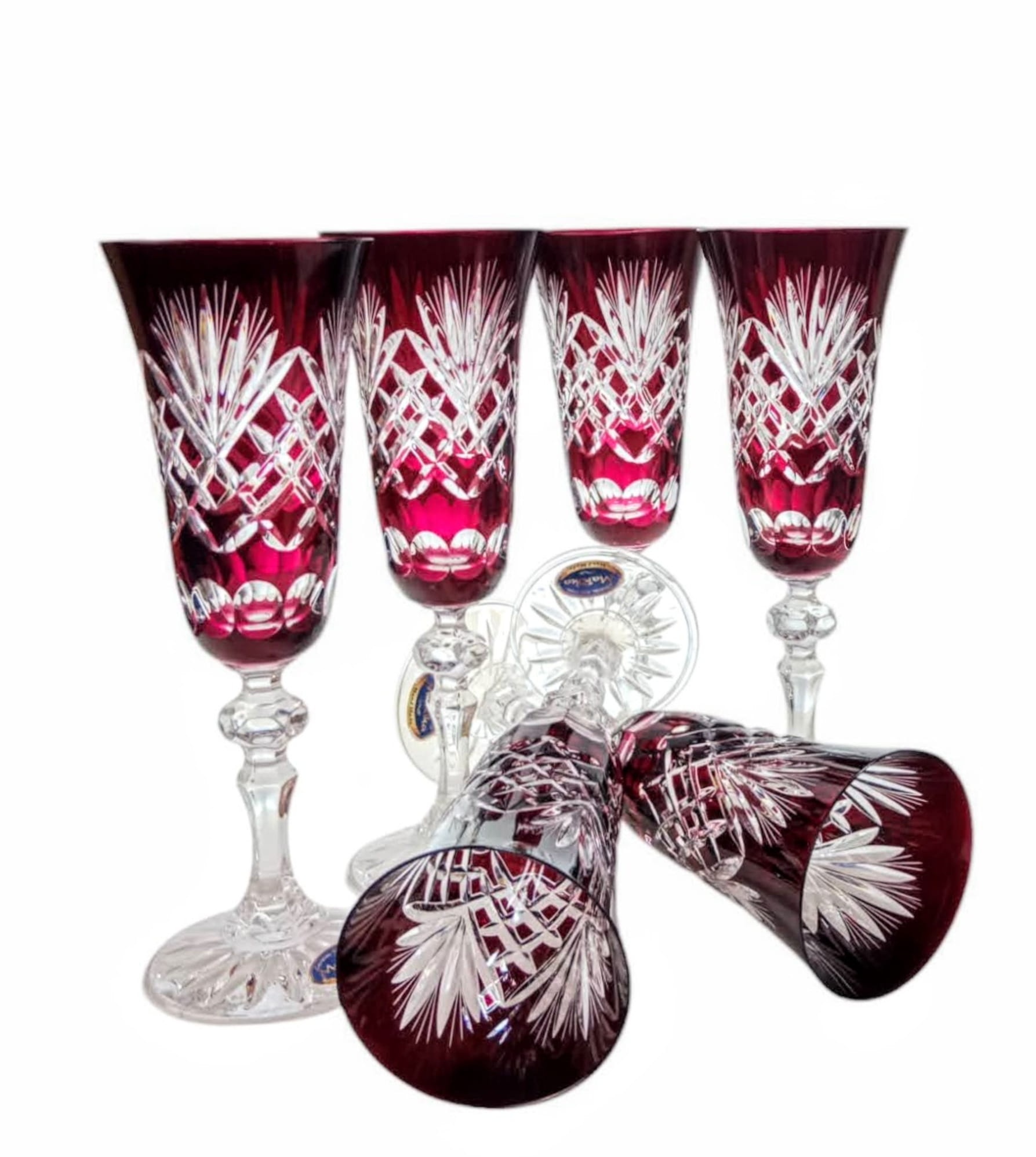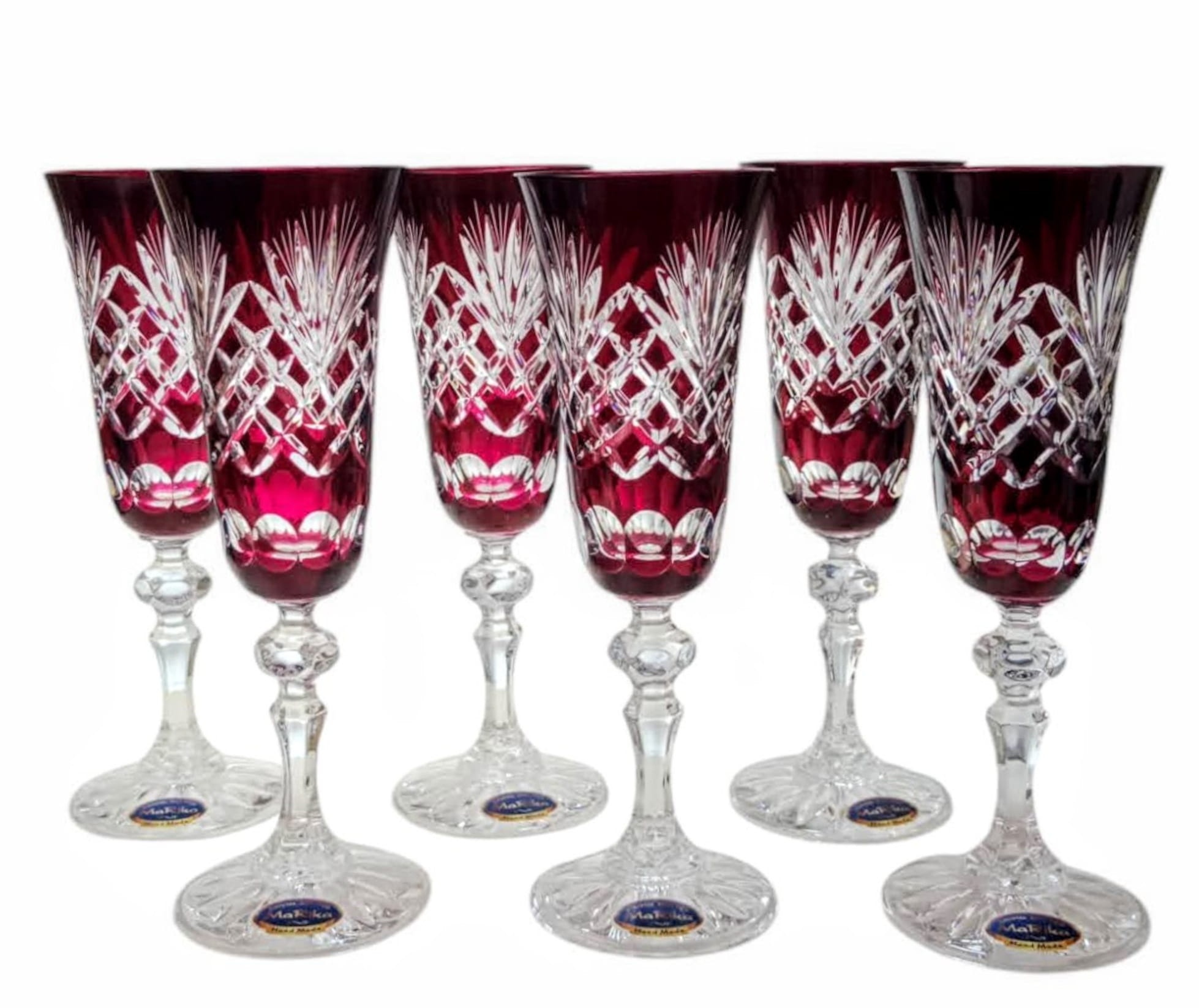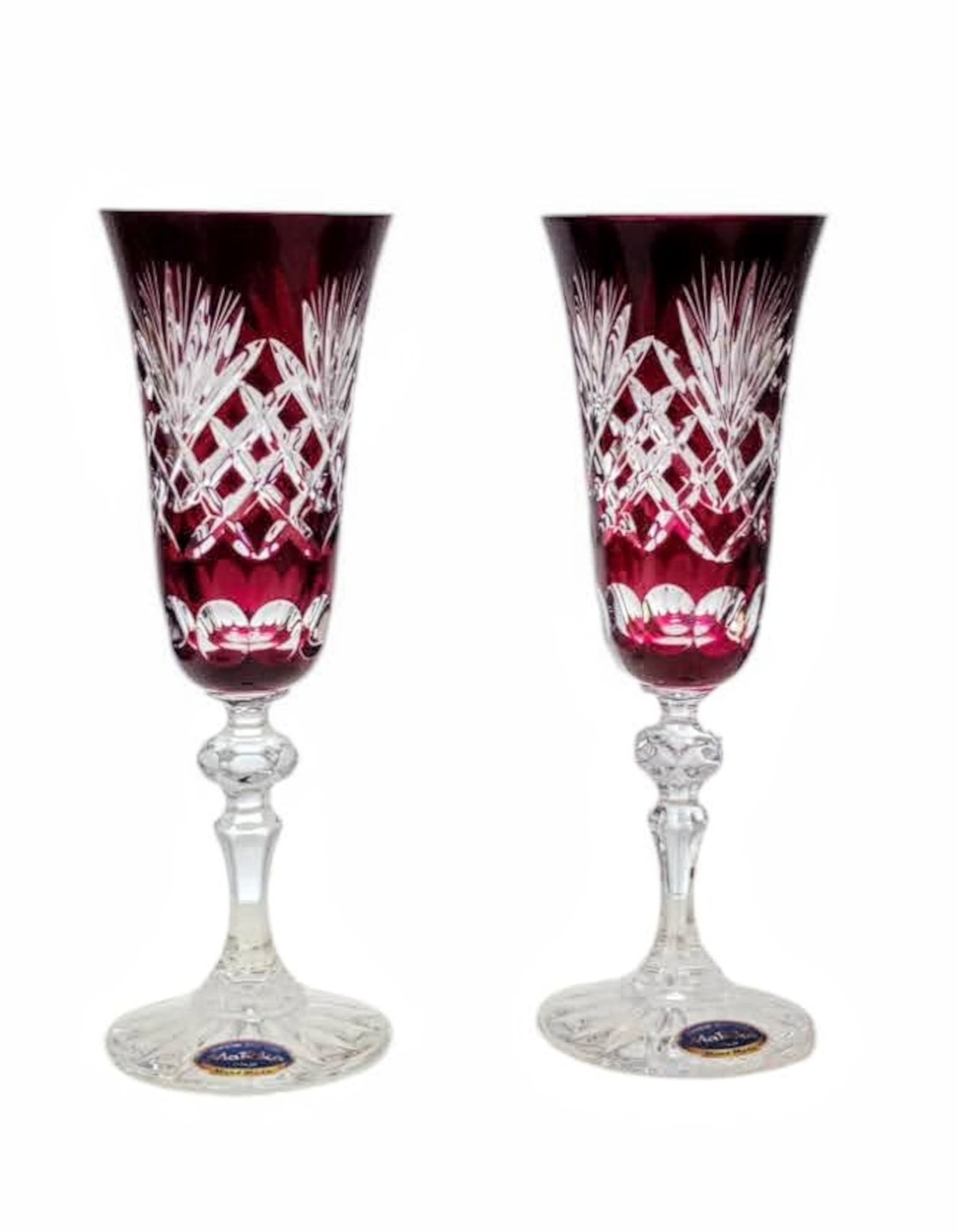 Rubinowe kryształowe kieliszki do szampana 150ml Ananas 6 sztuk