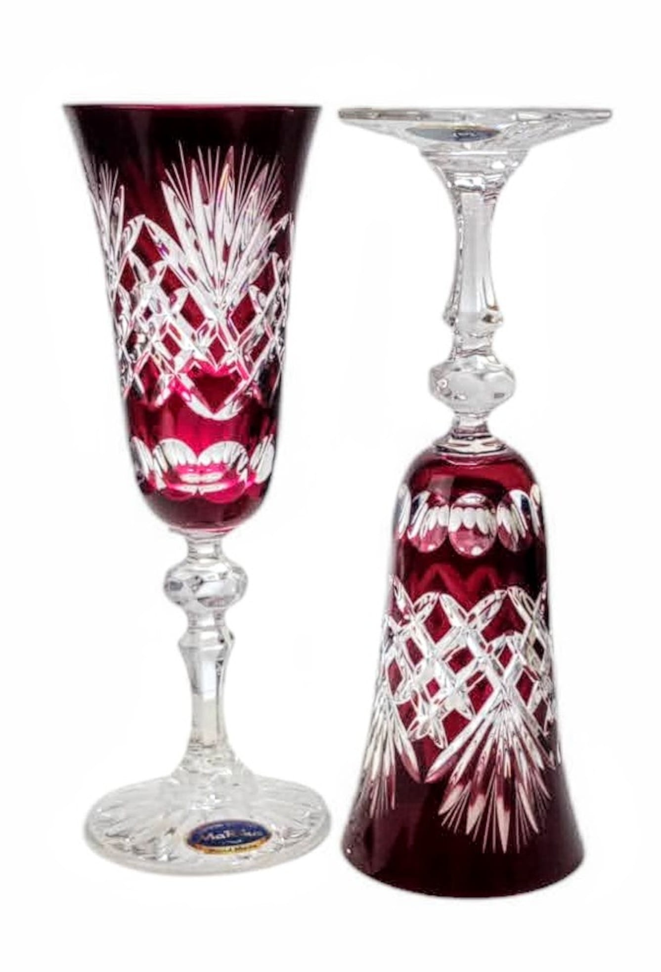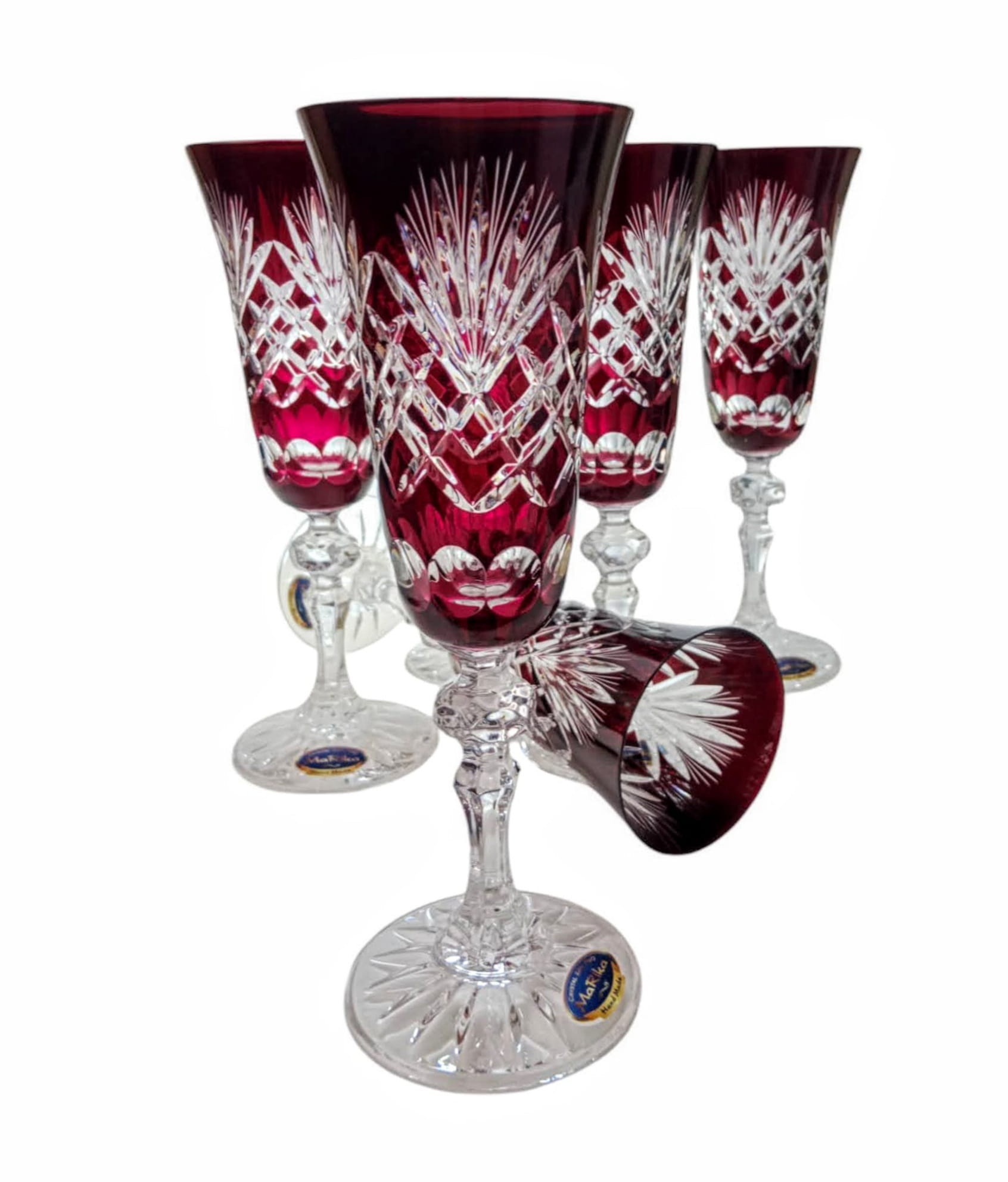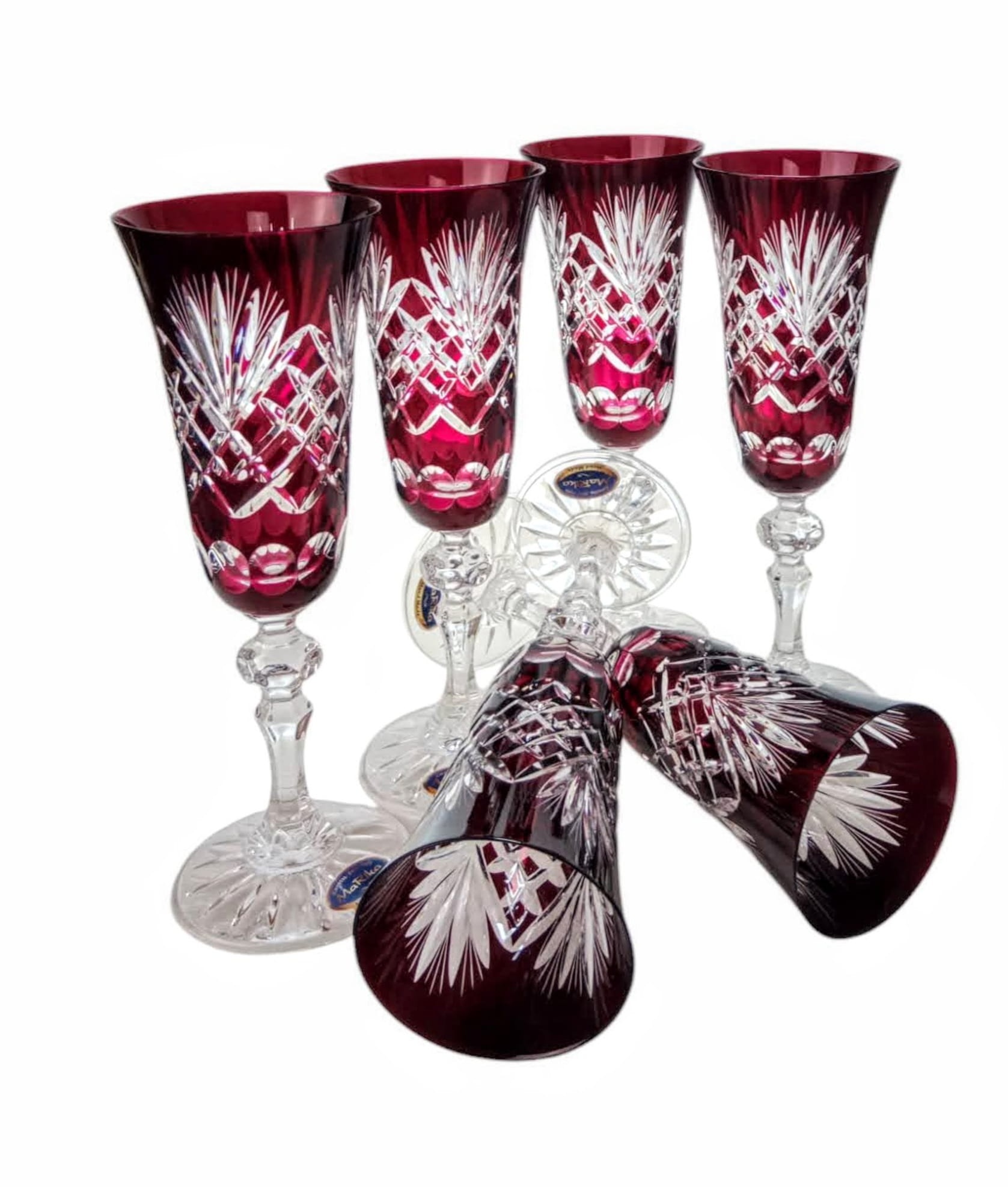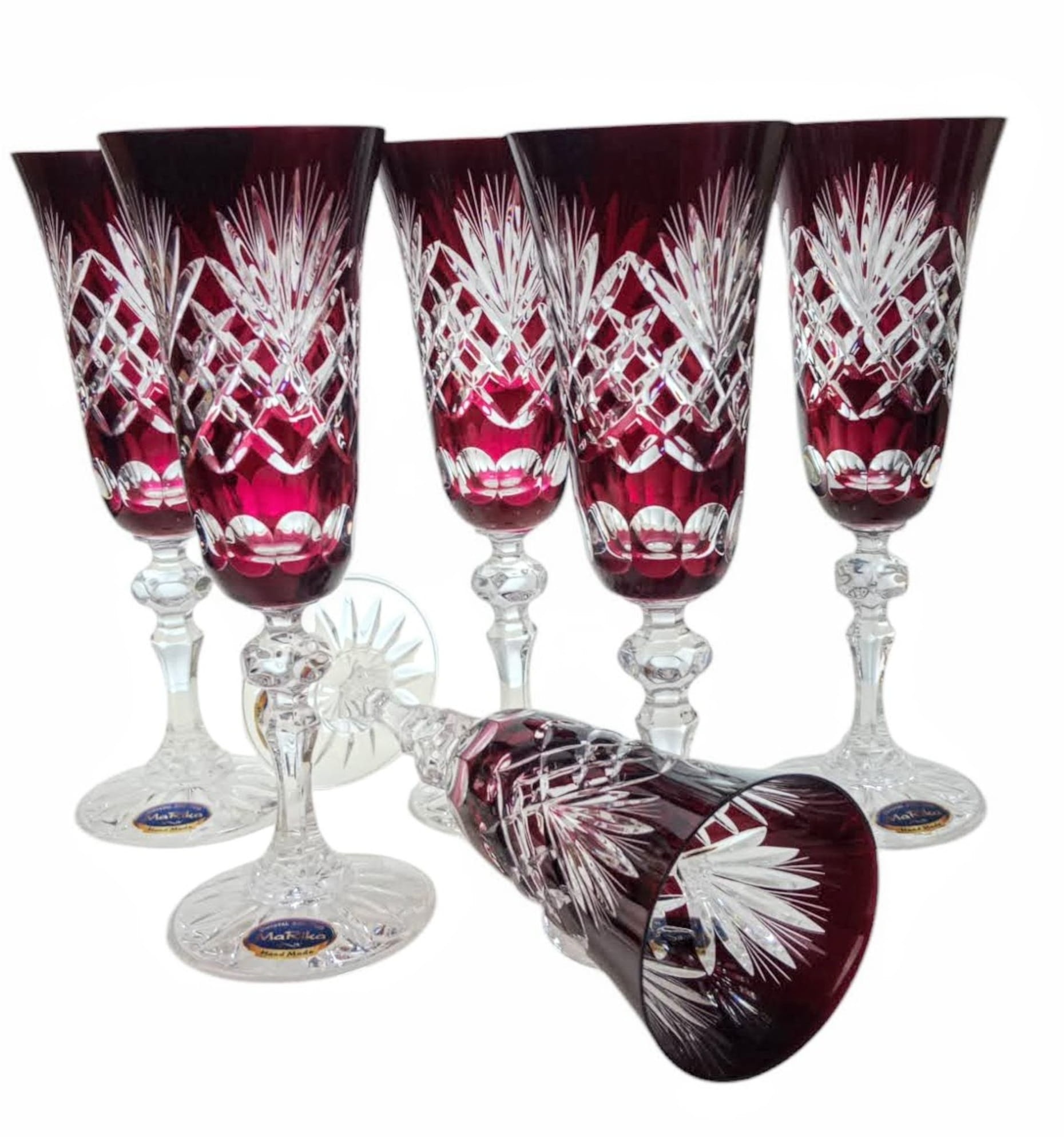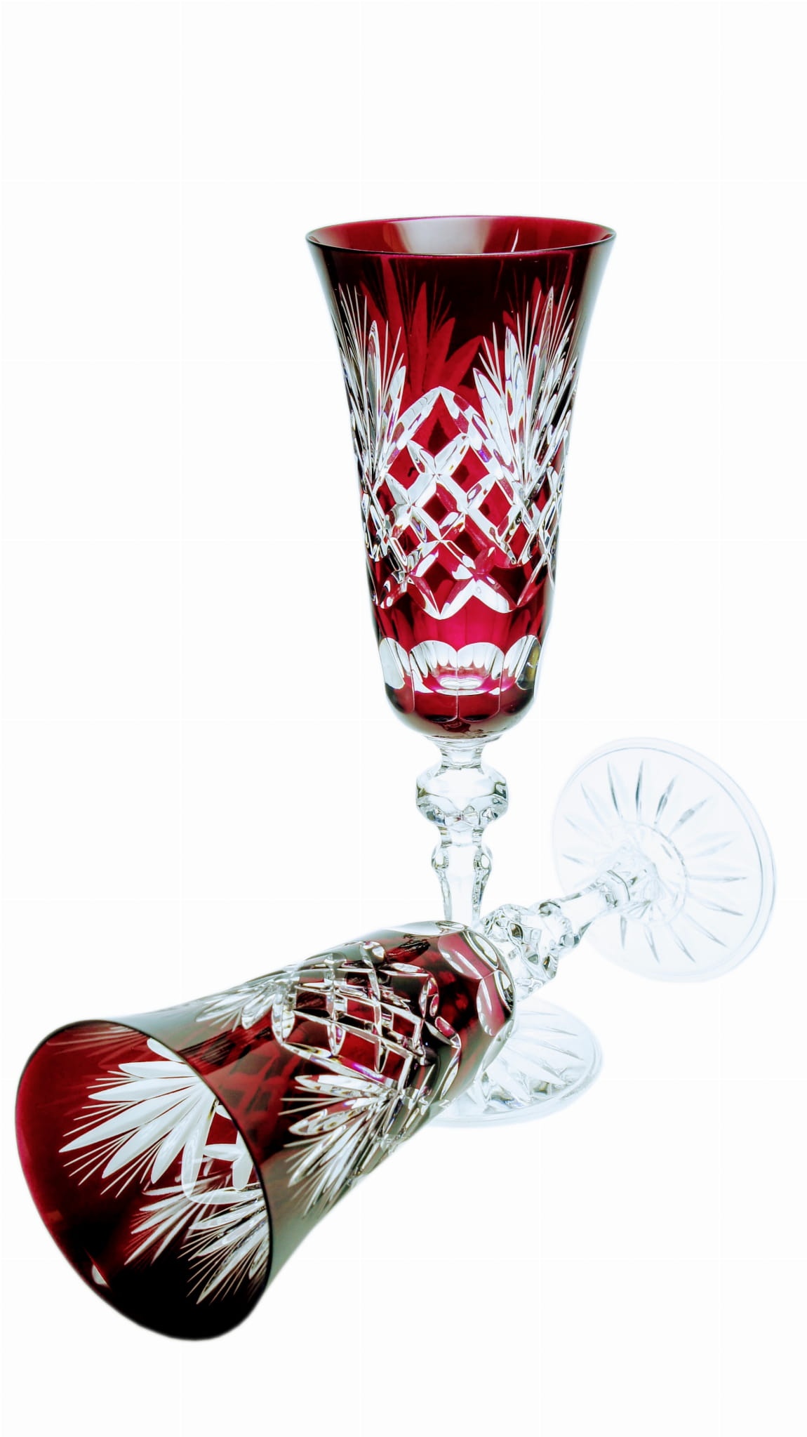 Rubinowe kryształowe kieliszki do szampana 150ml Ananas 6 sztuk