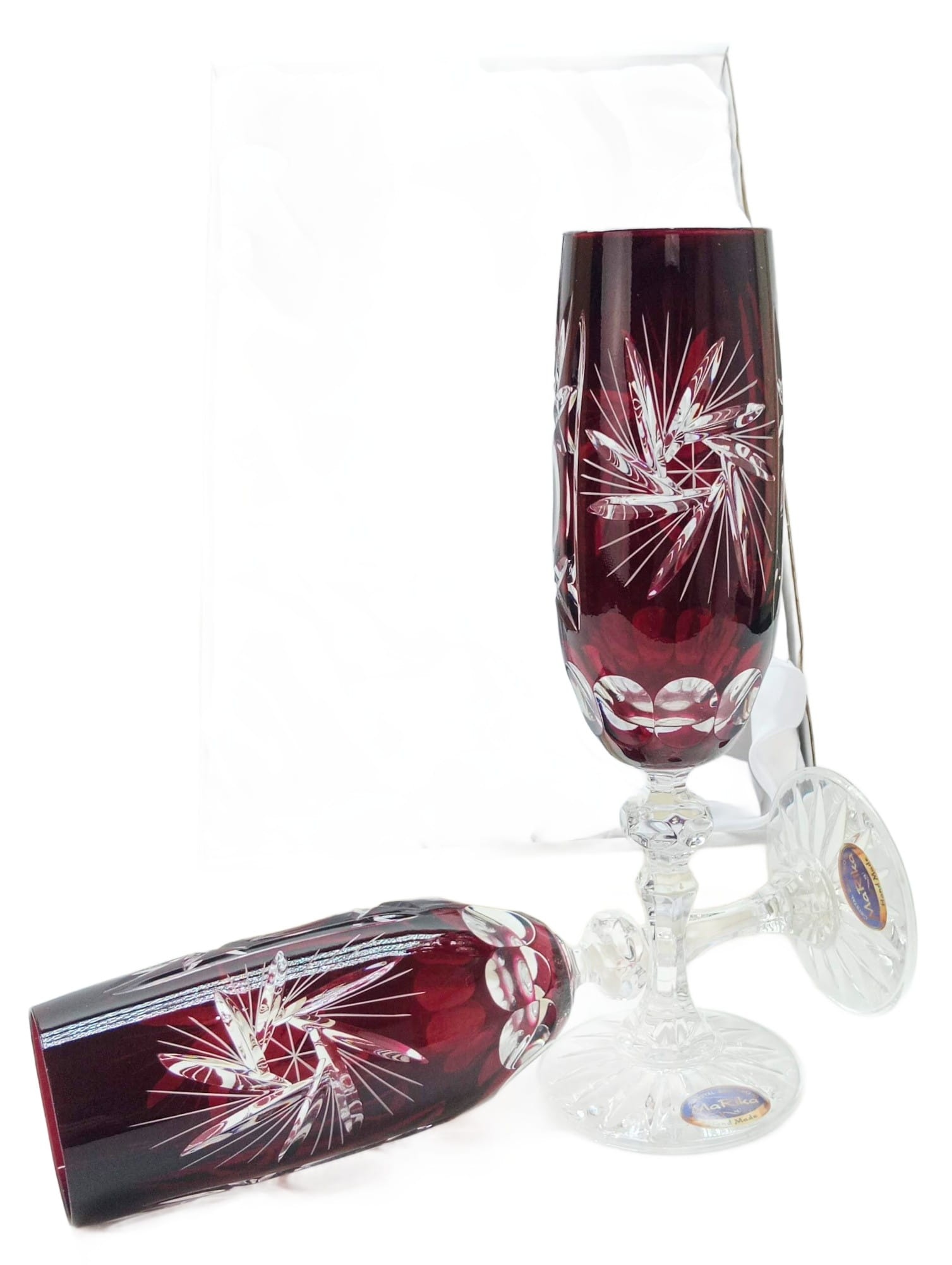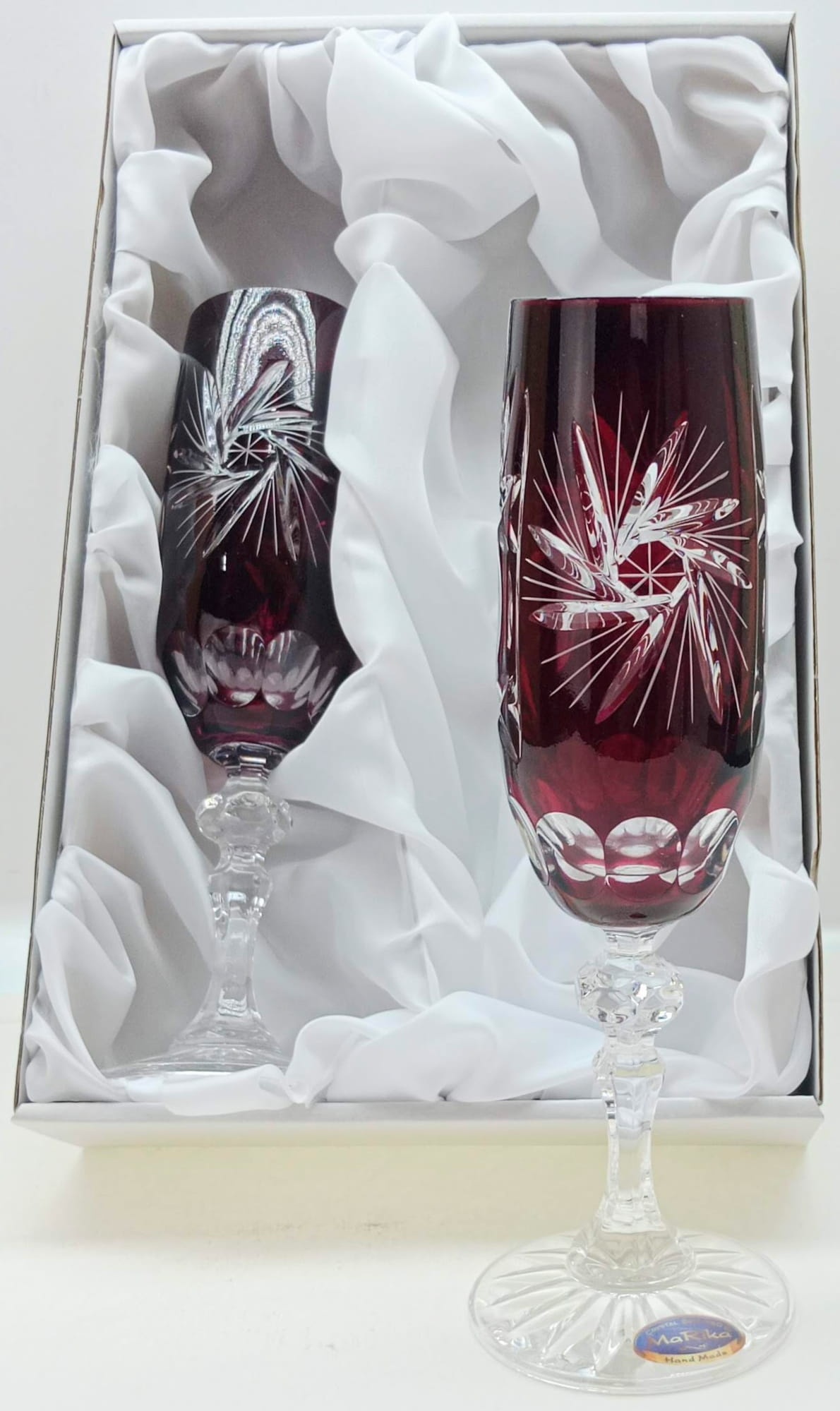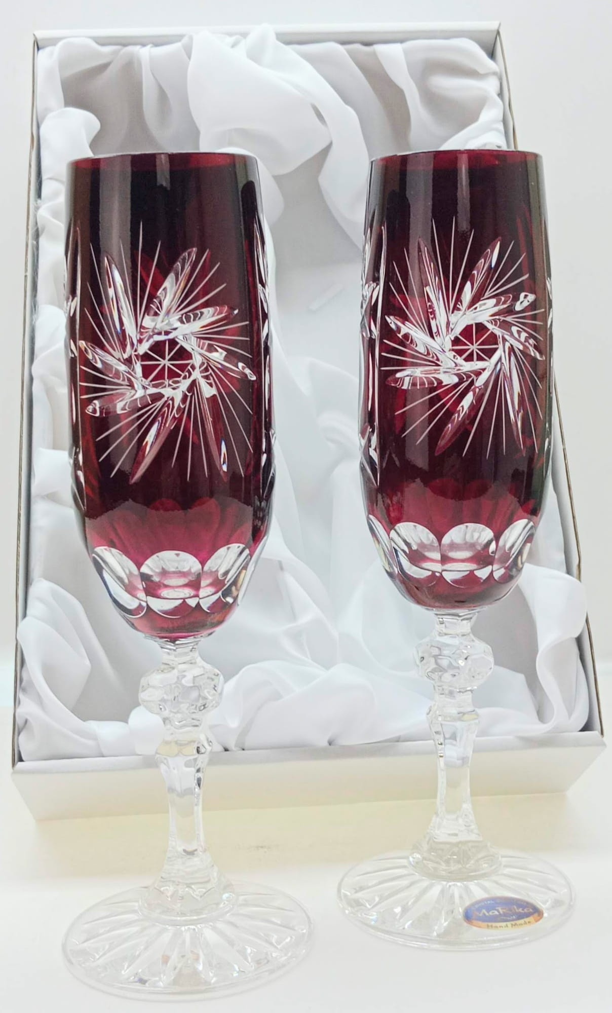 Rubinowe Kryształowe Kieliszki do Szampana – Kolekcja Młynek Oliwka (Zestaw 2 szt.)