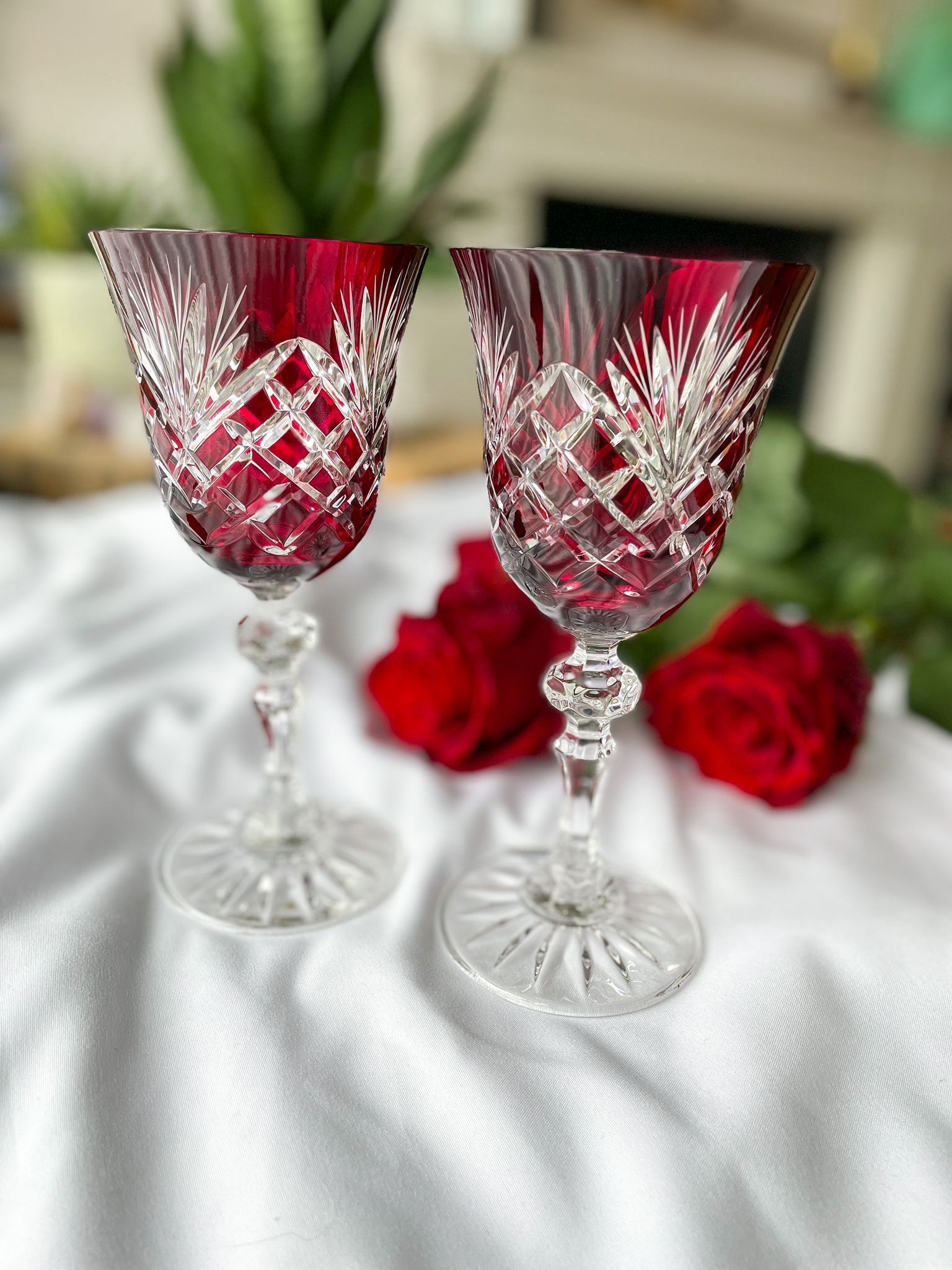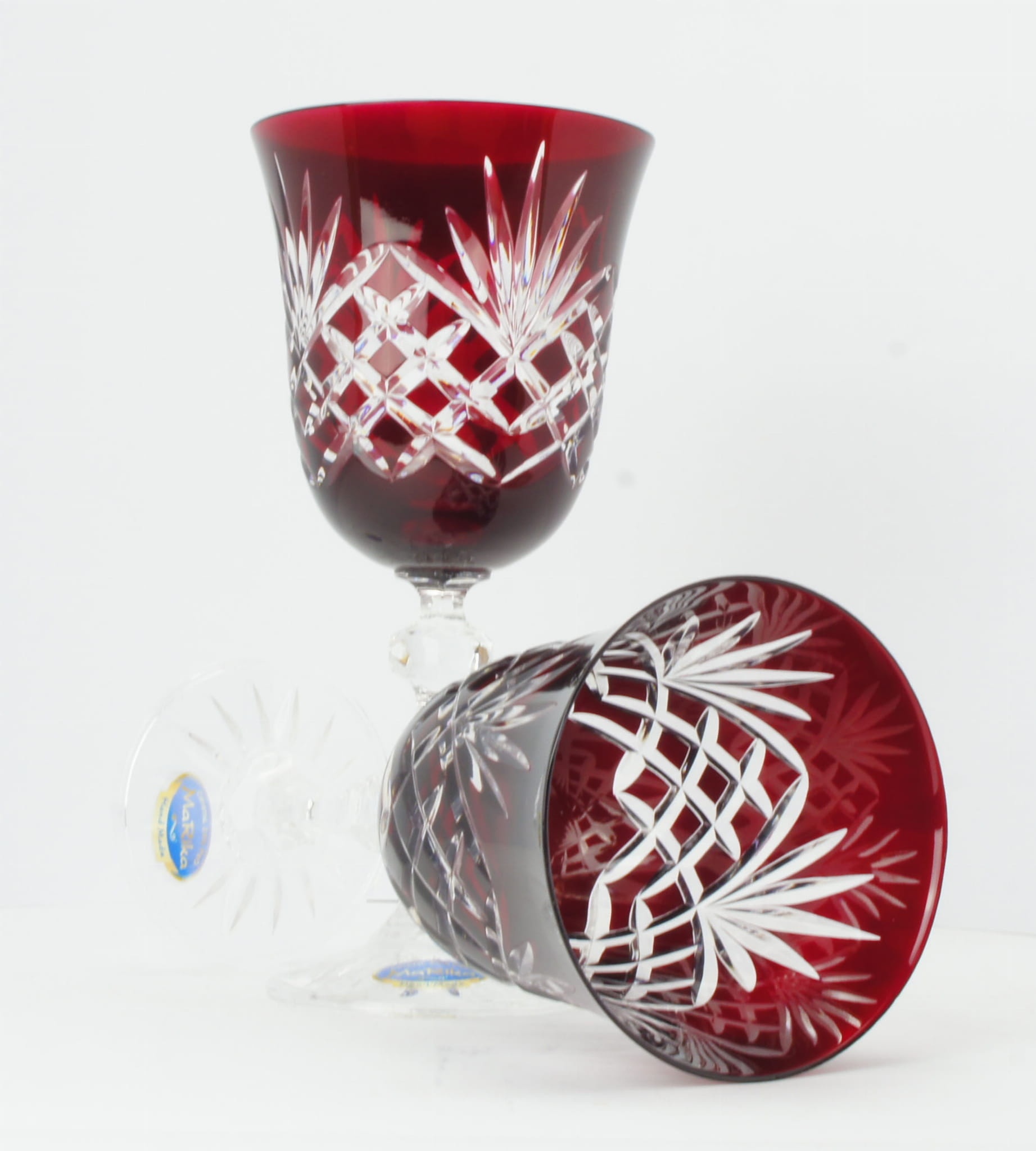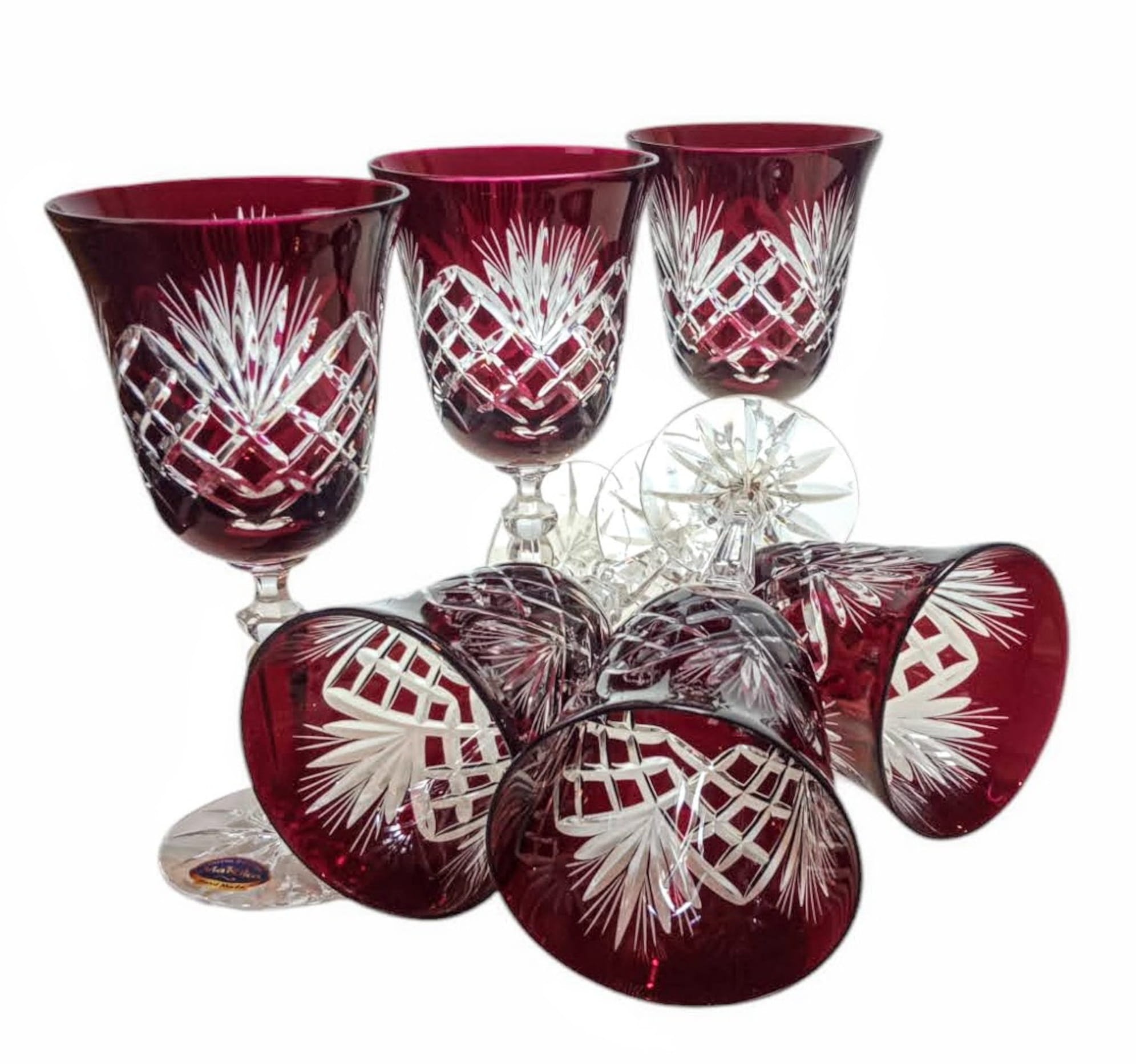 Rubinowe kryształowe kieliszki do wina 220ml Ananas 6 sztuk
