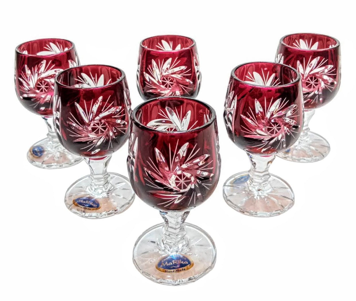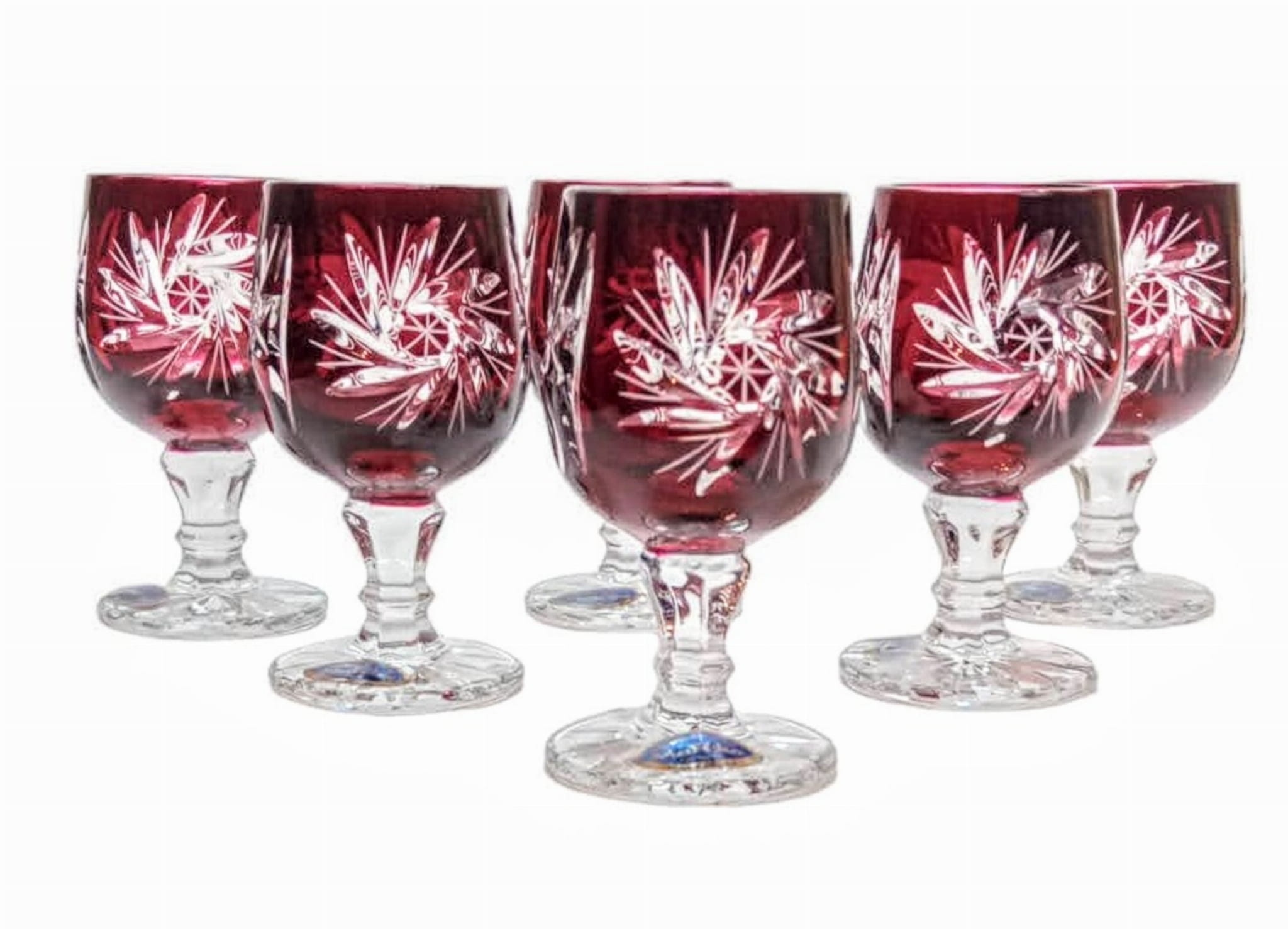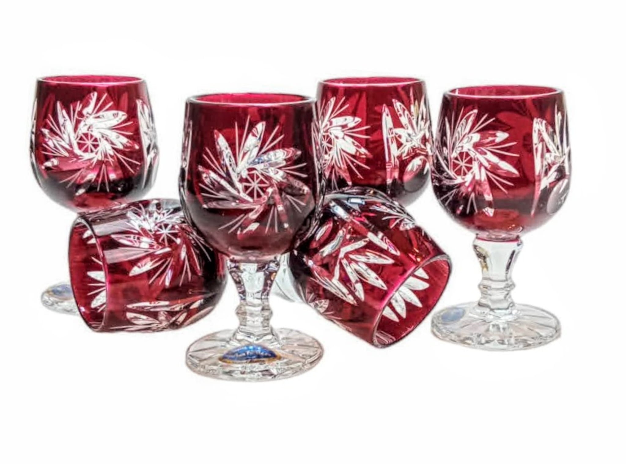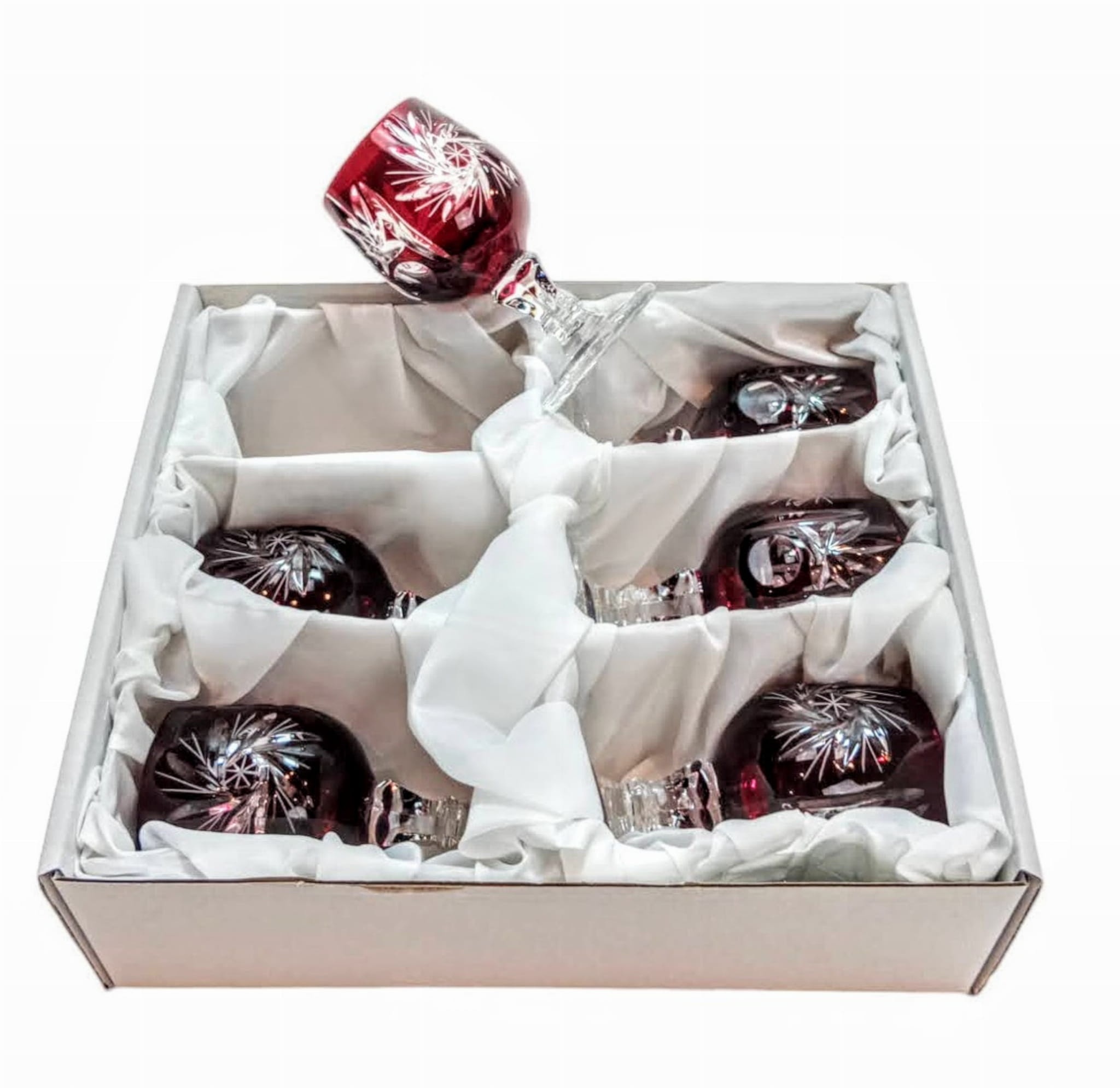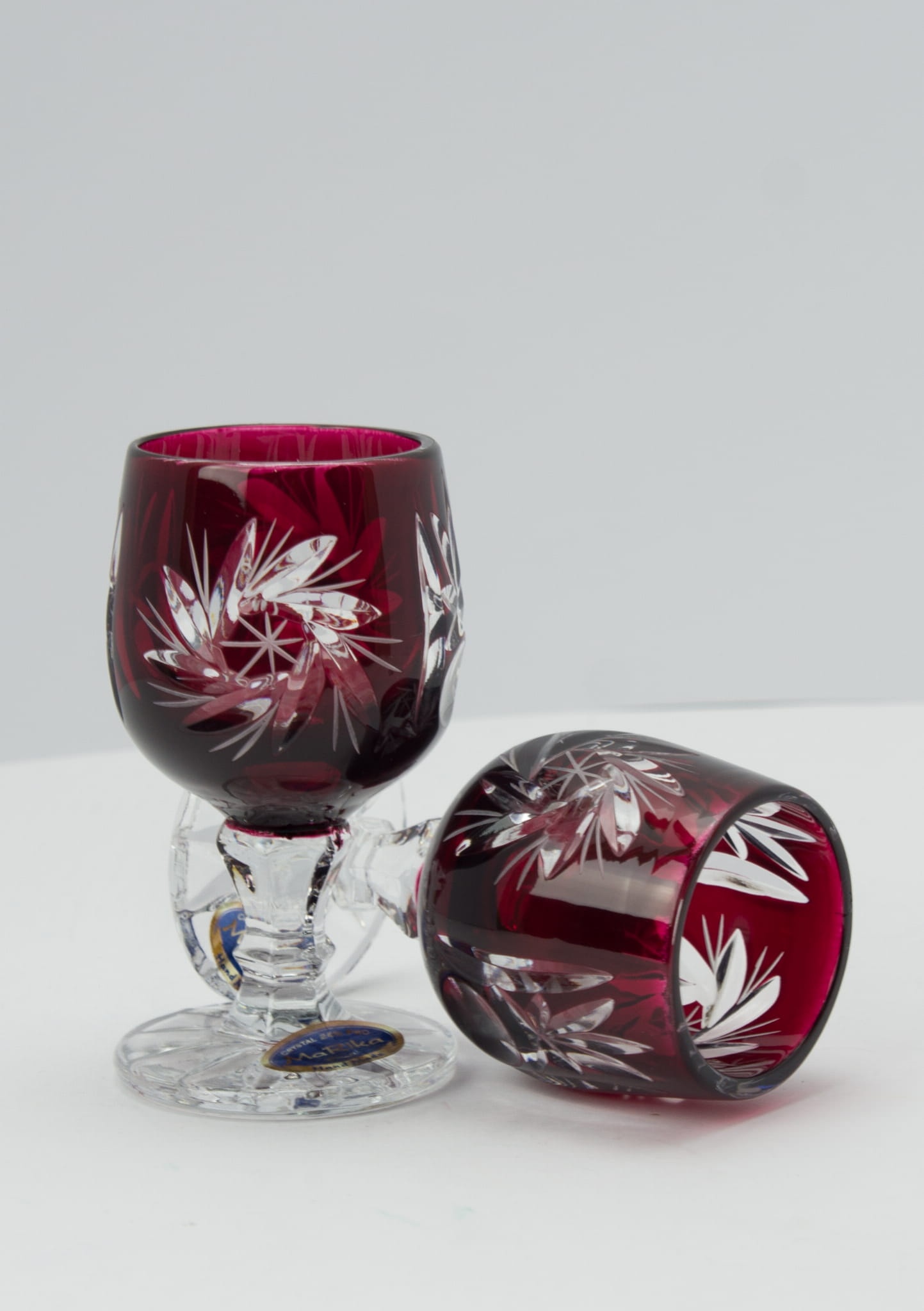 Rubinowe kryształowe kieliszki do wódki 40 ml Młynek Oliwka 6 sztuk