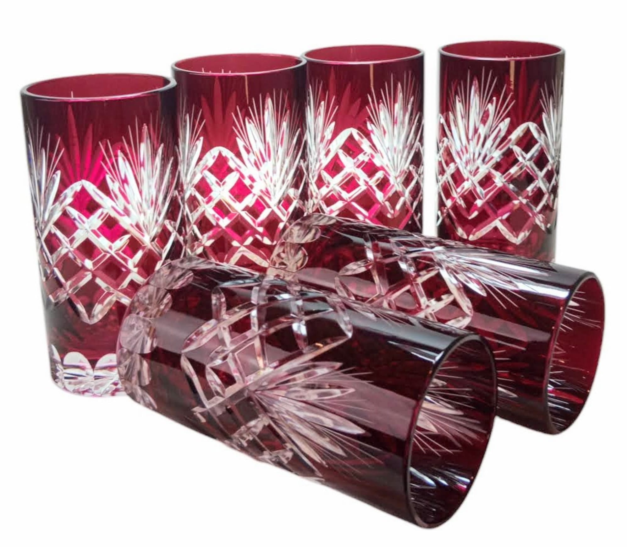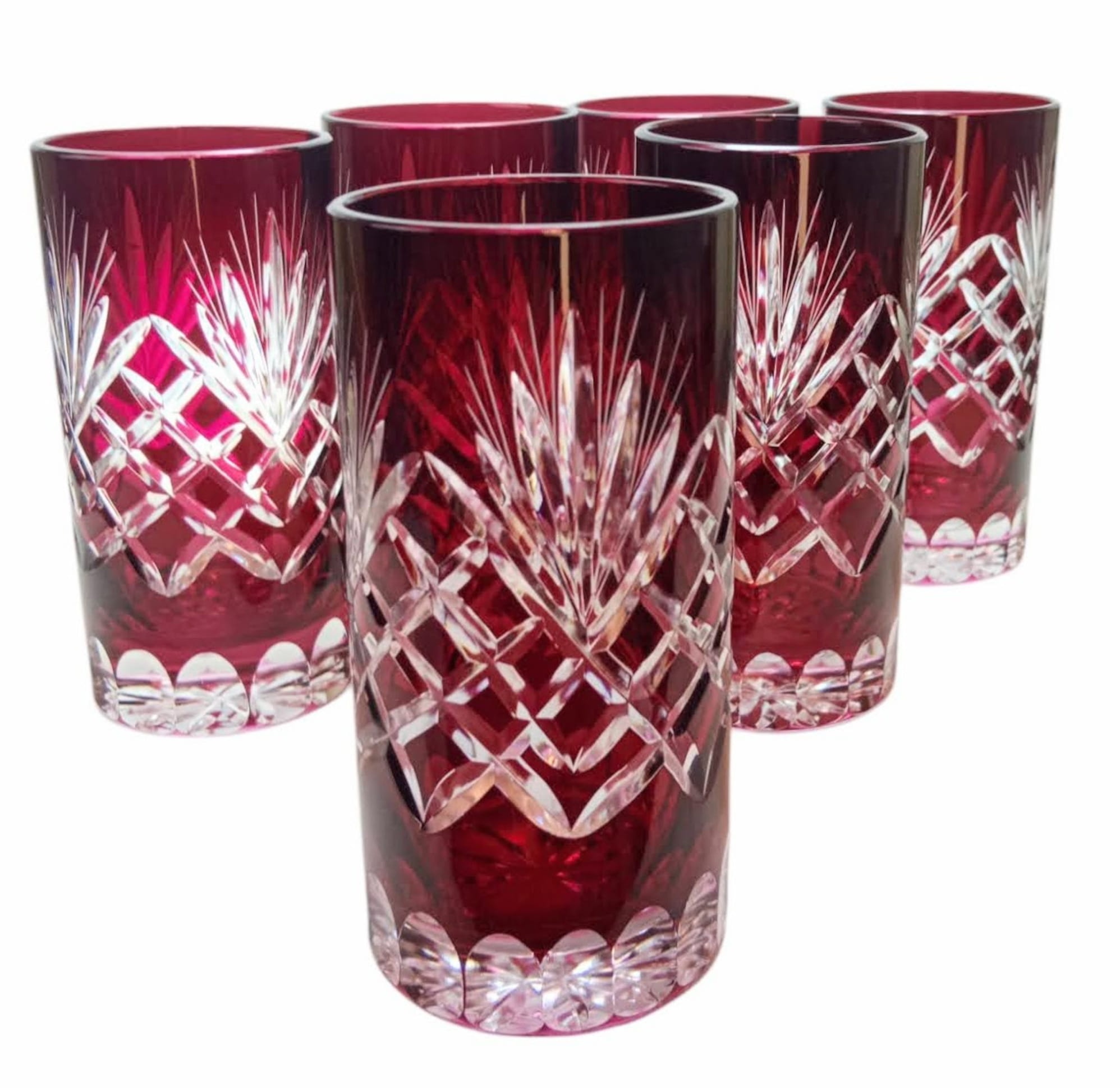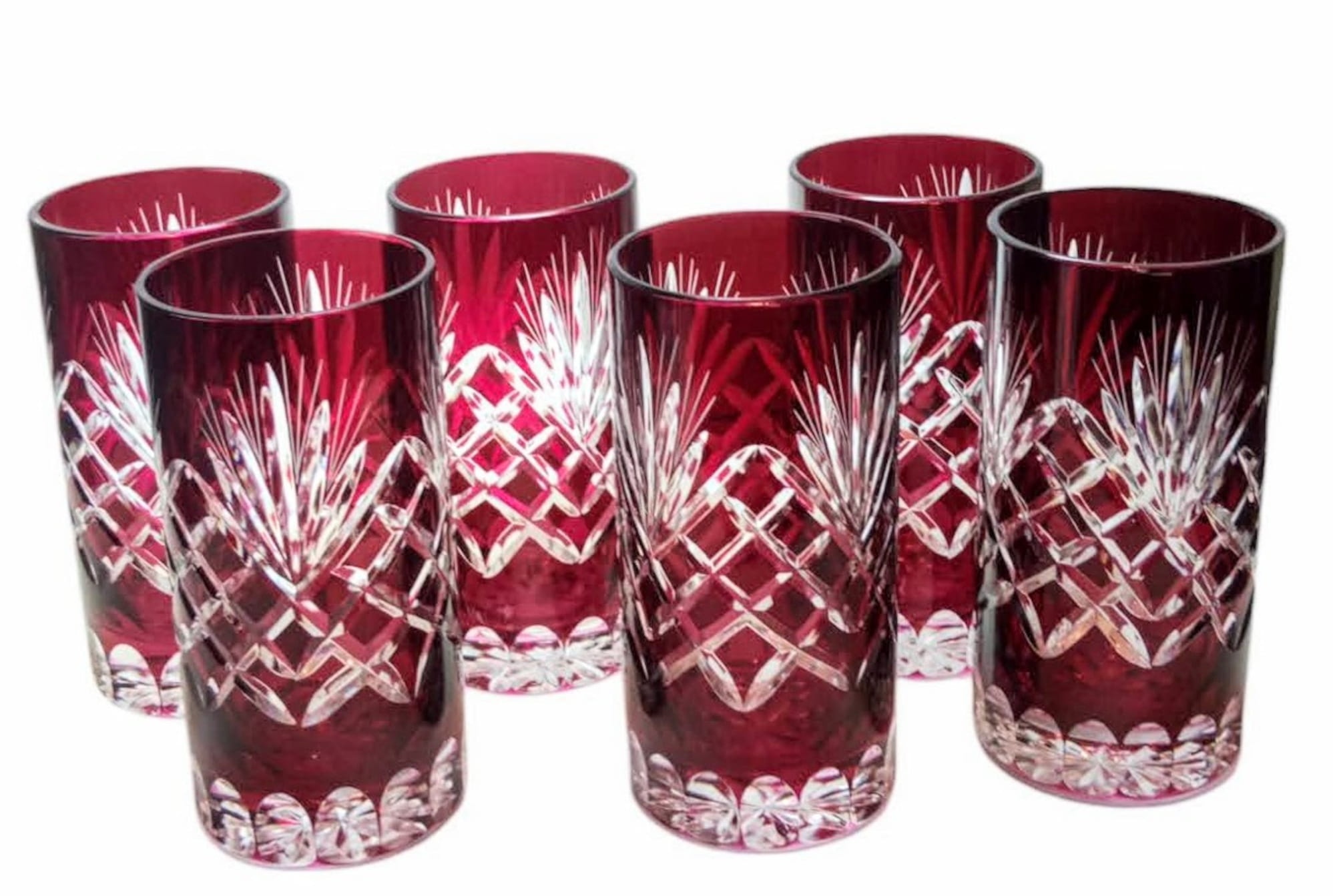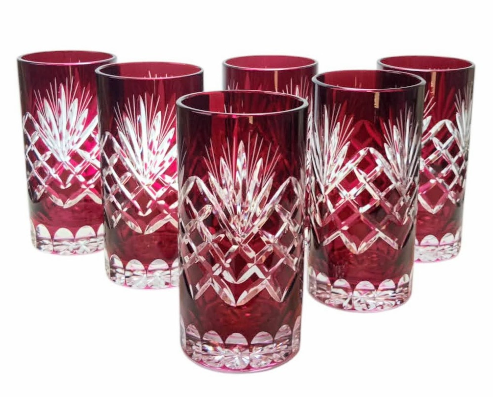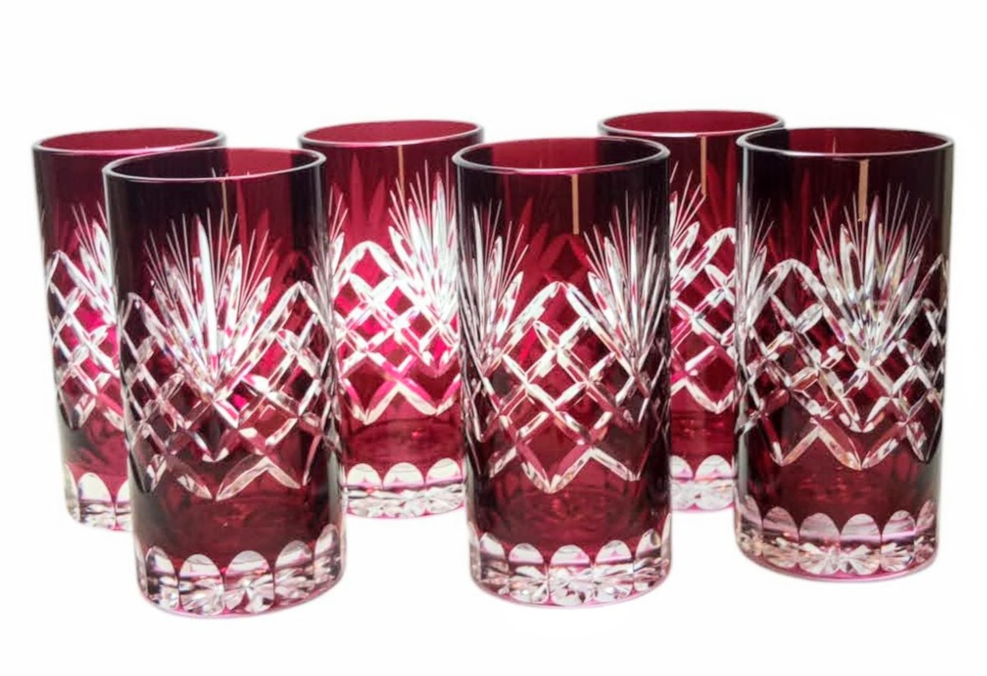 Rubinowe kryształowe szklanki do wody i drinków 320ml Ananas 6 sztuk