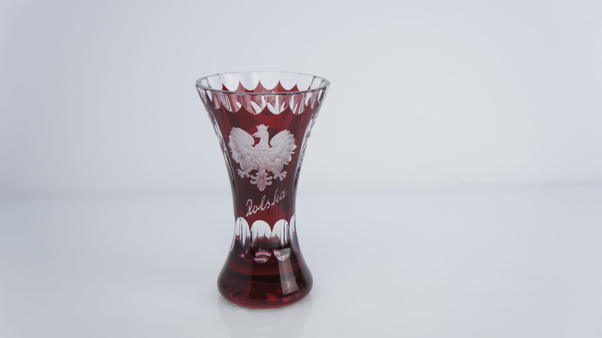Rubinowy kryształowy wazon X z Orłem 10 cm