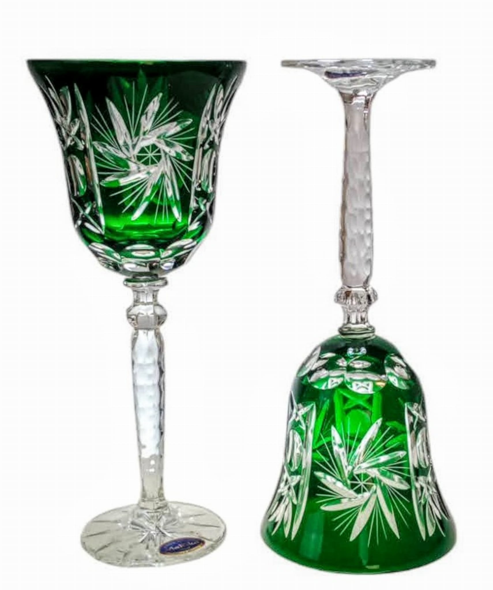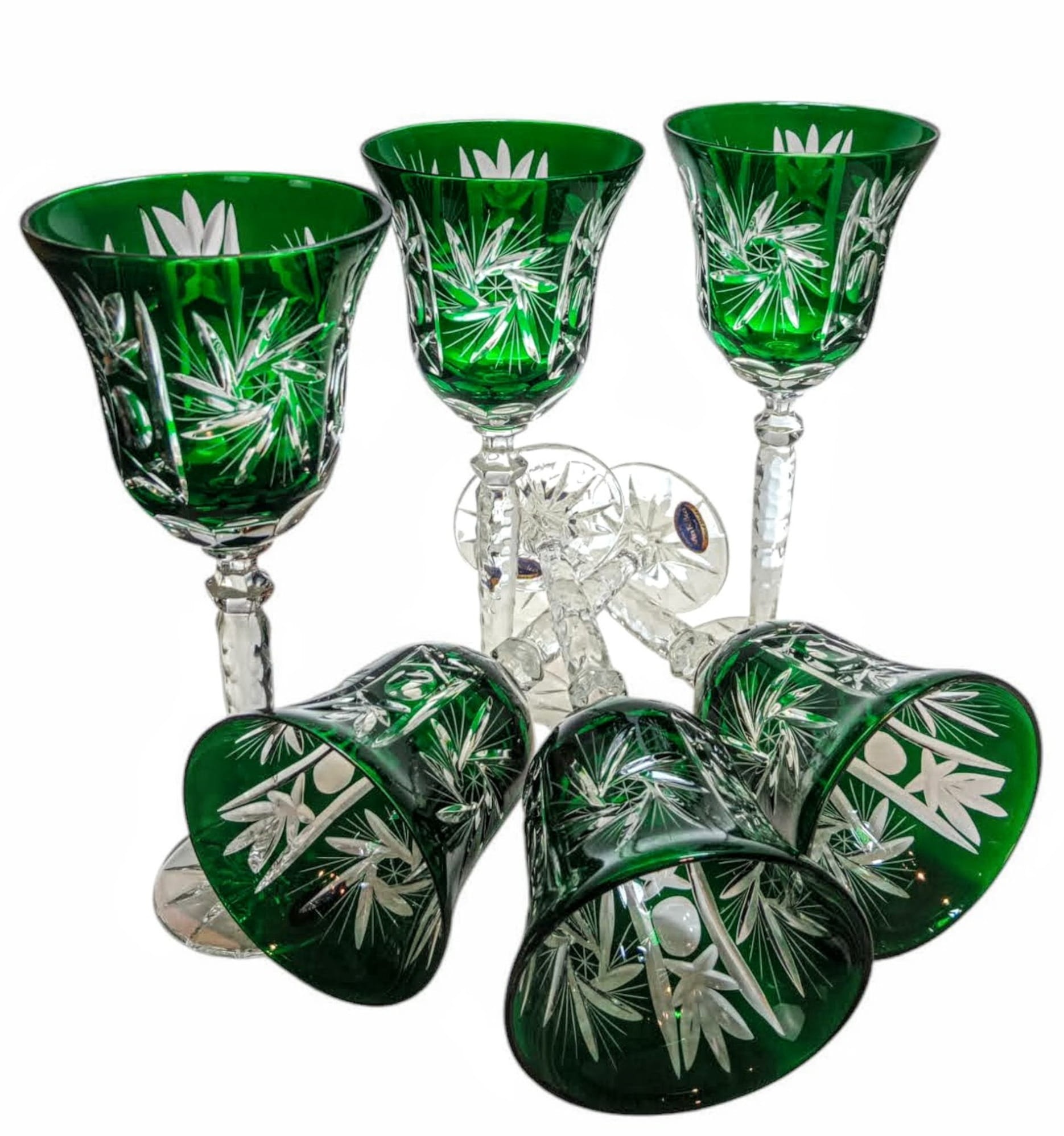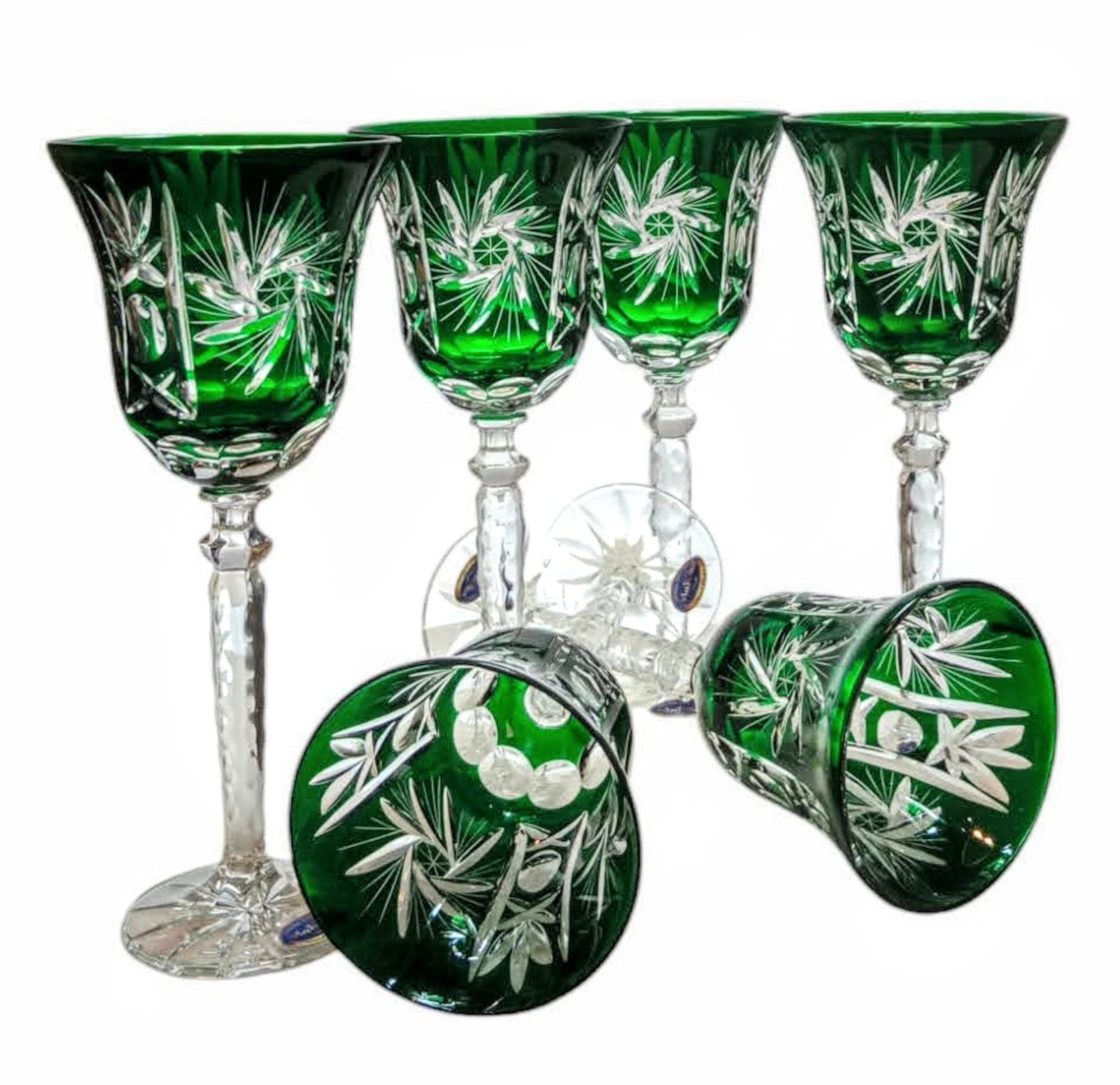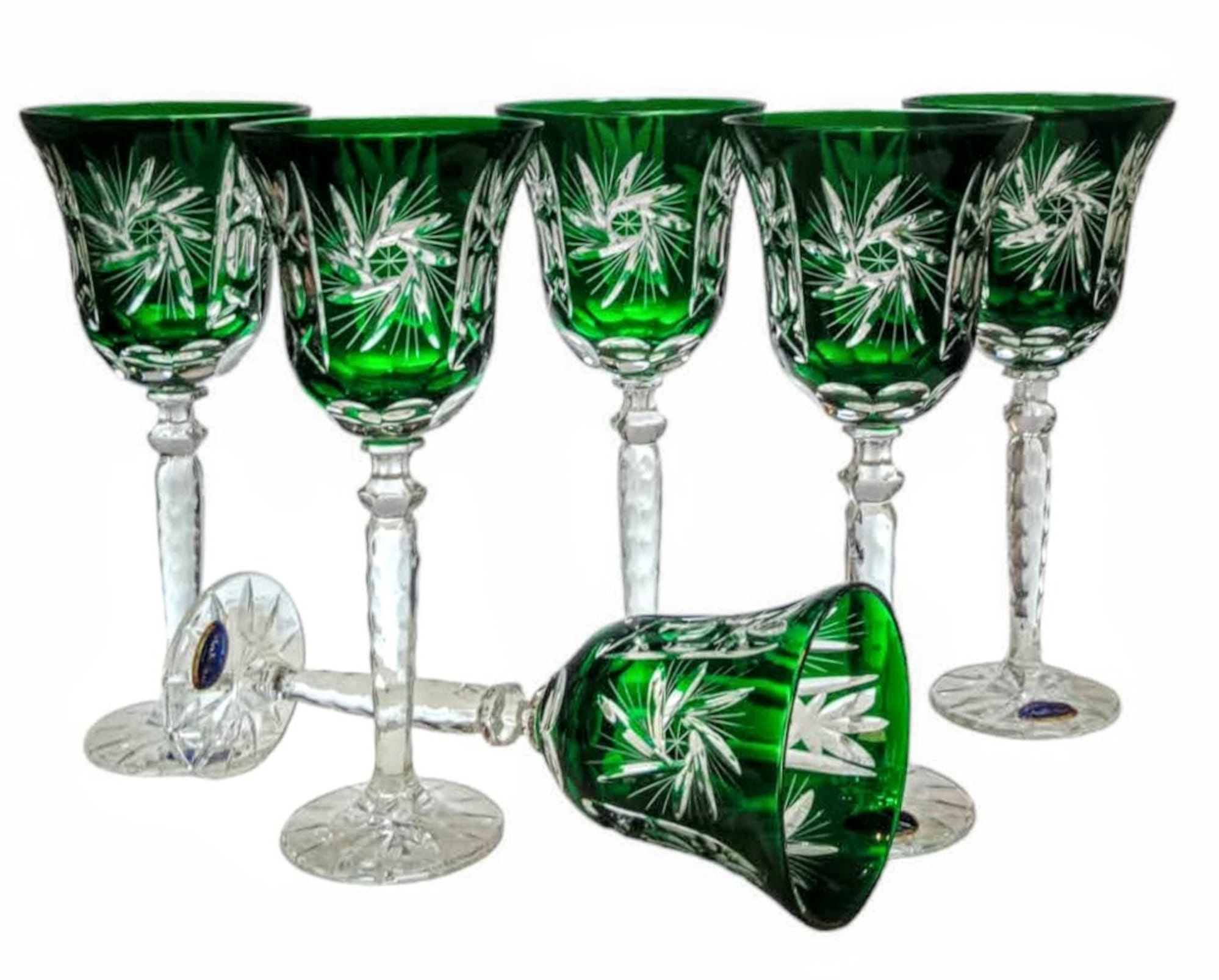 Szmaragdowe kryształowe Remery 280ml Młynek Oliwka 6 szt