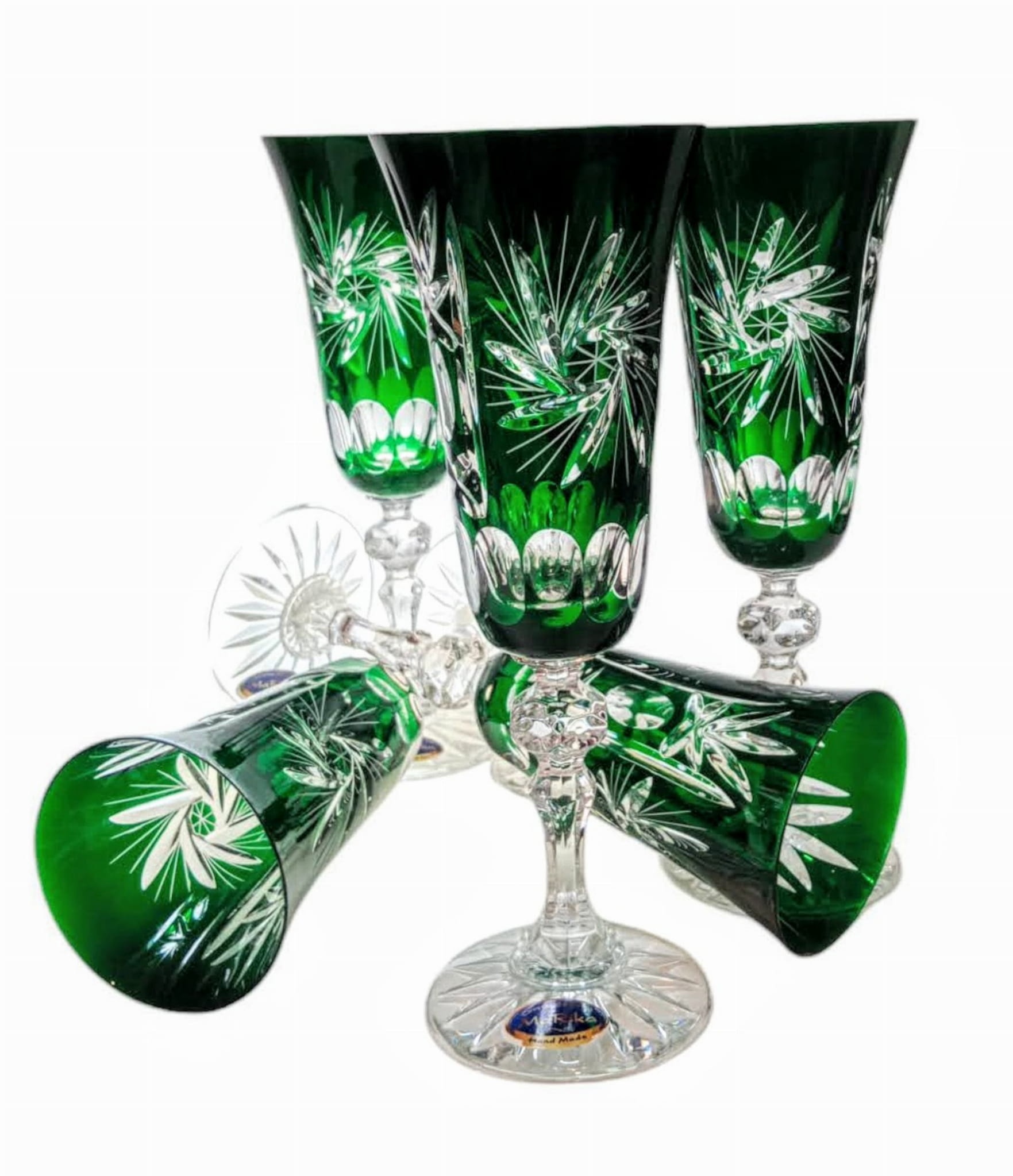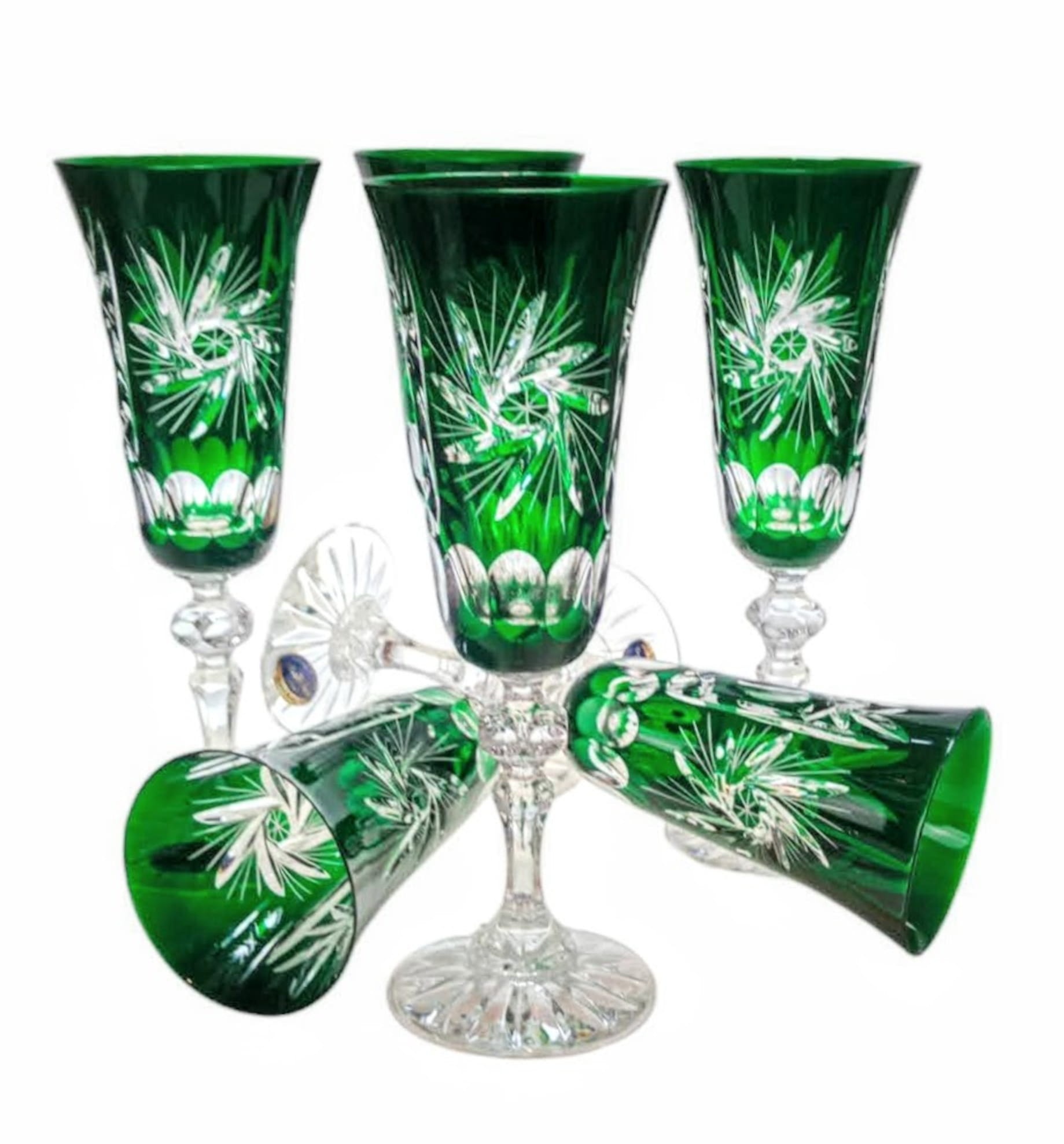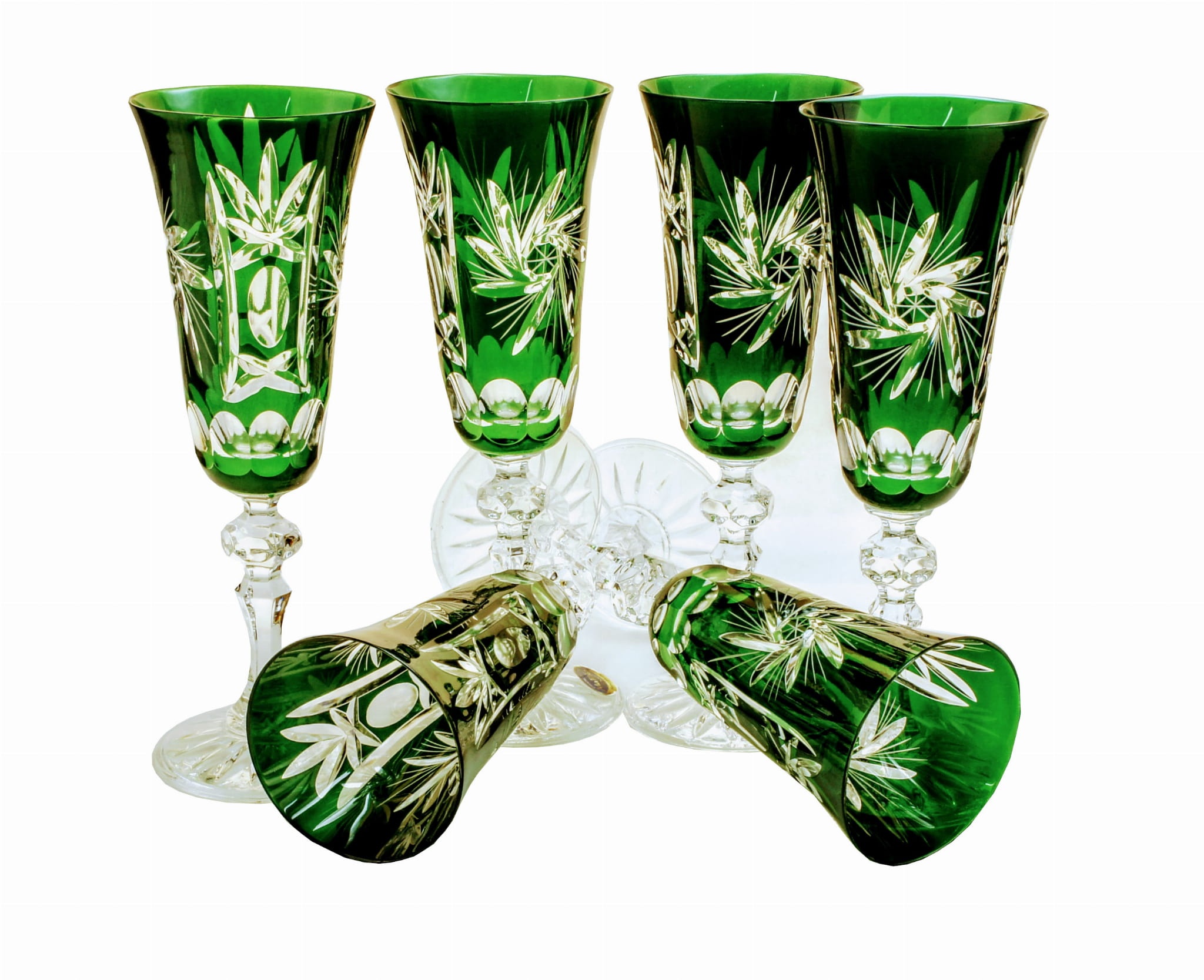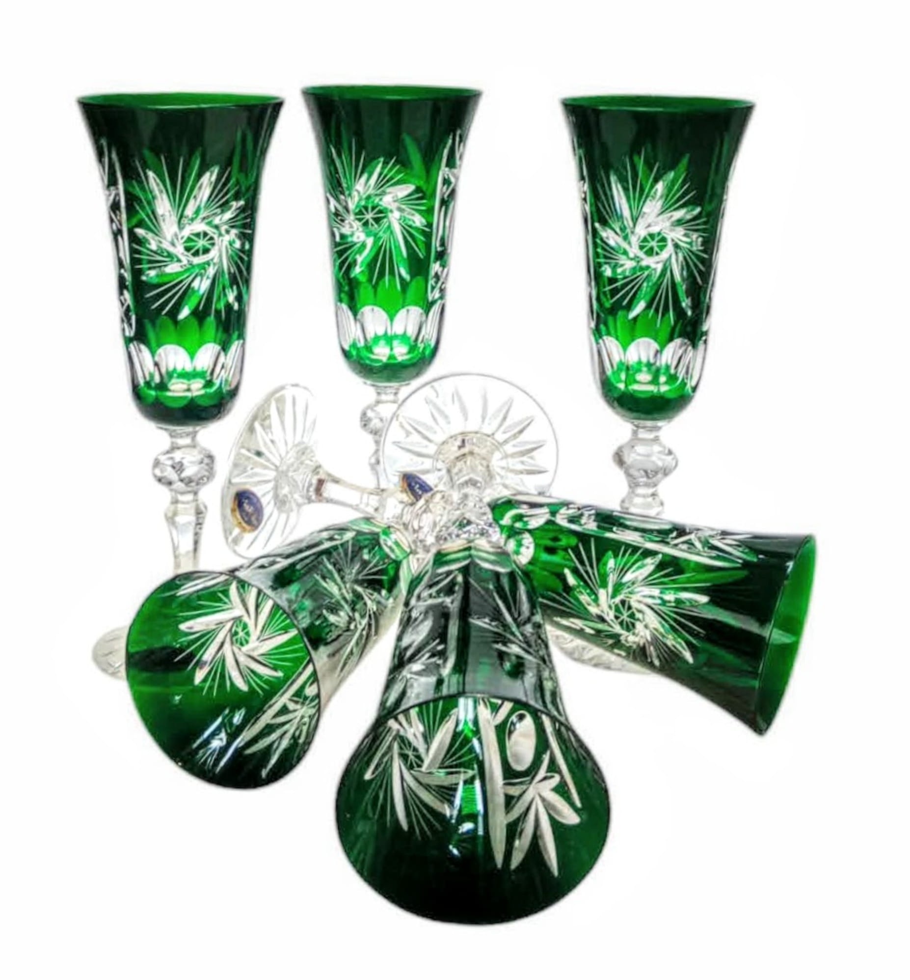 Szmaragdowe kryształowe kieliszki do szampana 150ml Młynek Oliwka 6 sztuk