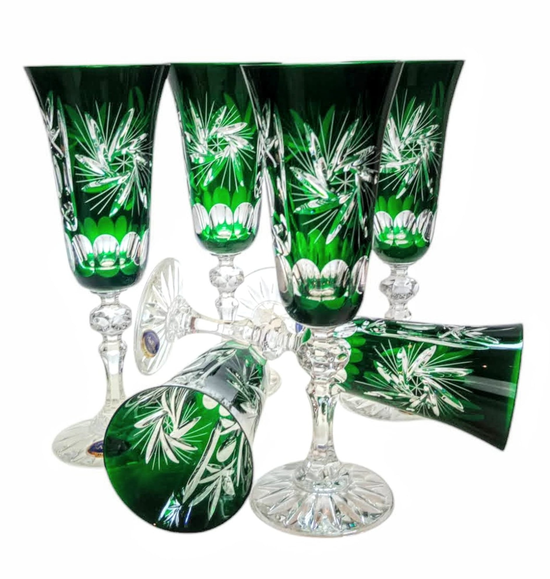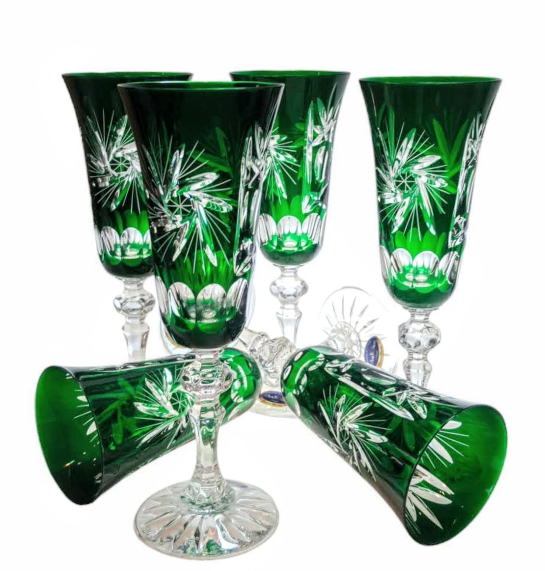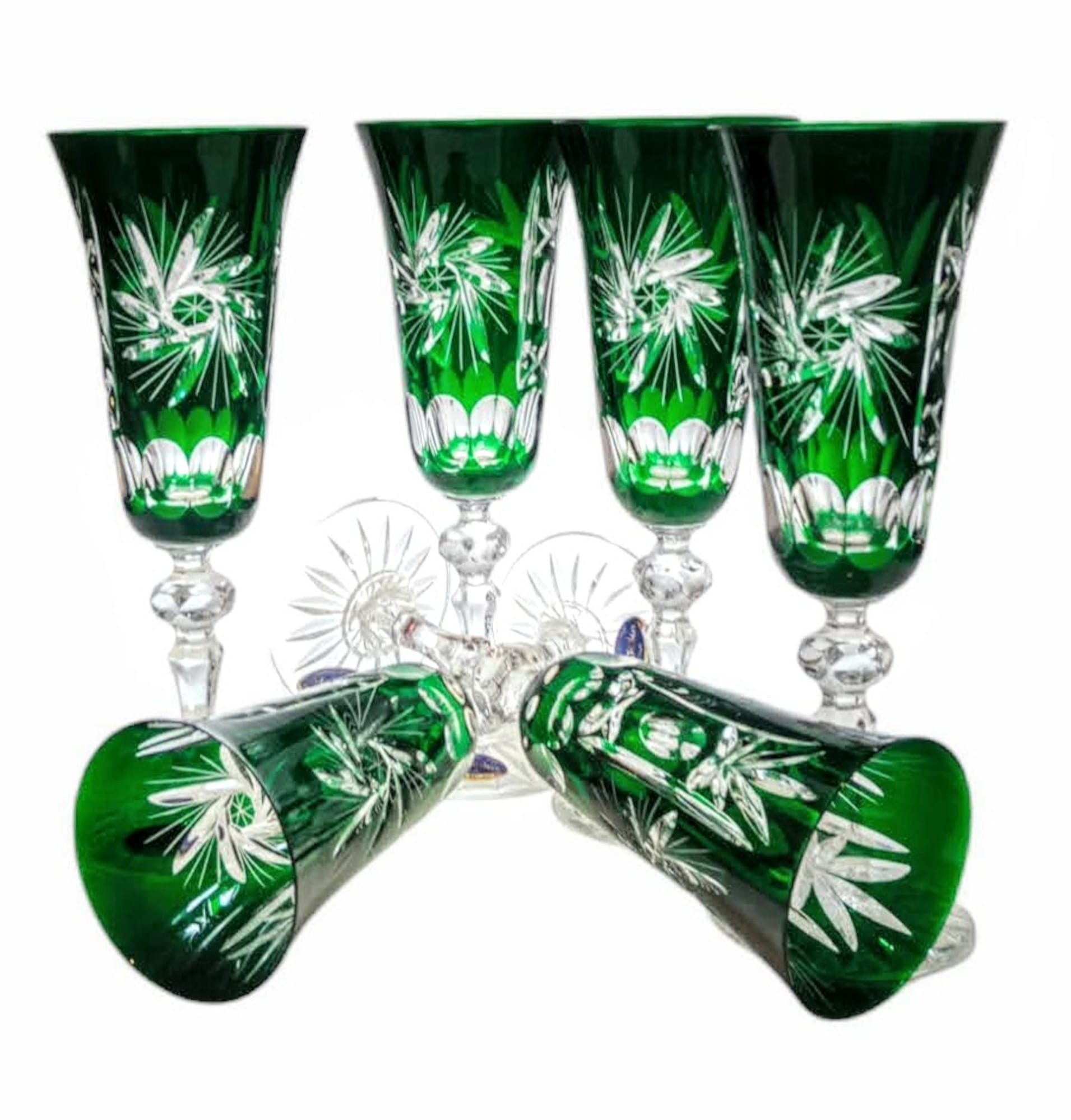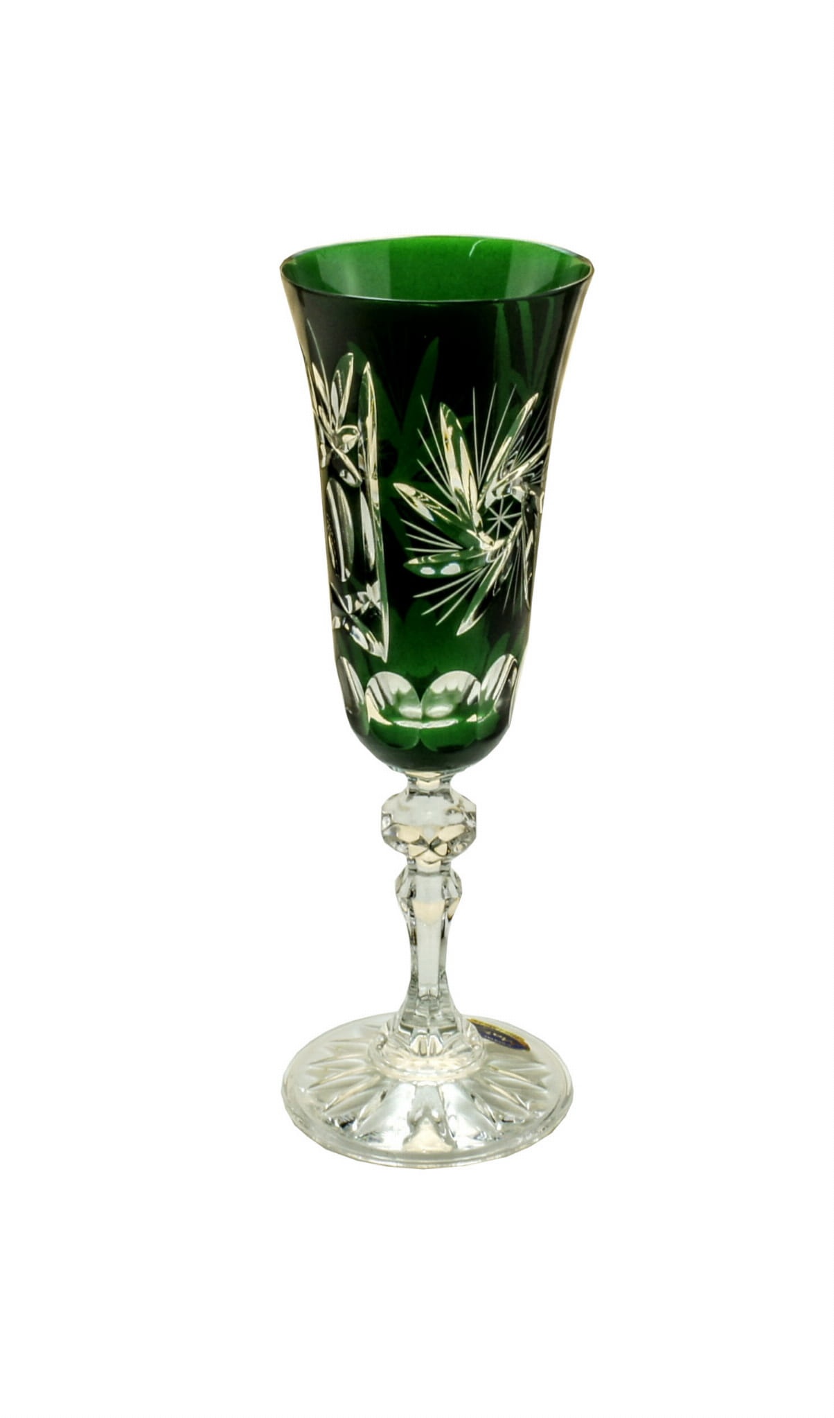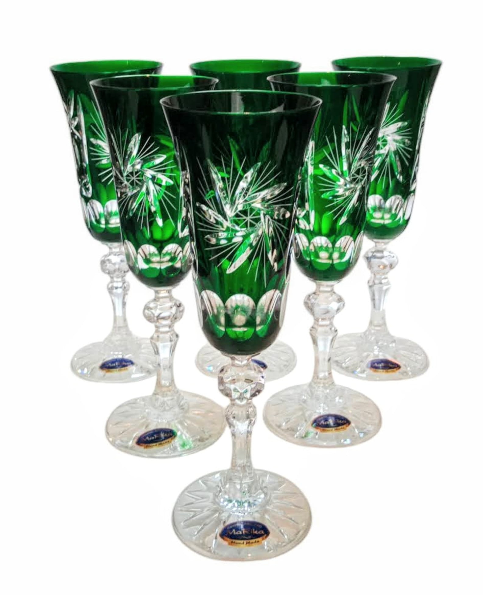 Szmaragdowe kryształowe kieliszki do szampana 150ml Młynek Oliwka 6 sztuk