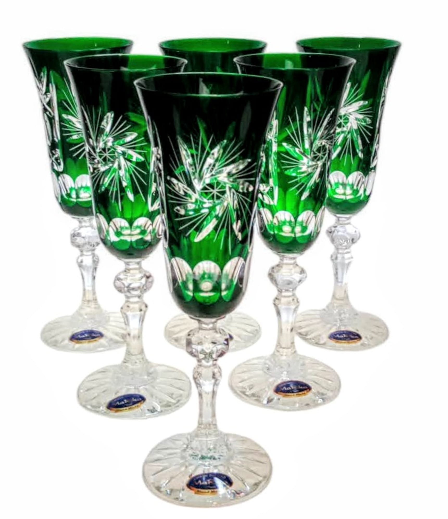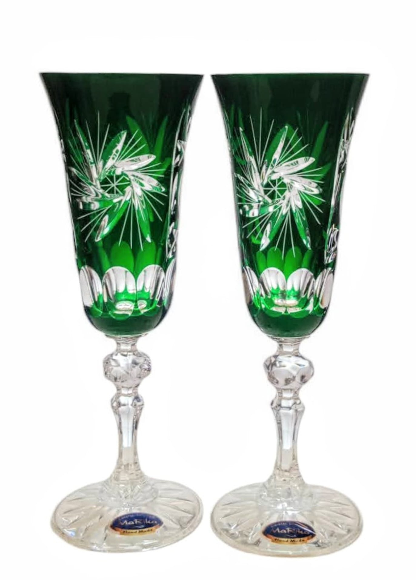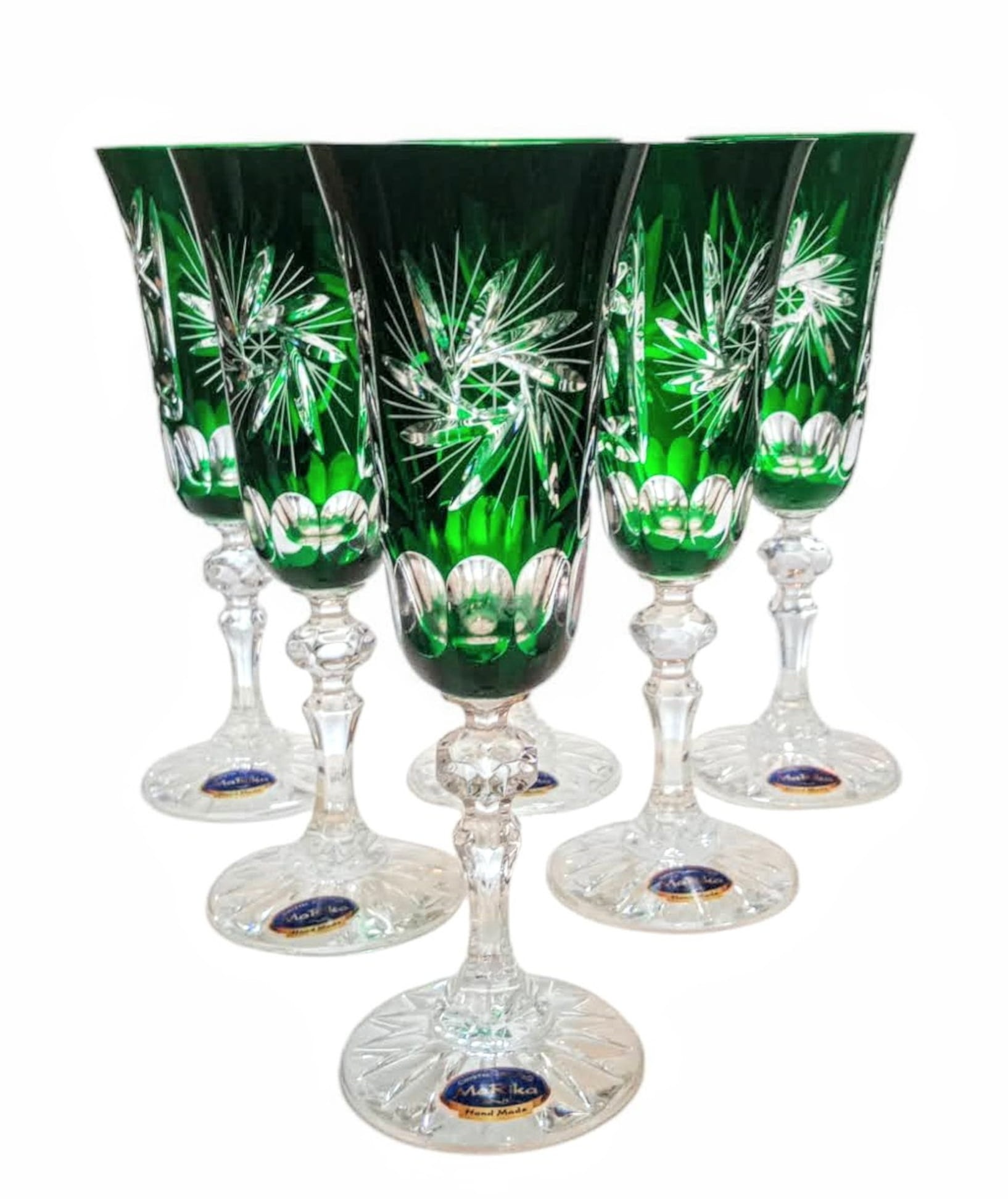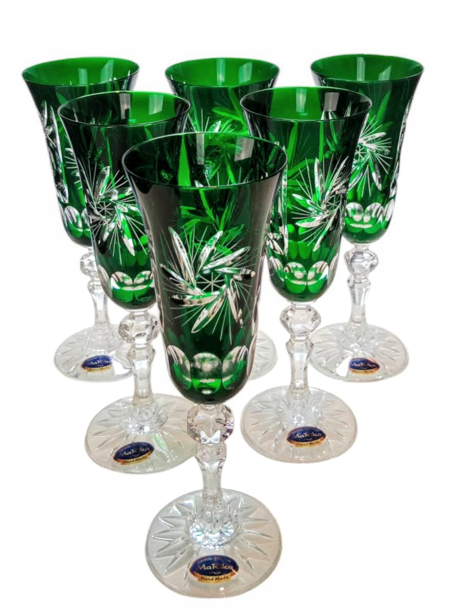 Szmaragdowe kryształowe kieliszki do szampana 150ml Młynek Oliwka 6 sztuk