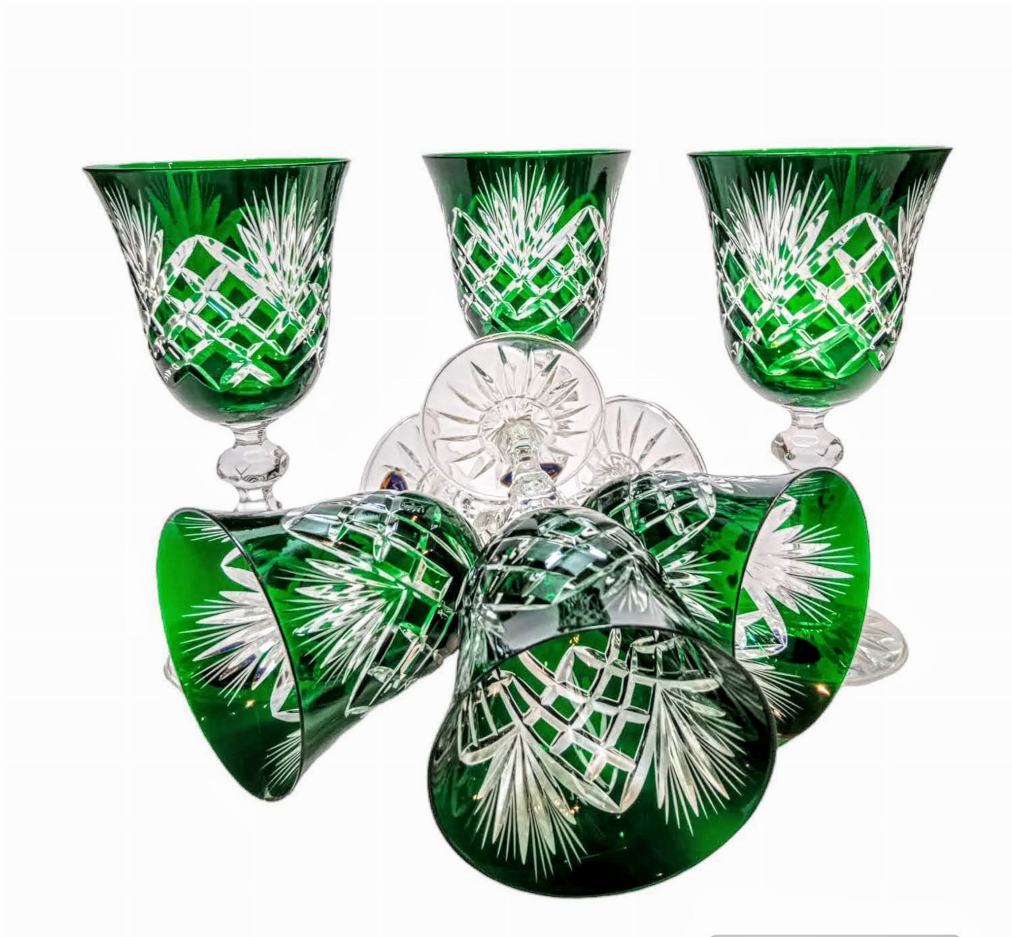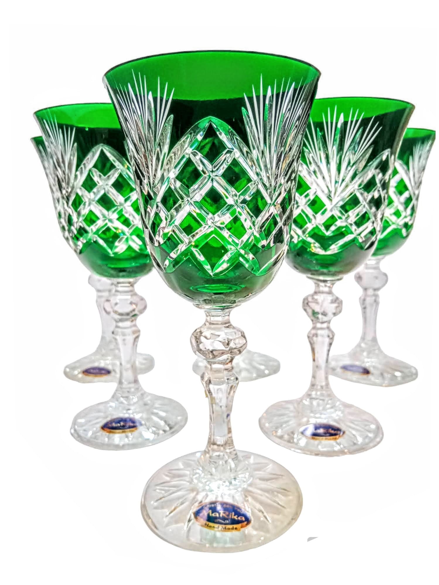 Szmaragdowe kryształowe kieliszki do wina 170 ml Ananas